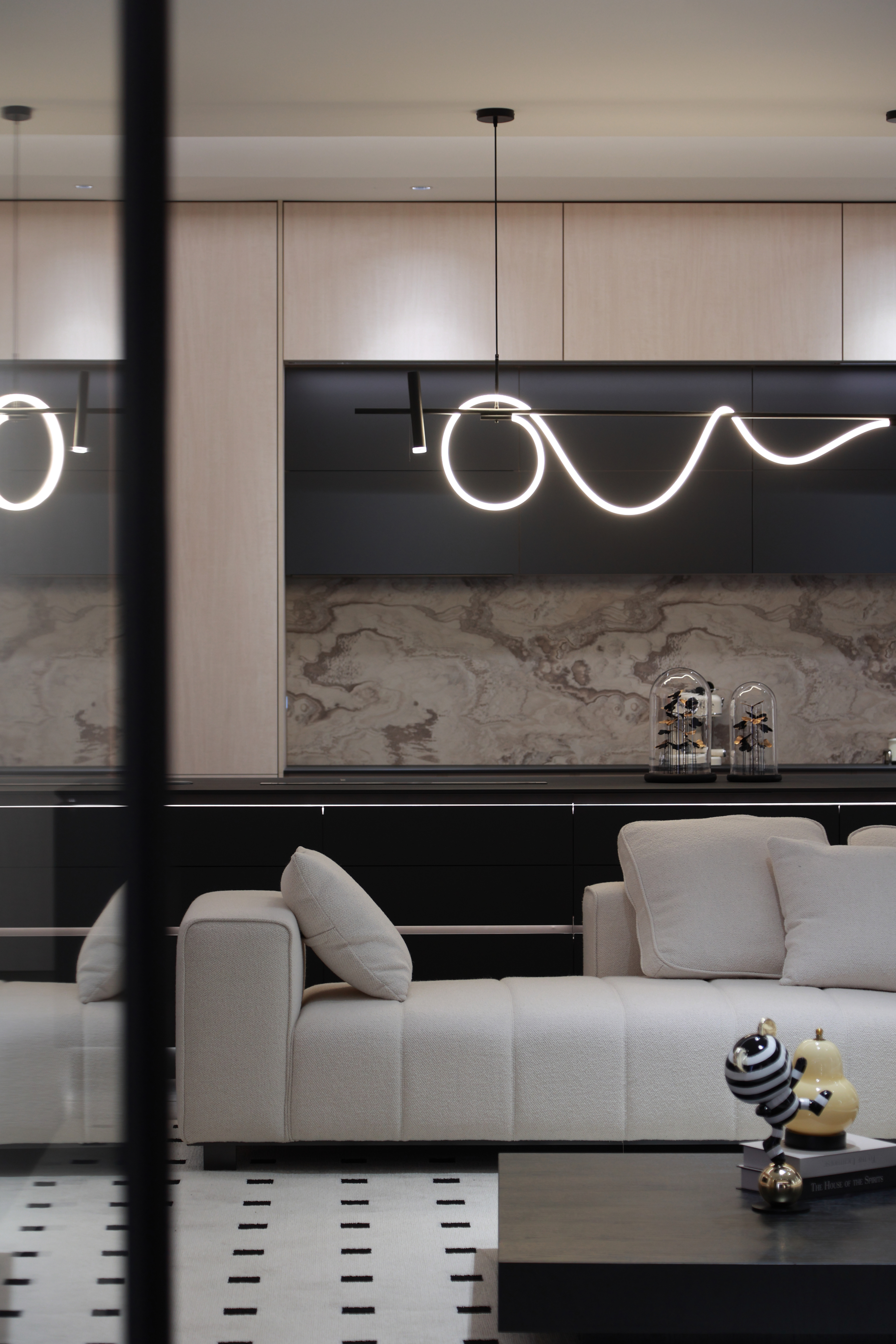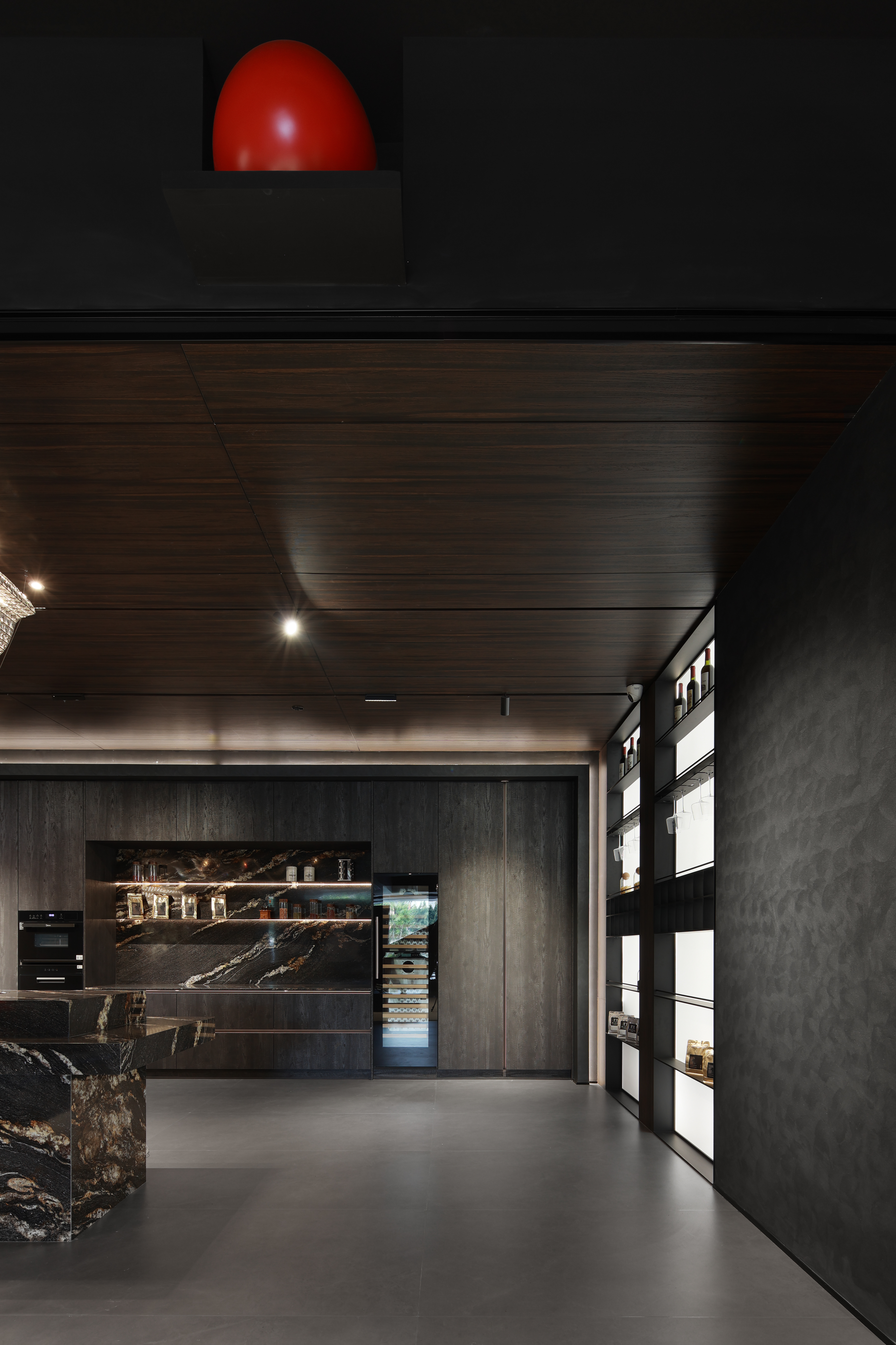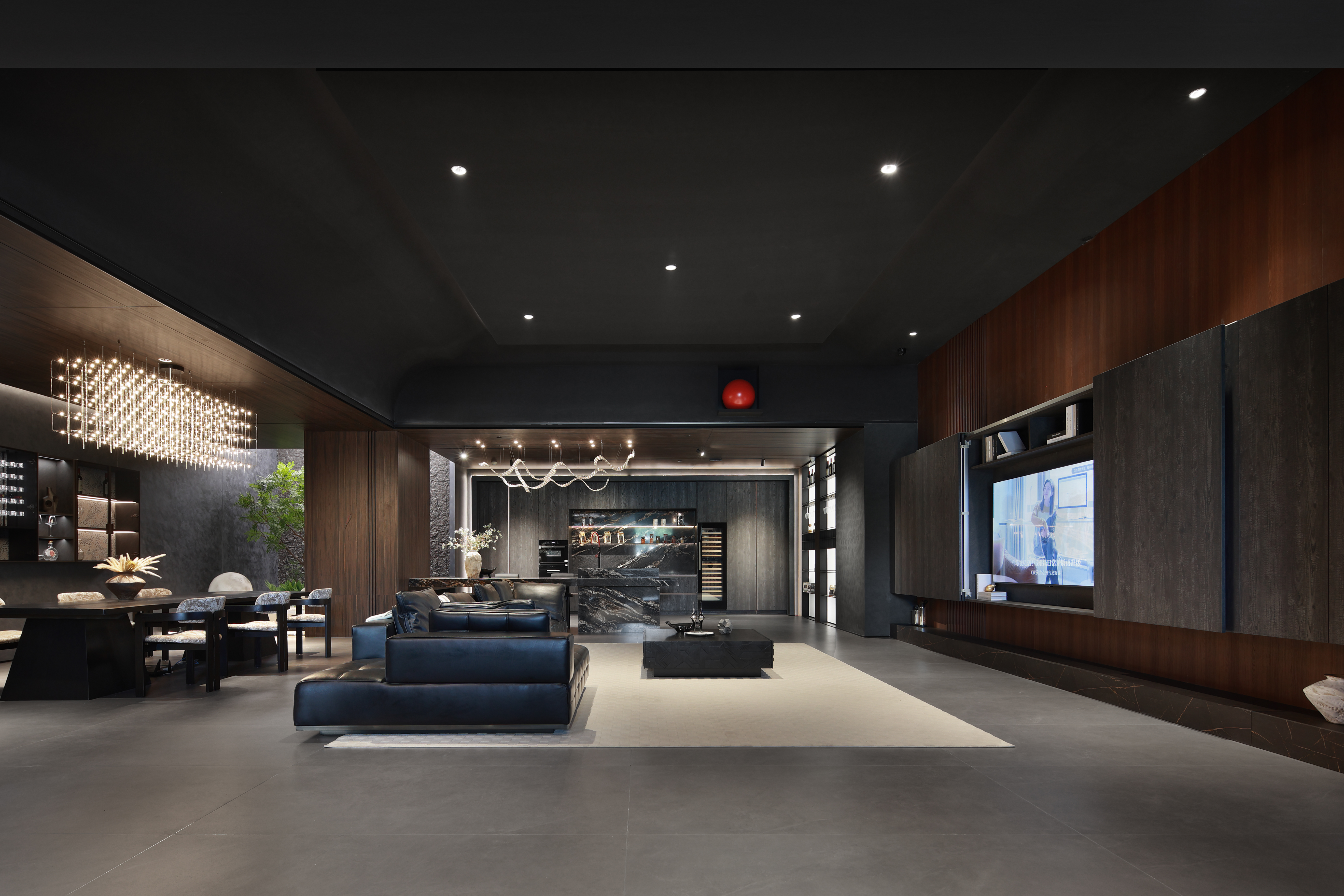 空间意境:整个展厅共搭建了16个不同的生活空间场景,囊括了卧房、起居空间、衣帽间、书房、厨房、社交区、造景等不同生活场景的区域(该划分仅为观众视角理解)。