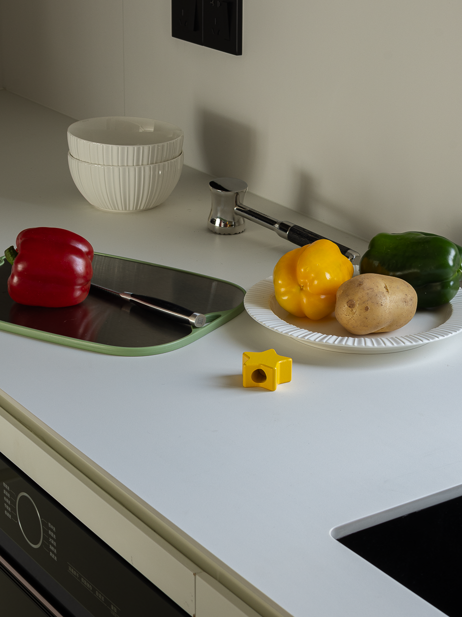 项目定位:本案是精装房全改项目,原始空间利用率低且无法满足一家三口的理想生活,于是设计结合业主的习惯与需求,拆除所有墙体并重新规划,落地更实际的功能,容纳业主的日常、喜好以及心情,去呈现家的包容度。