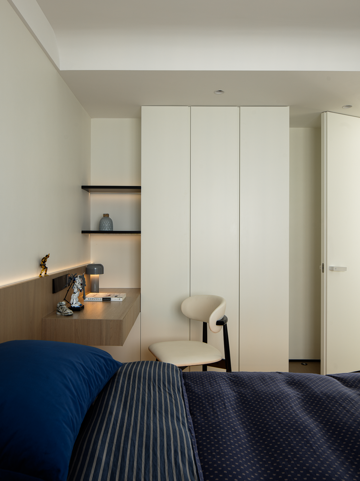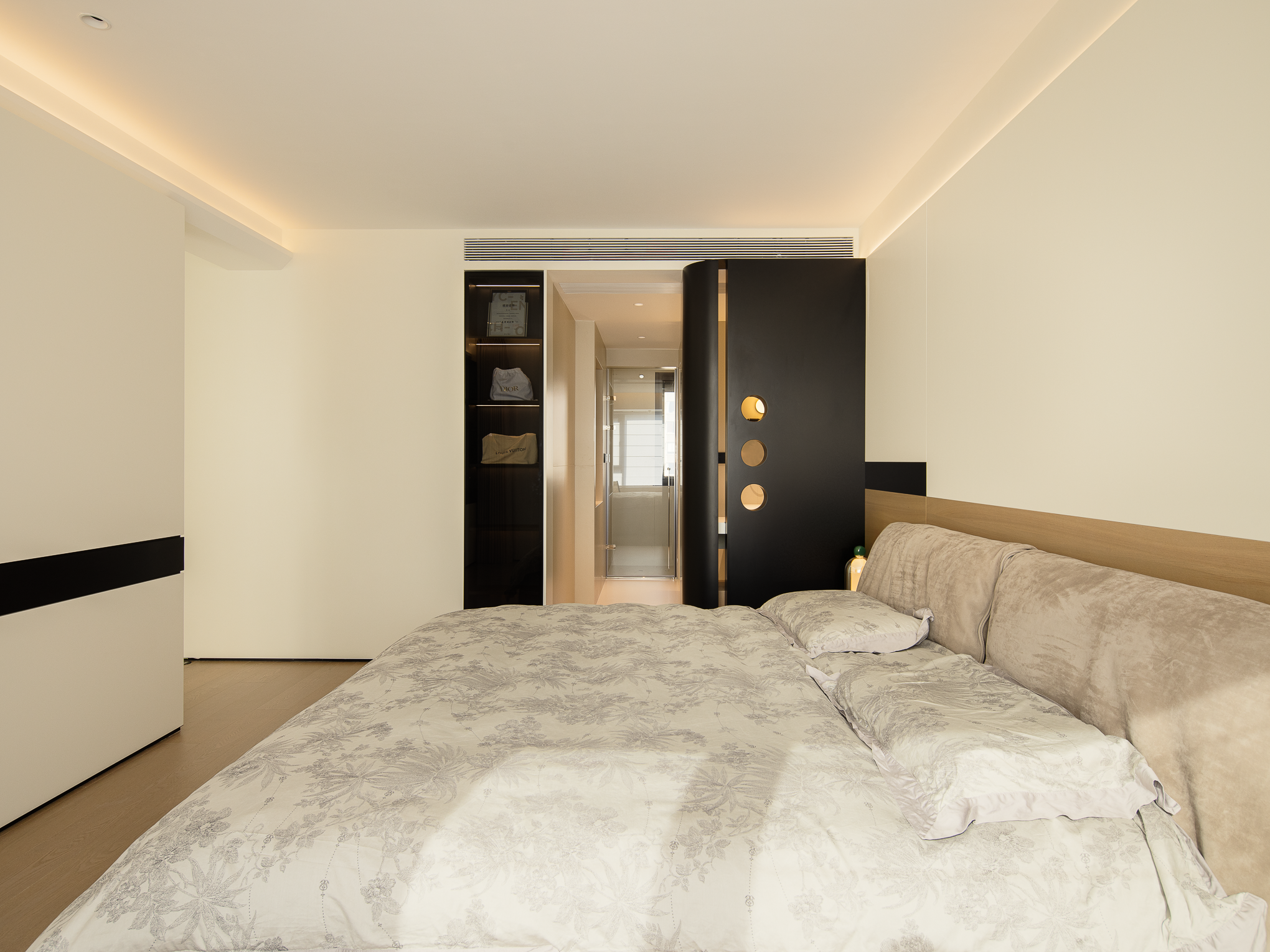 重新规划卧室布局,将南向次卧改为衣帽间,主卧成为功能舒适的酒店式套房;