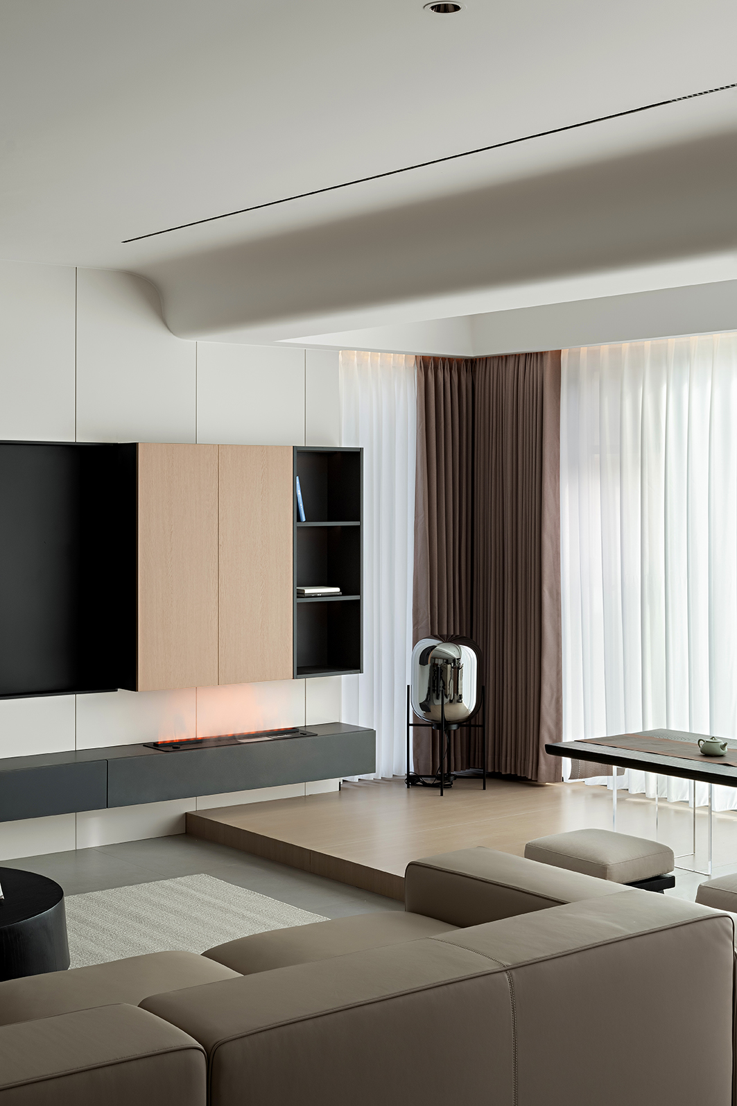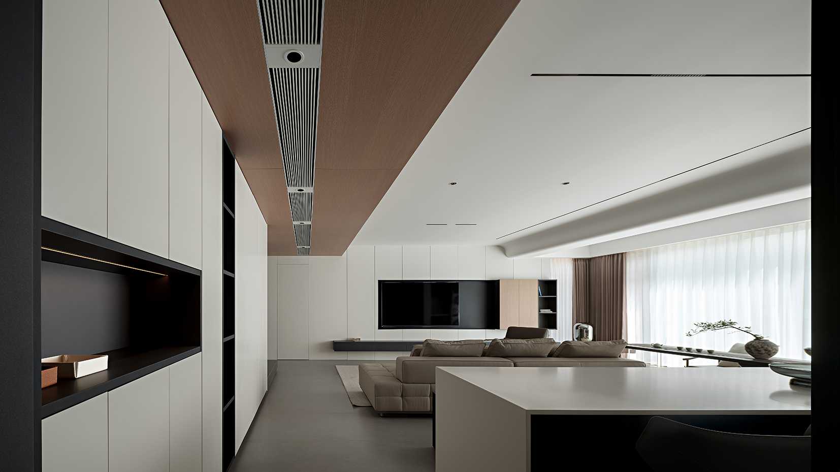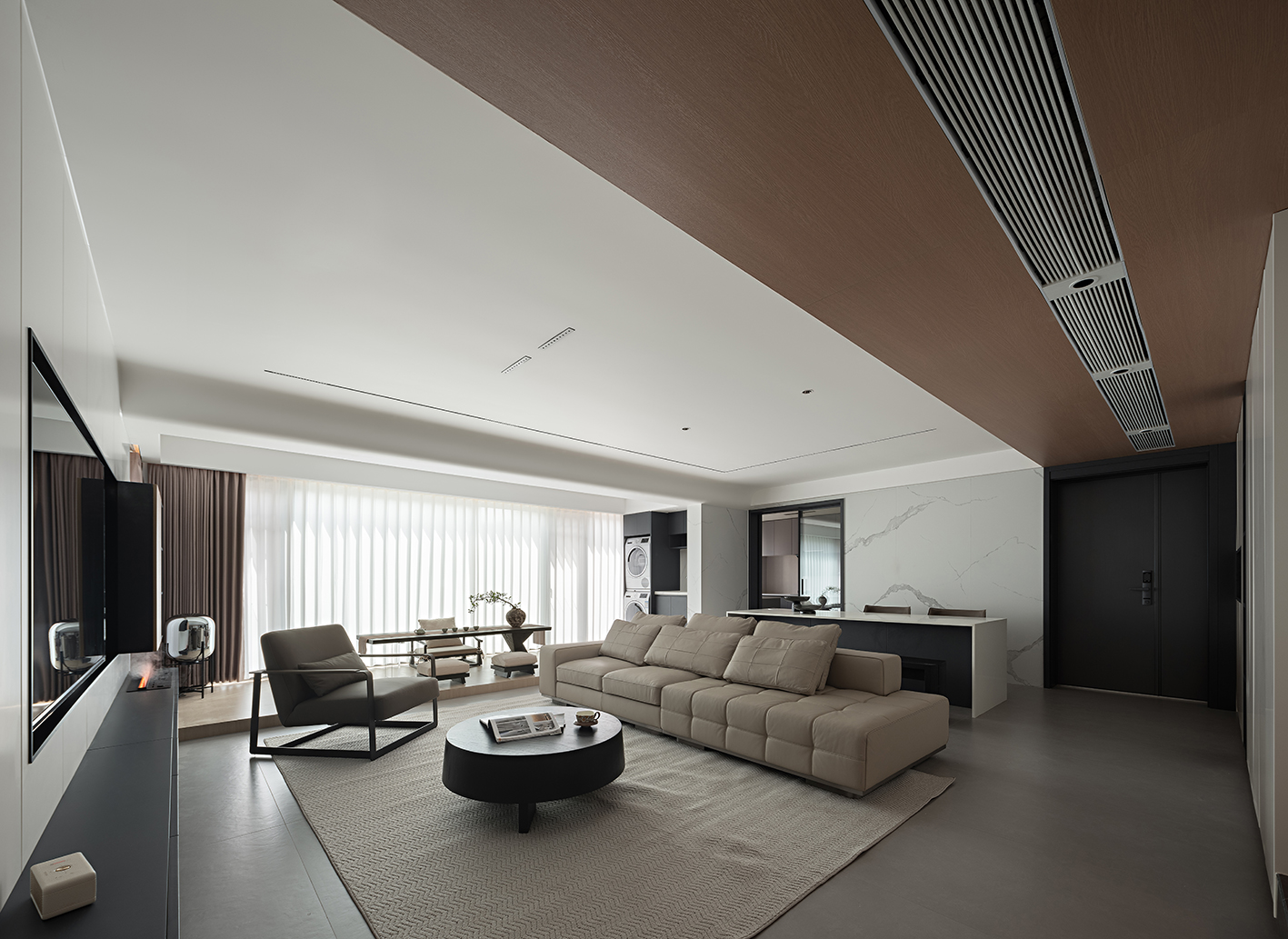 空间意境:“减而不空”——通过克制的设计语言,让空间成为承载生活与情感的容器,既有现代都市的利落气质,又不失家的温暖与包容。
