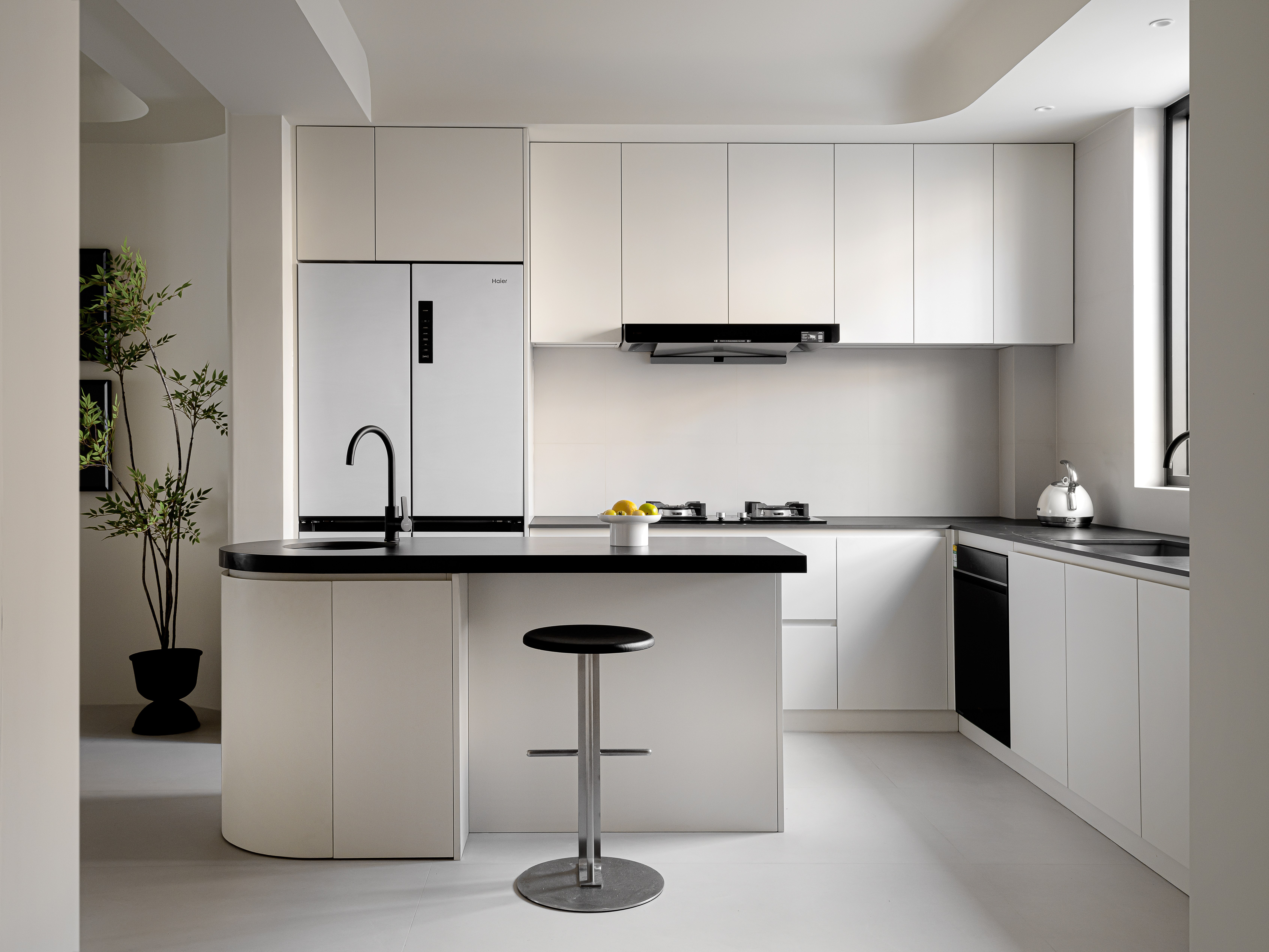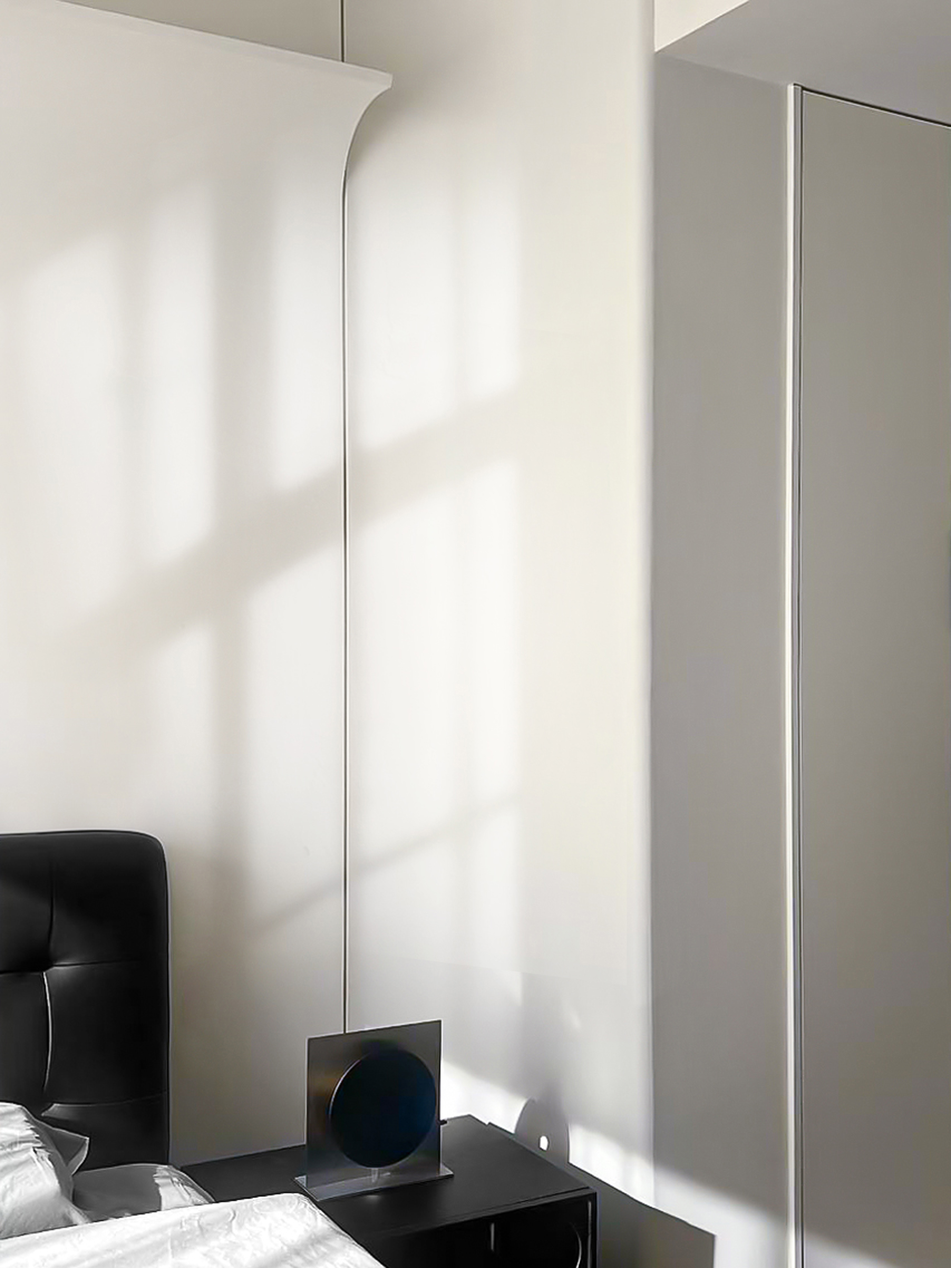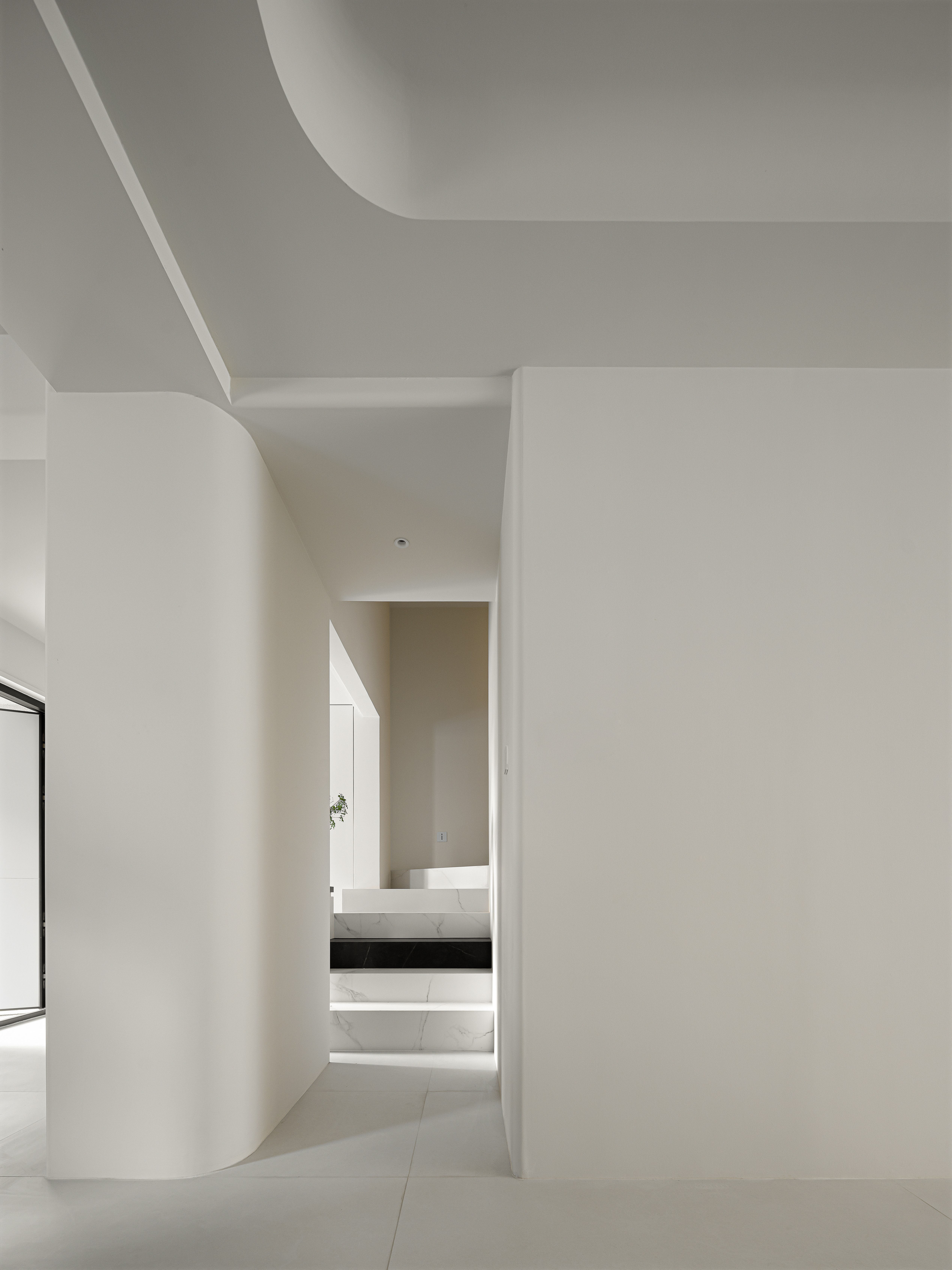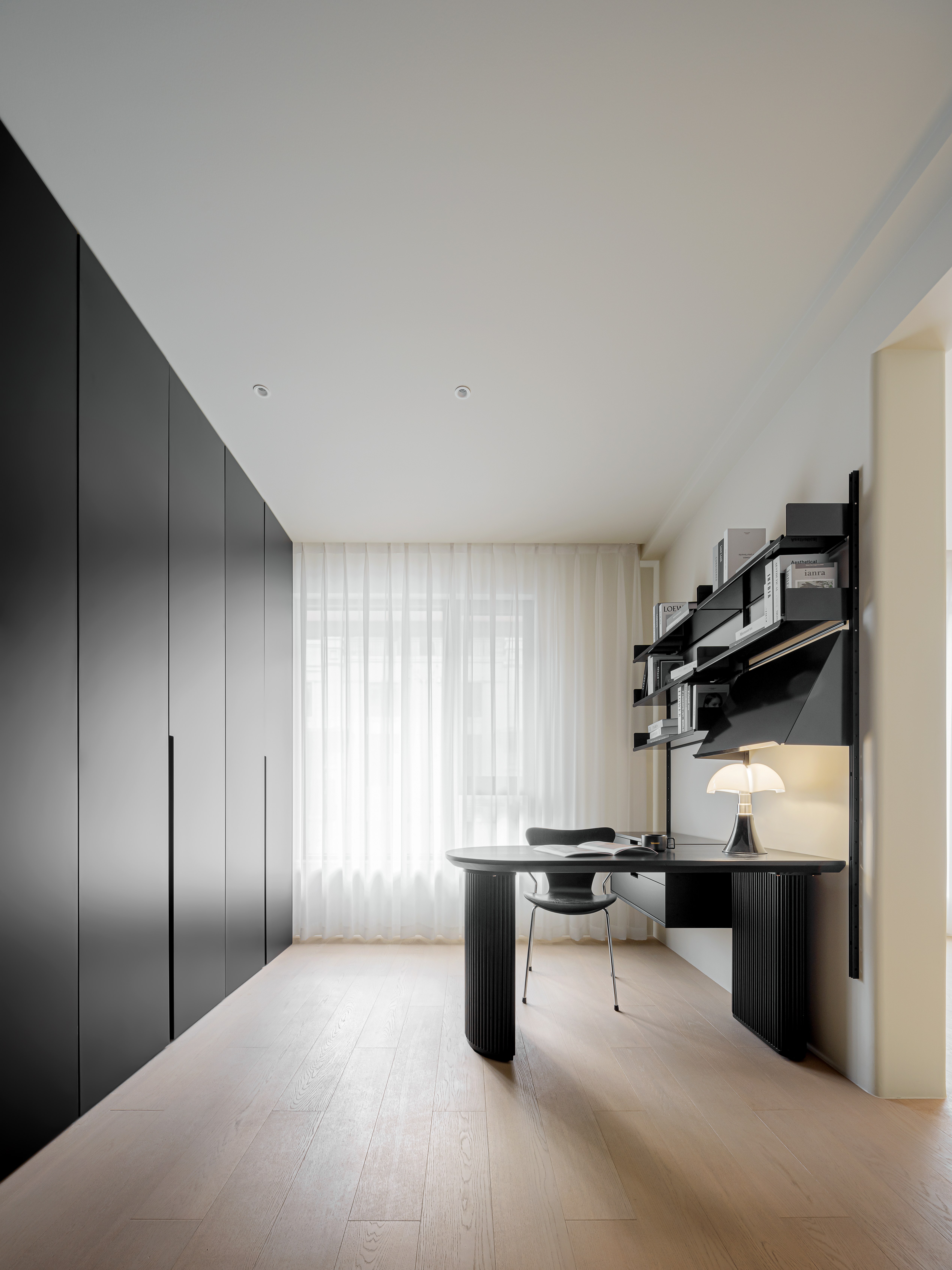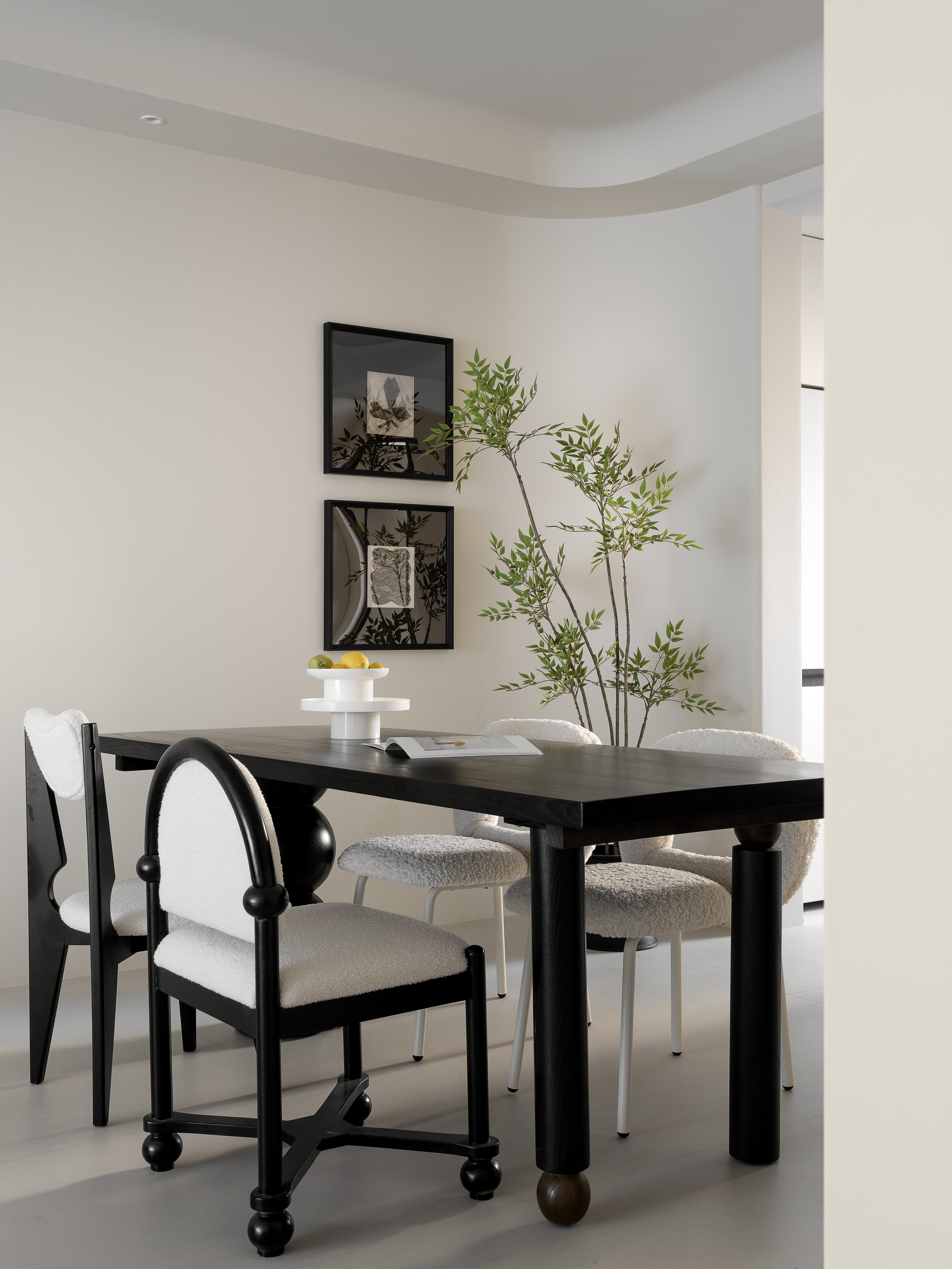 用户体验:投入使用后,洄游动线与开放布局让起居互动高效流畅。用户评价:“弧形元素柔化了黑白对比,家既通透又温馨,重组后的套房与动线让日常生活倍感舒适与便利。”