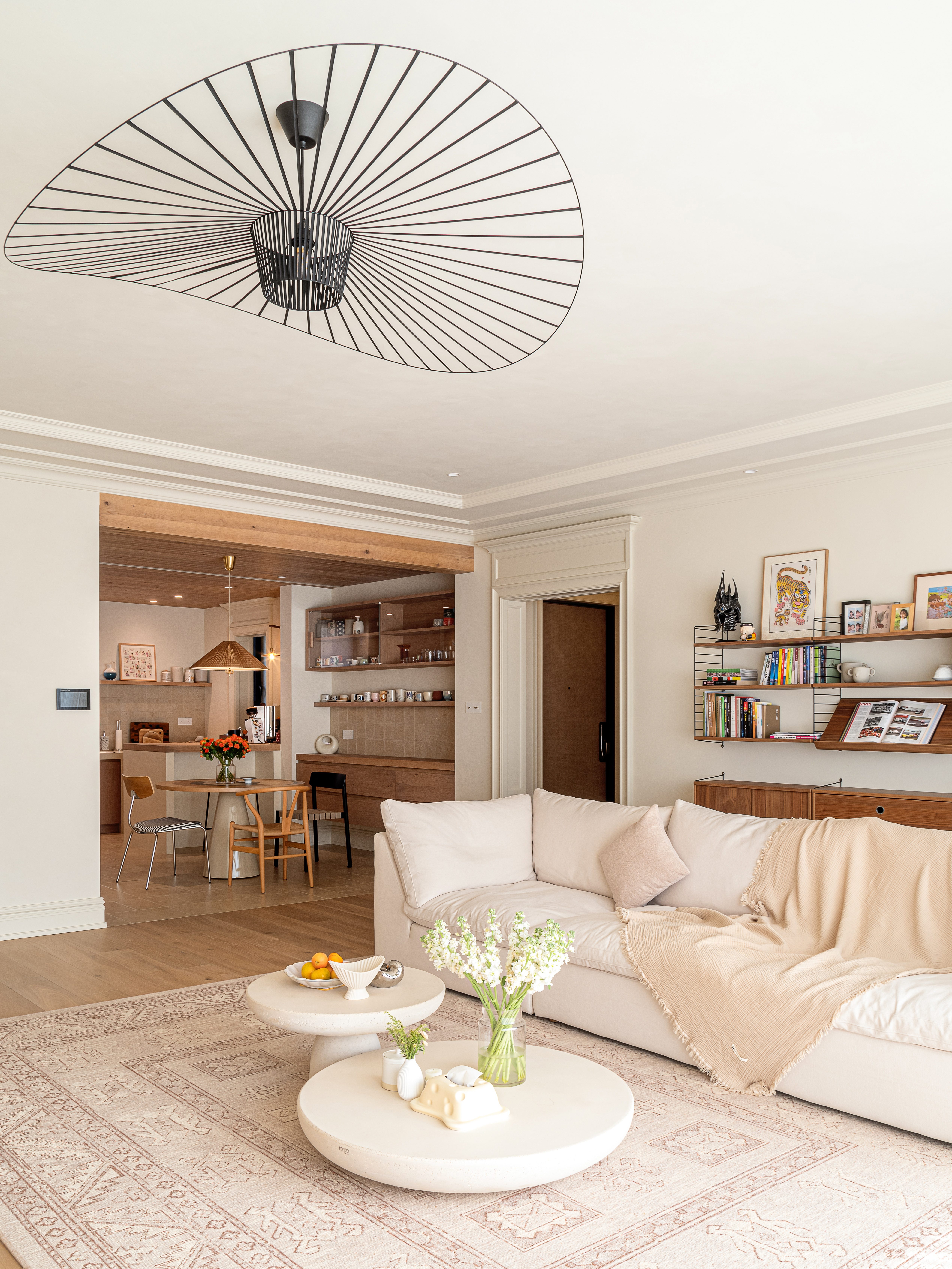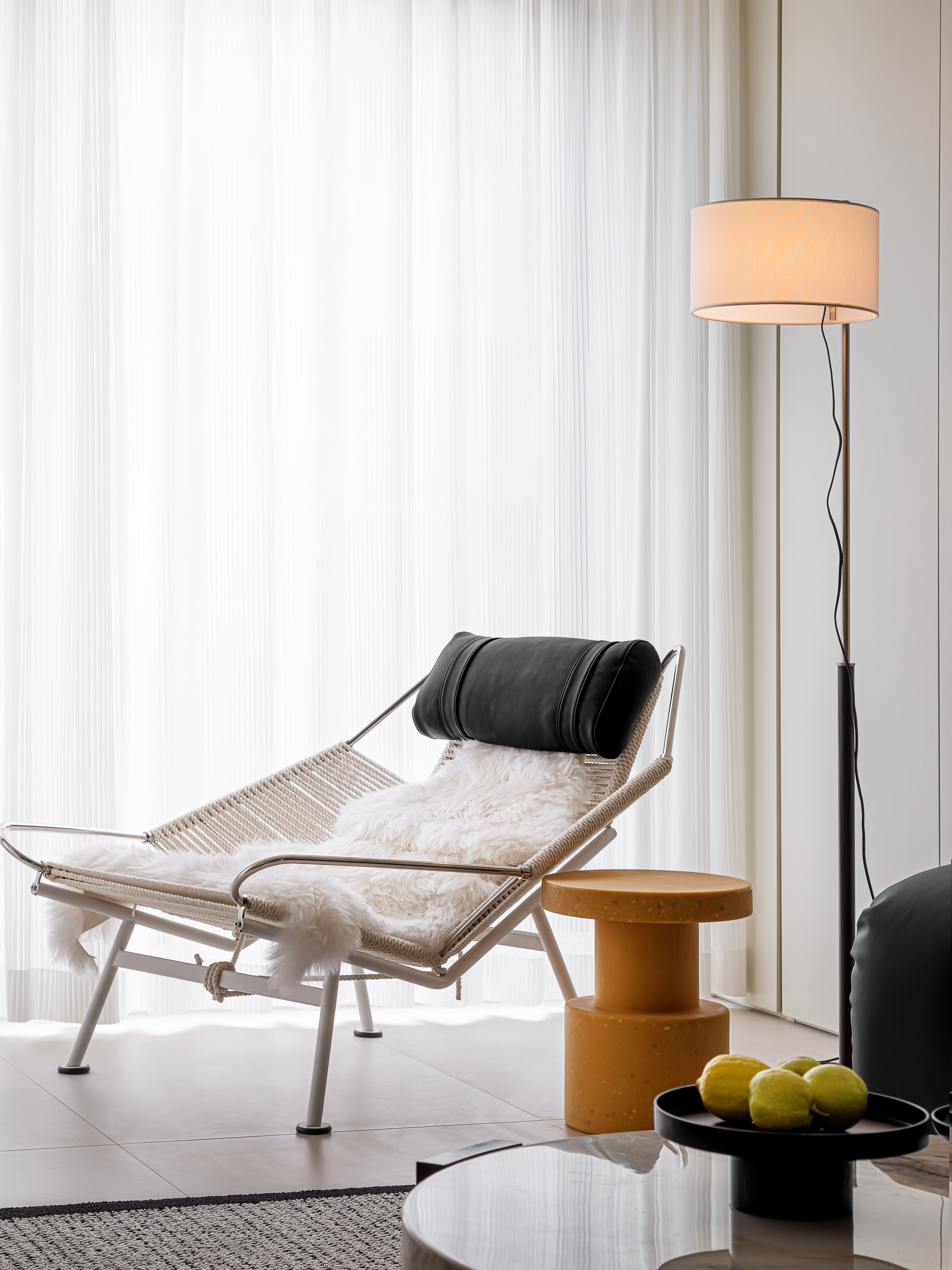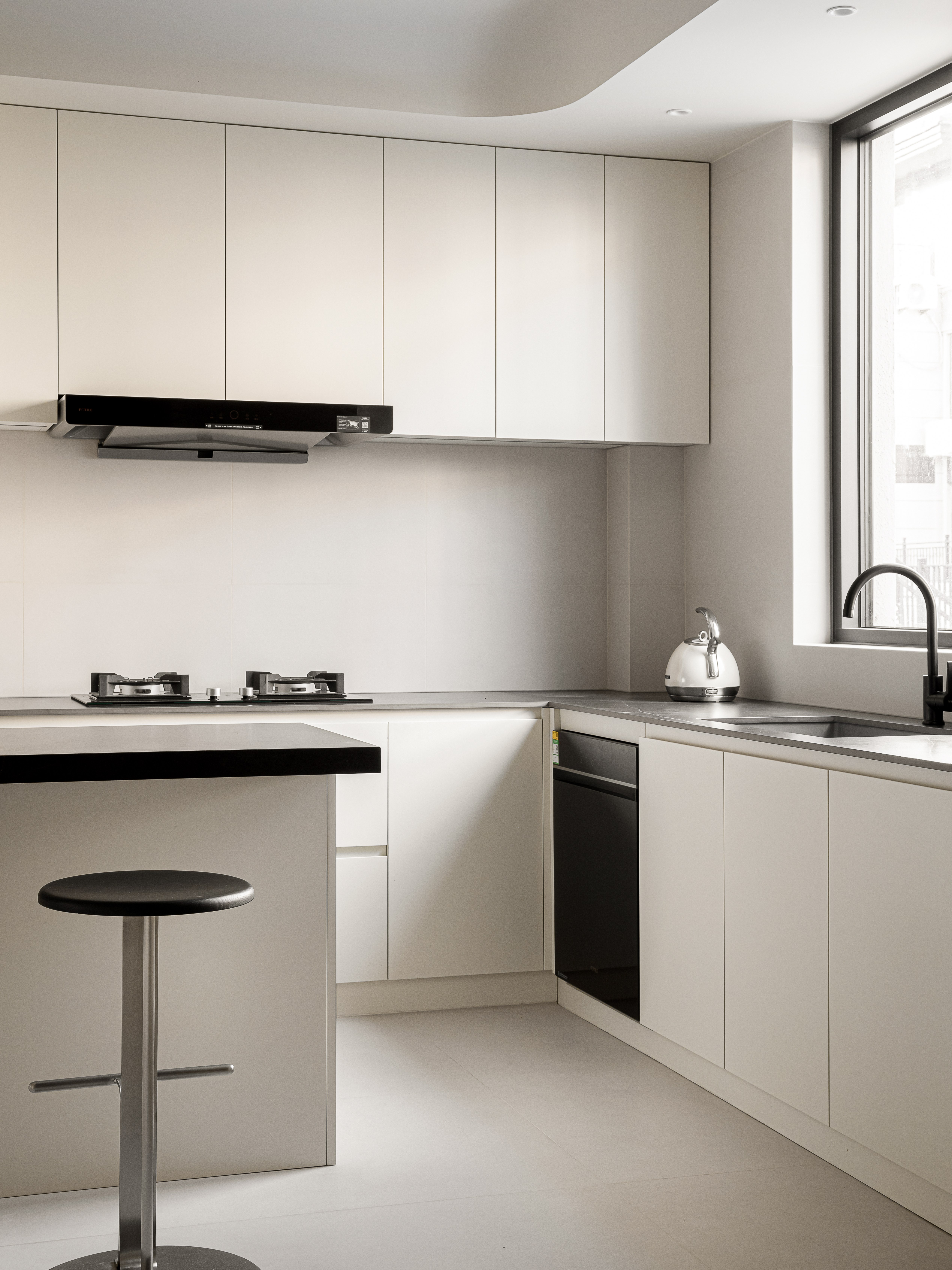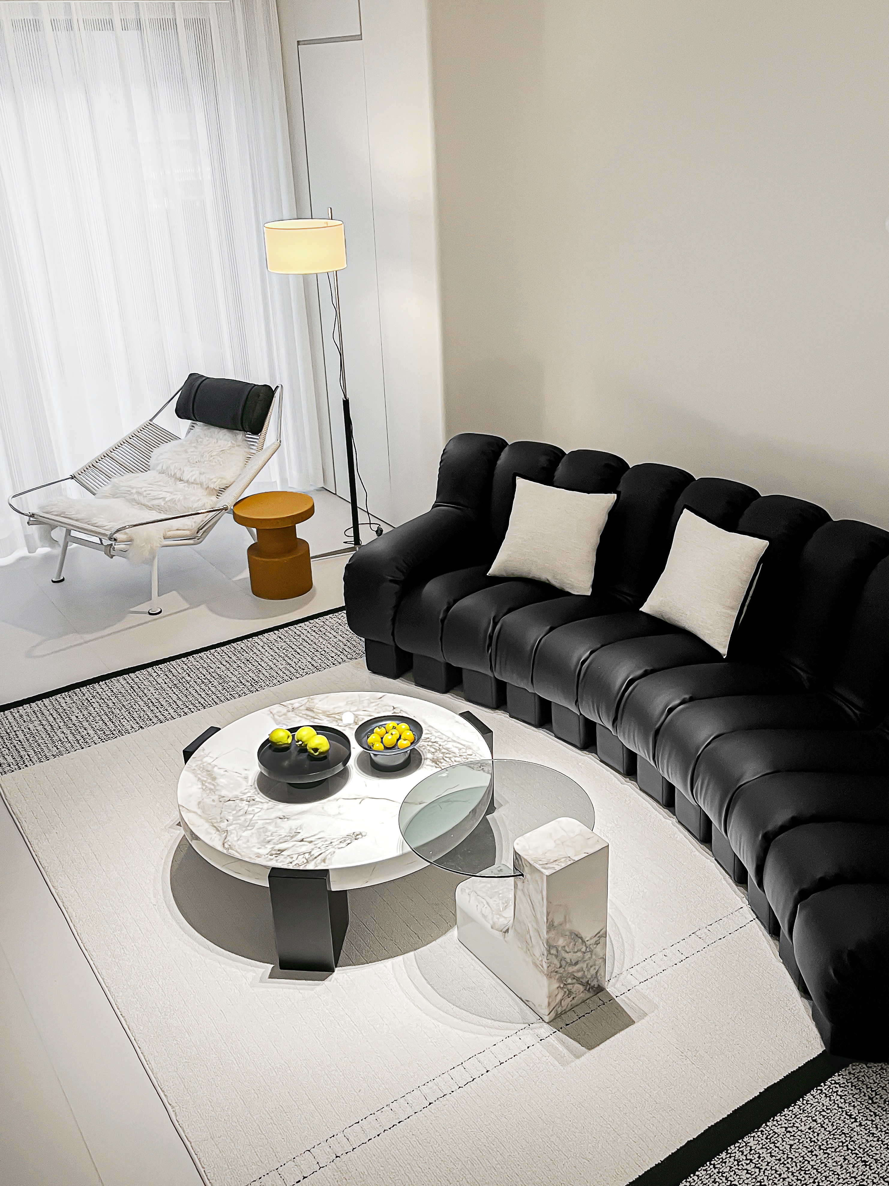 用户体验:投入使用后,洄游动线与开放布局让起居互动高效流畅。用户评价:“弧形元素柔化了黑白对比,家既通透又温馨,重组后的套房与动线让日常生活倍感舒适与便利。”