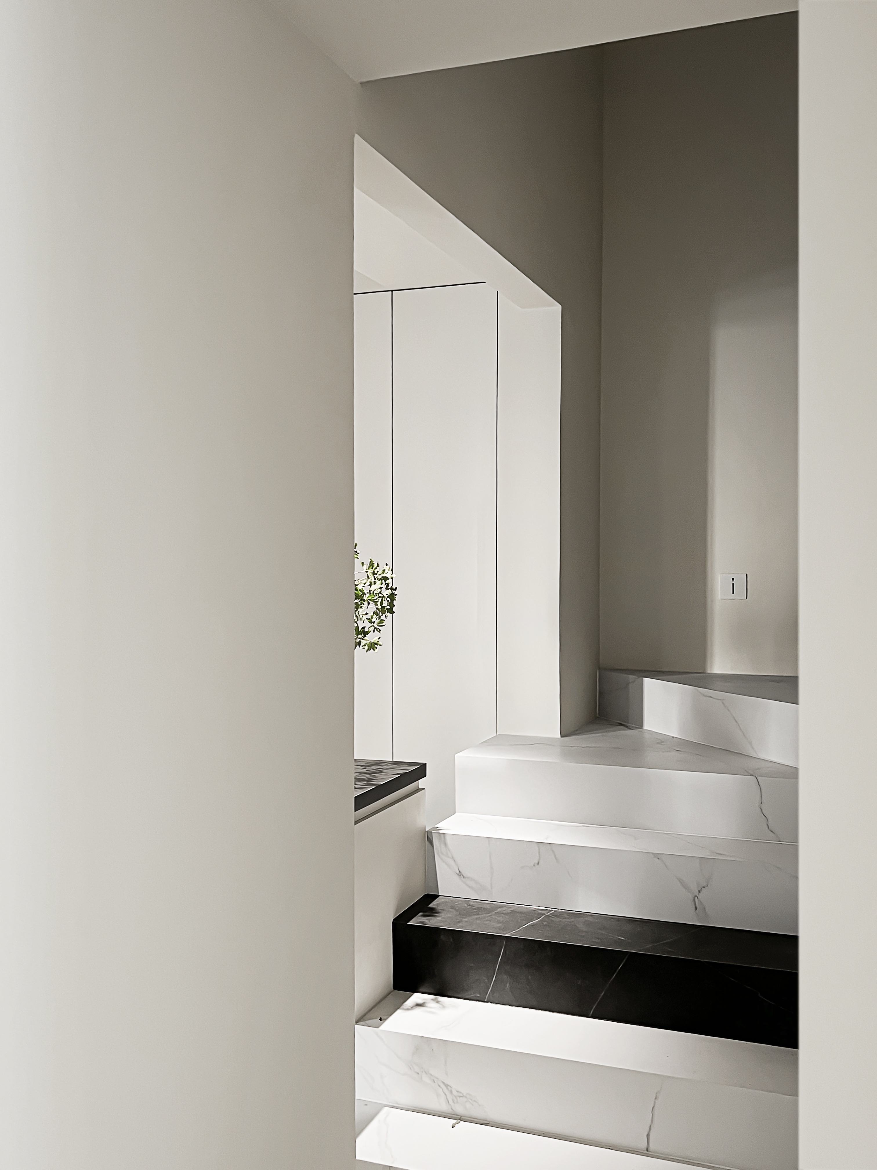 项目定位:这是一个上跃两层的家,黑白色的风格如钢琴键起伏,这个家仿佛有旋律跃动。