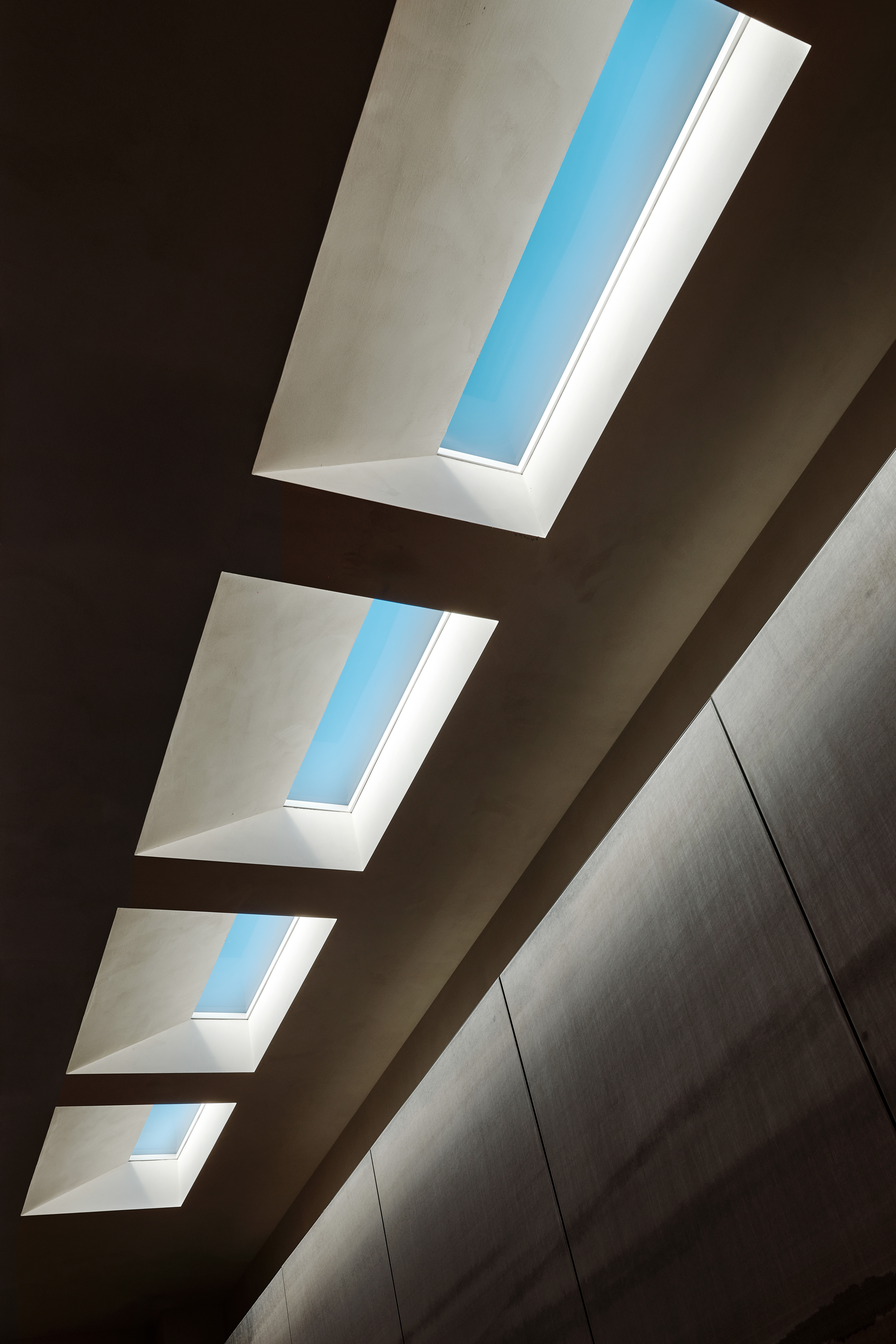 走廊空间:以现代几何天窗的序列感构建空间骨架,引入自然天光的同时形成 “步移景异” 的韵律节奏。