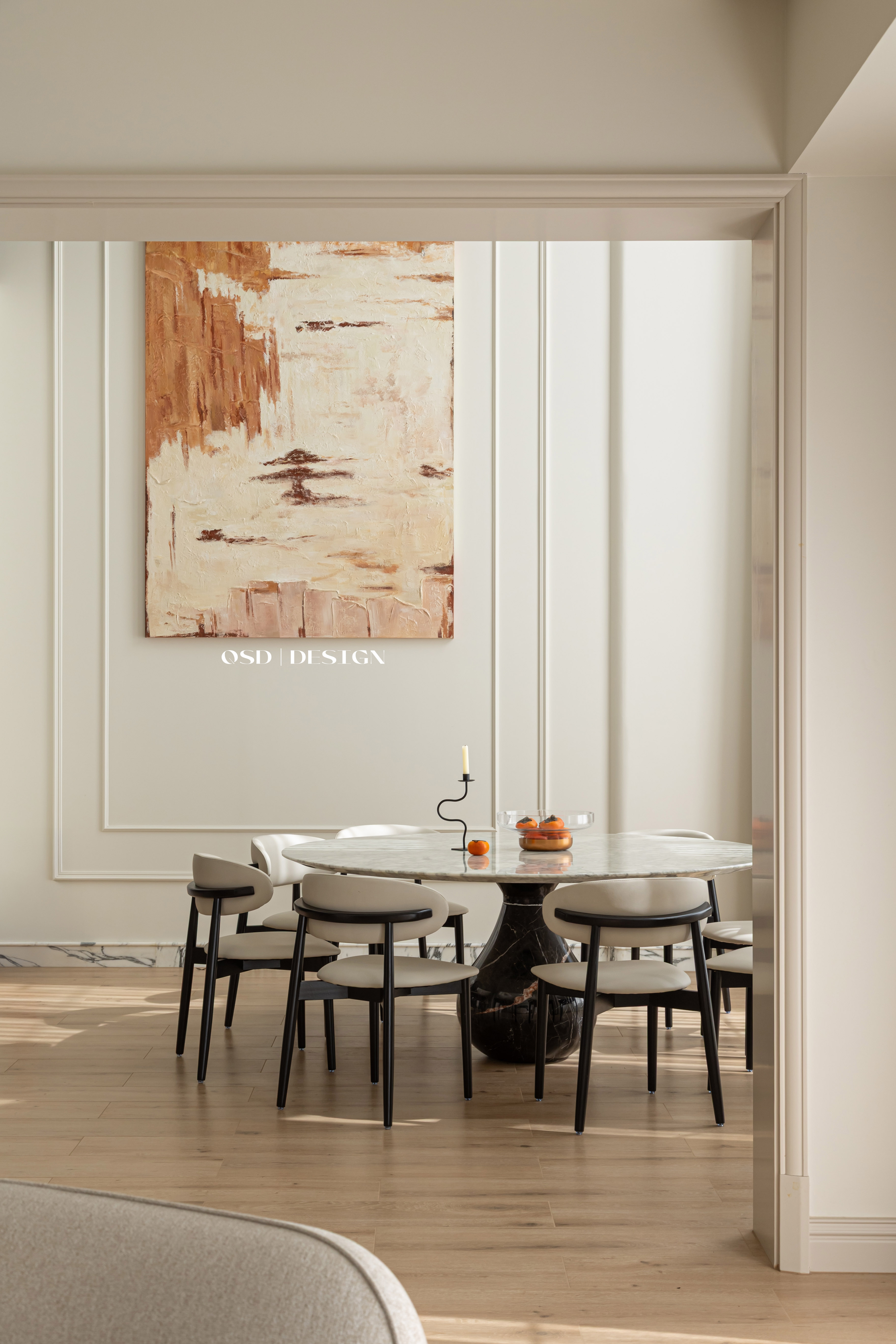 餐厅区域以简约石膏线条勾勒精致感,增加墙面层次感。