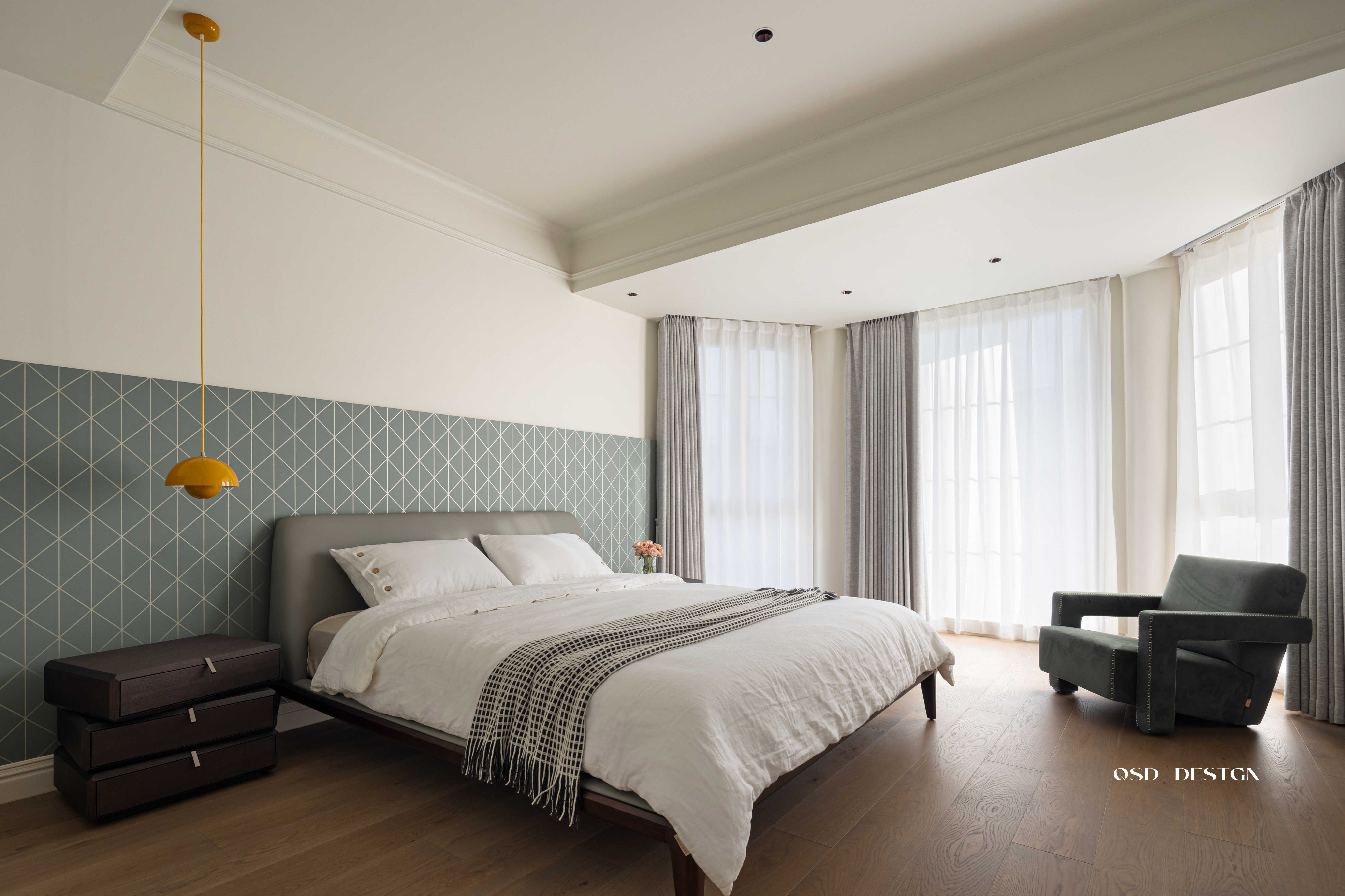 优先选用温润自然的材质:地面实木地板,触感细腻;墙面以艺术漆、肌理漆为主,呈现柔和哑光质感;软装搭配棉麻、丝绒等面料,增添舒适触感