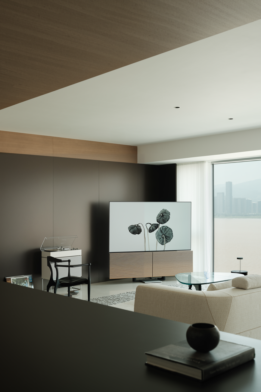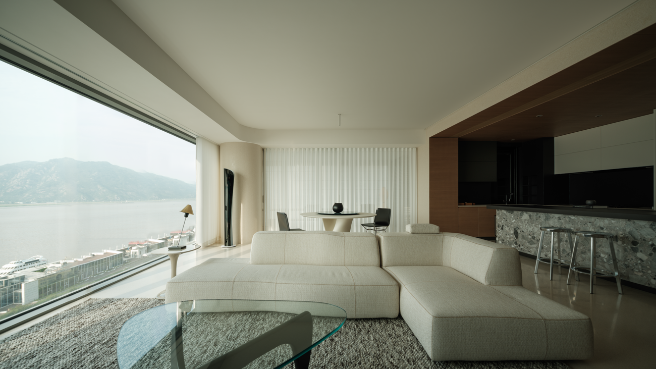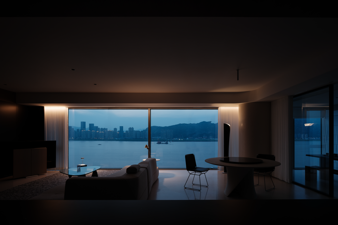 项目定位:当瓯江畔的粼粼波光成为空间的天然背景,这场设计便始于“如何在自然风光中定义新时代质感居所”的深度思考。本案项目以一面完整铺陈的落地窗作为设计的原点,将流动的江水与变换的云层毫无保留地纳入居住者的视野,如此,风景不再是窗外的装饰,对江景的凝视也不再是偶然的驻足,而是空间之于居住的生活养分。