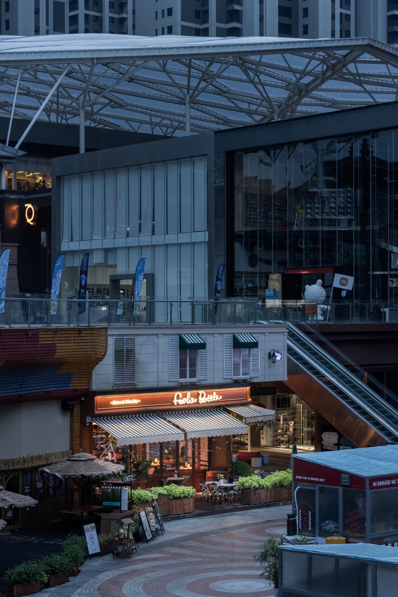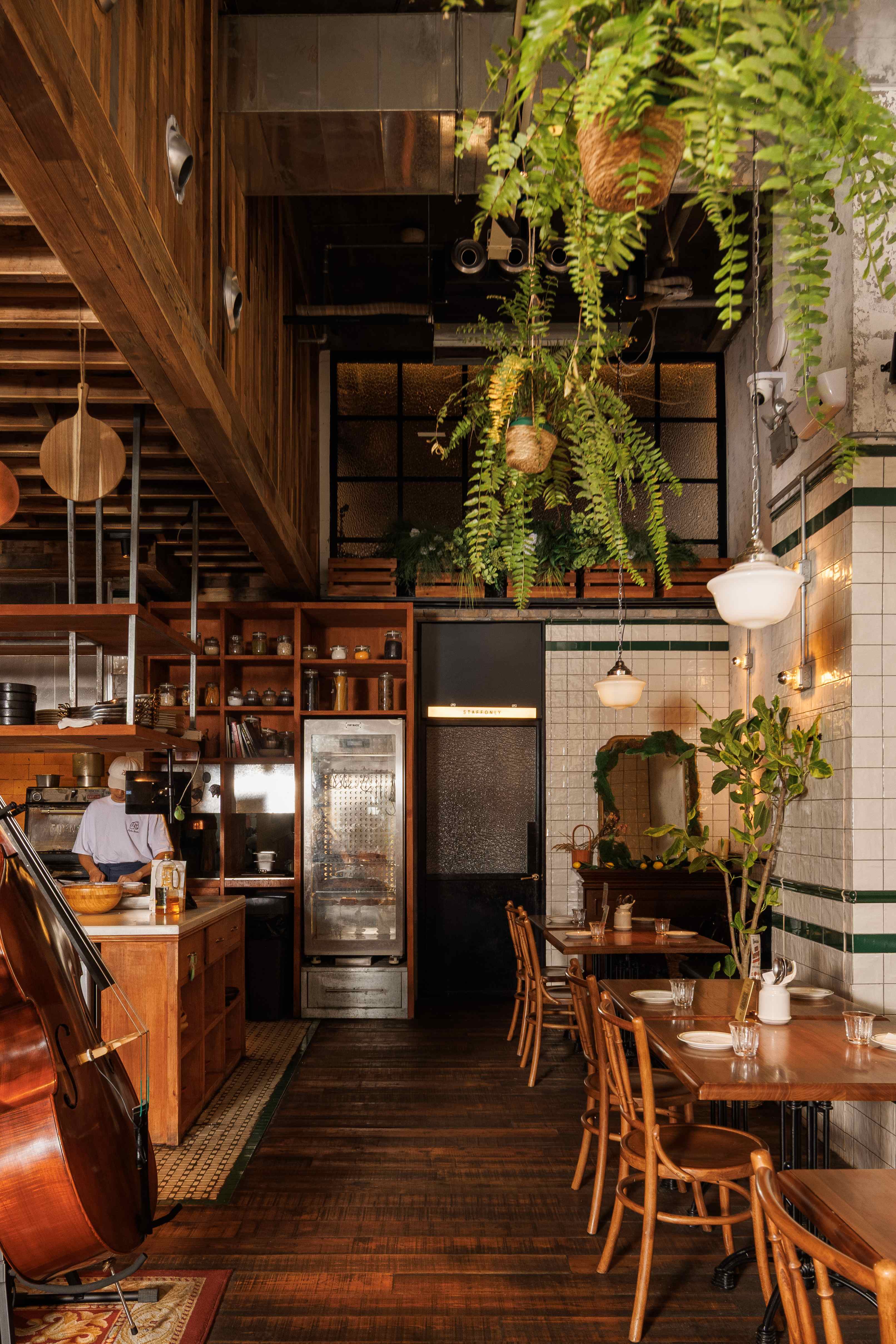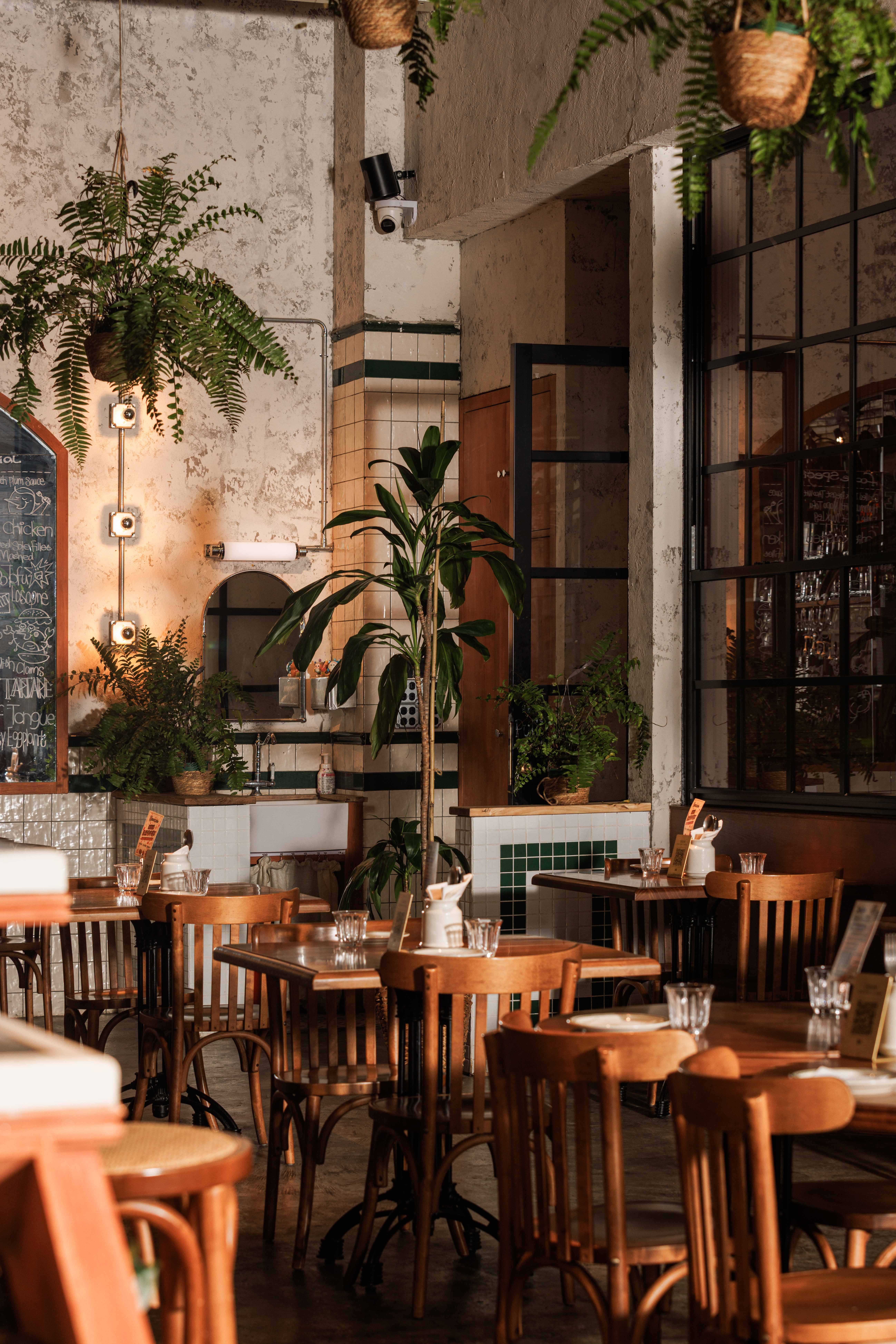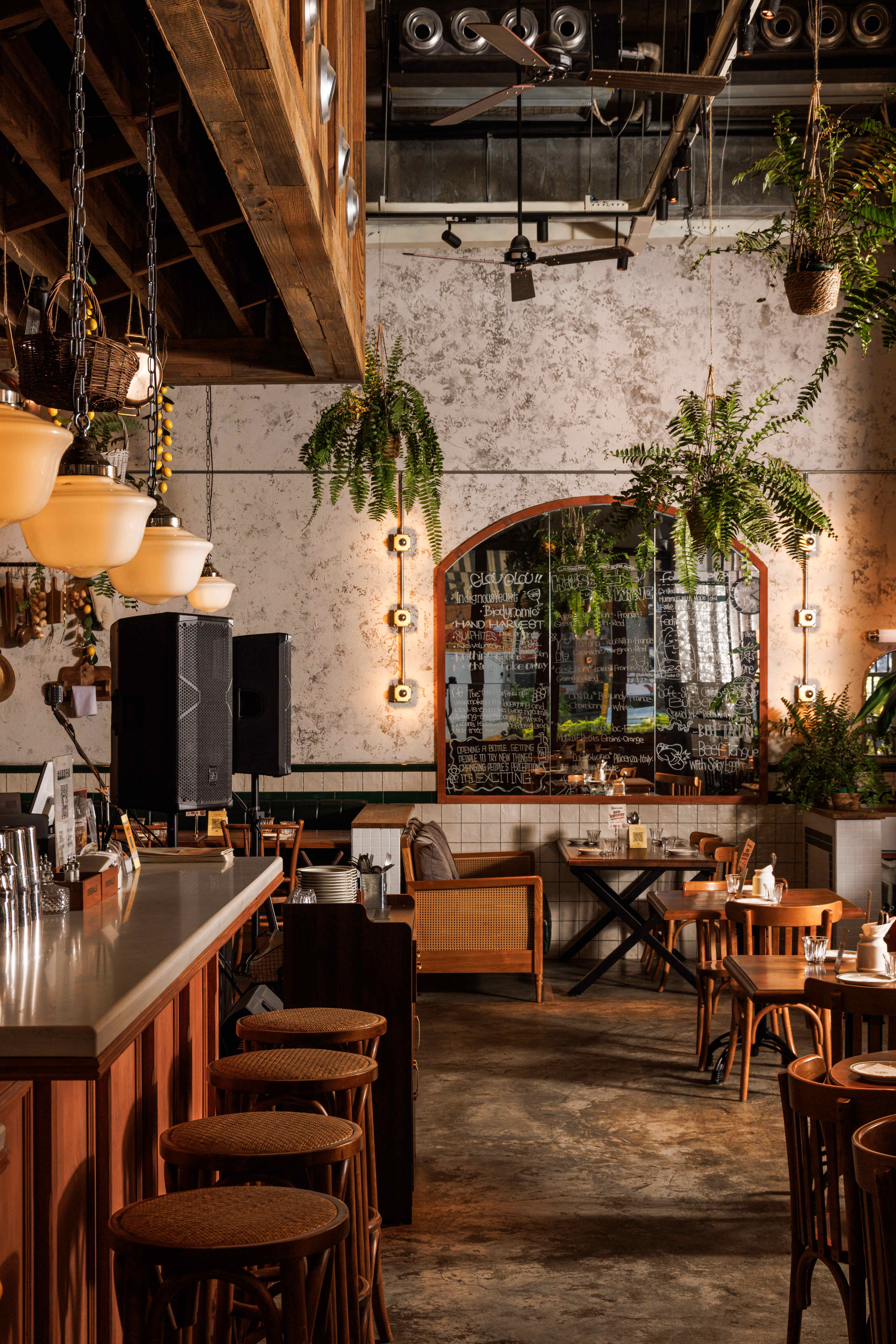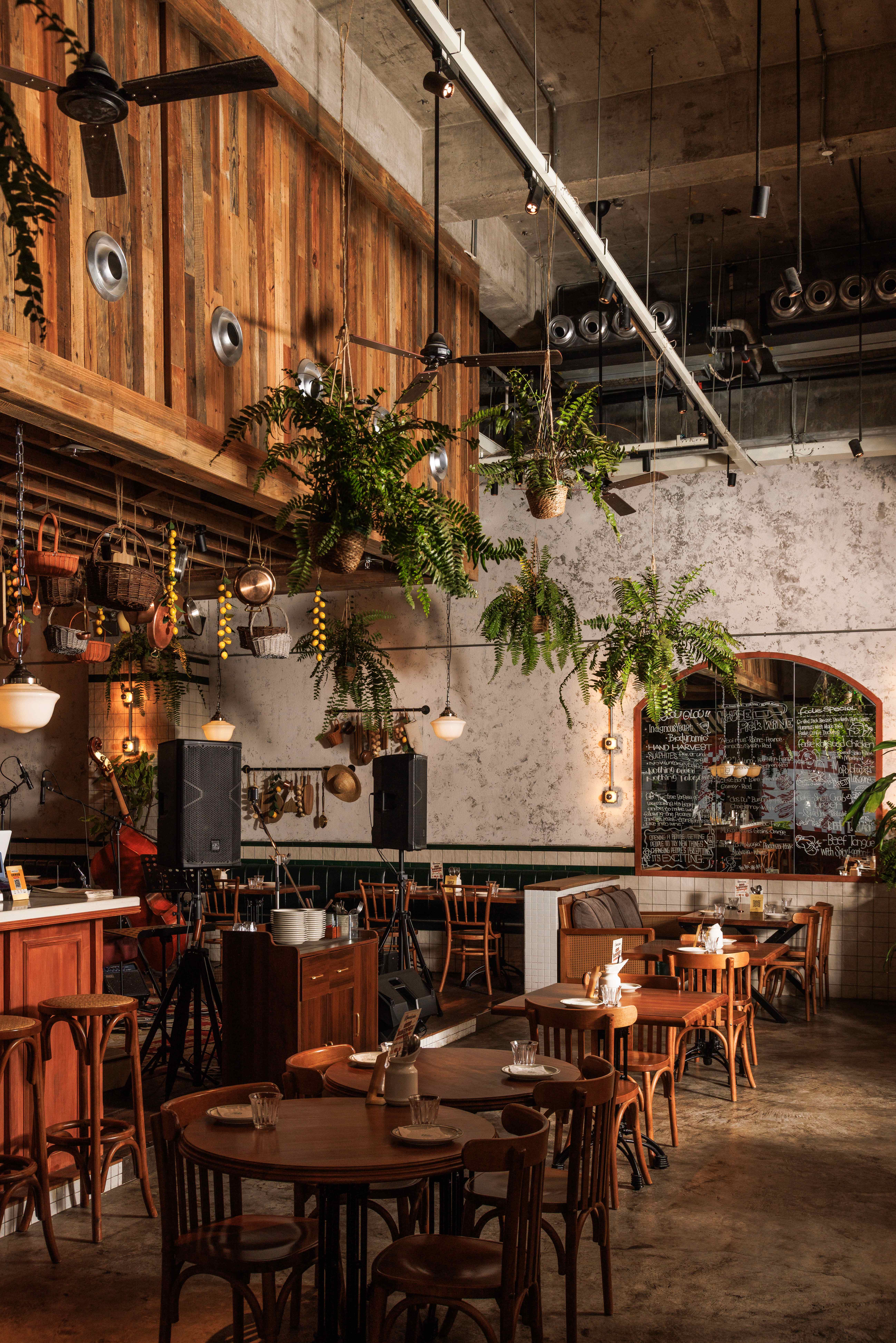 项目定位:福瓶FoolieBottle的设计定位是“都市中的花园”。它摒弃传统餐厅的封闭与形式感,旨在都市街角打造一个如法国小馆般自在、复古且明亮的“花园式”开放空间。策划思路围绕“松弛哲学”与“真诚连接”展开。通过砸掉隔墙、采用全明厨与挑高设计,物理上打破边界,拉近主厨与食客的距离,营造开放透明的氛围。空间以原生木材与法式乡村风为基调,搭配季节性绿植,塑造中性温润、自然呼吸的场域。其核心是提供一种“留白”的体验,适配从工作餐、下午茶到微醺夜饮的全时段需求,让食材与交流成为真正的主角,实现都市中理想主义的生活轻社交。