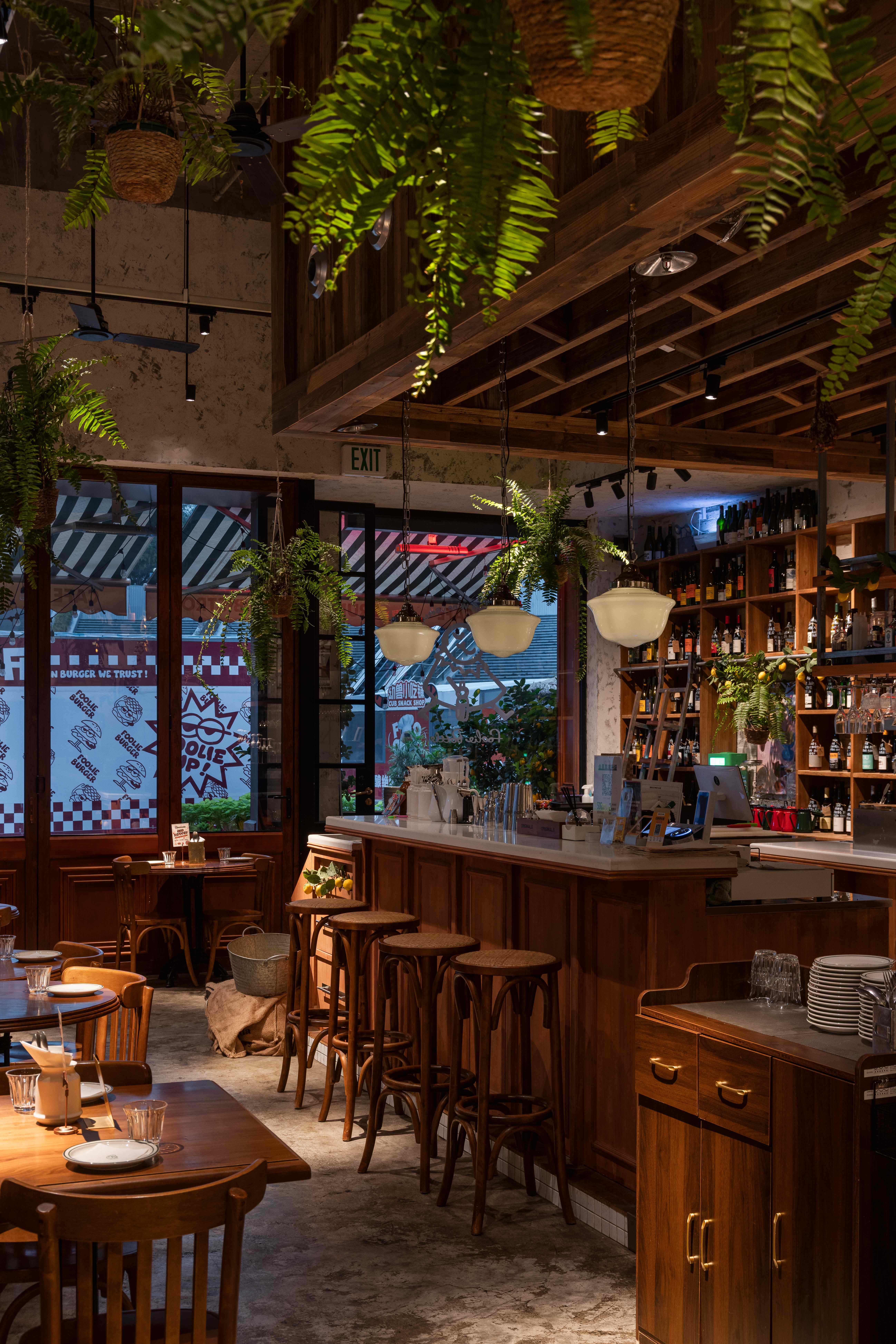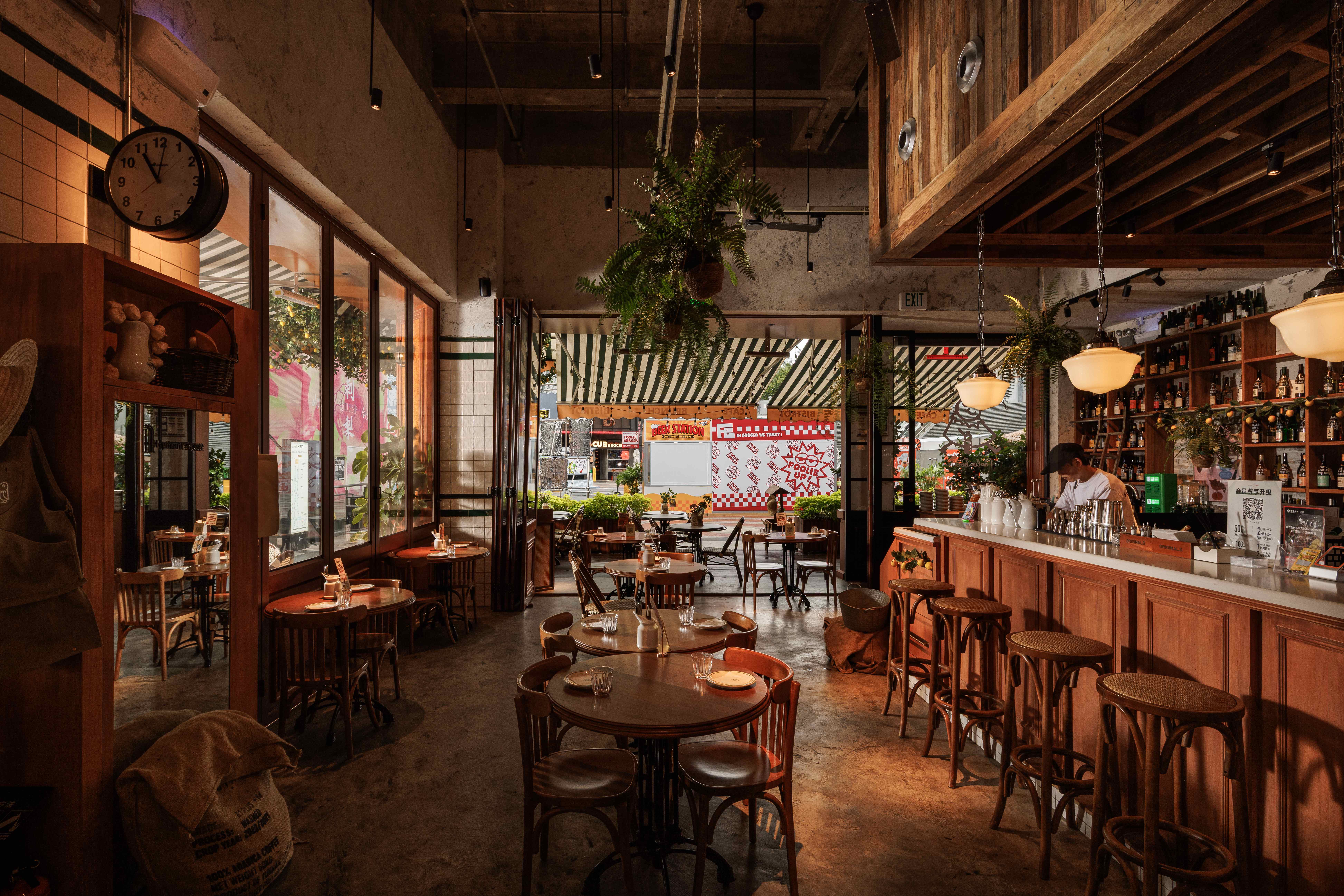 用户体验:空间以其独特的松弛感广受好评。食客常形容它“像都市里一个会呼吸的客厅”,全明厨与环绕式布局消除了距离感,营造出自在、温暖的社交氛围。原生木材与绿植带来的自然气息,适配从白日工作到微醺夜饮的全时段需求。这里让简单一餐也充满治愈感,成为许多人心中“愿意反复停留的街角花园”。
