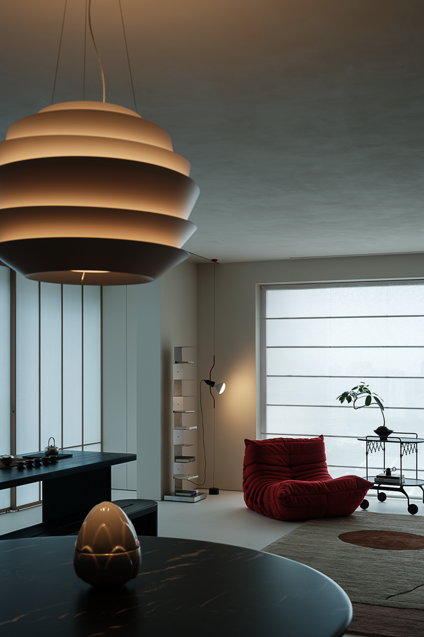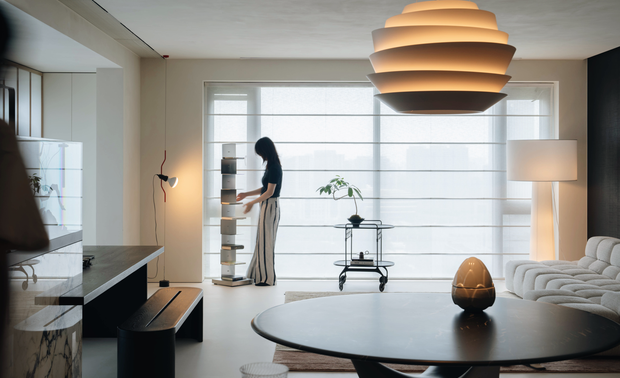 项目定位:当一处居所被赋予承载一个四口之家的多元生活时,设计就不再只是风格的表达,而更专注于对生活本质的探索。面对居住者本身多元的兴趣爱好,如何在有限的面积中获得功能性的平衡,又如何在丰盈的场景中让喧嚣退隐,将静谧定位为可被感知的日常,是此次设计的重点。