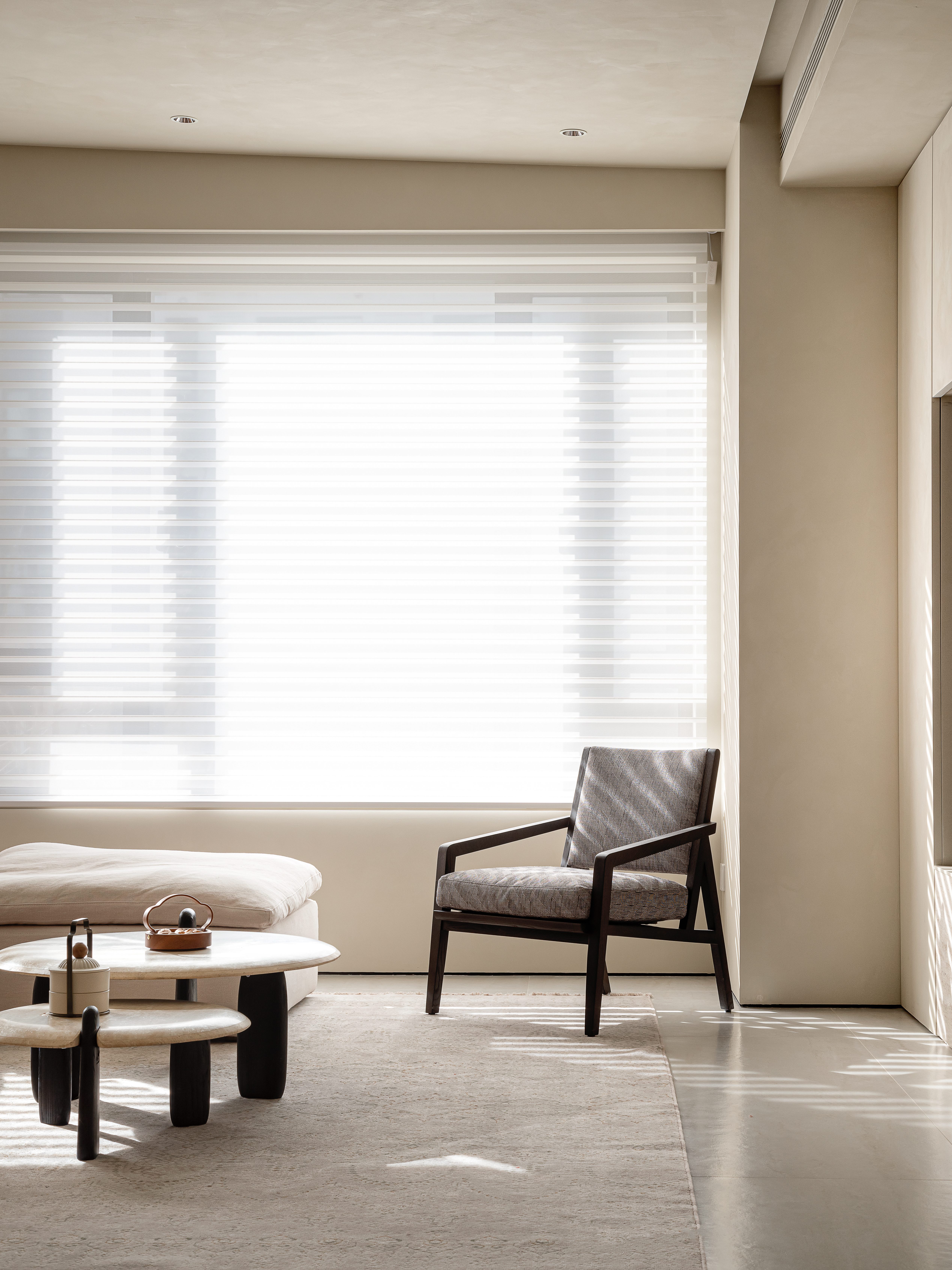 项目定位:这是套会呼吸的房子——洞石的粗粝、木纹的温润、艺术漆的静谧,在留白中达成微妙平衡。