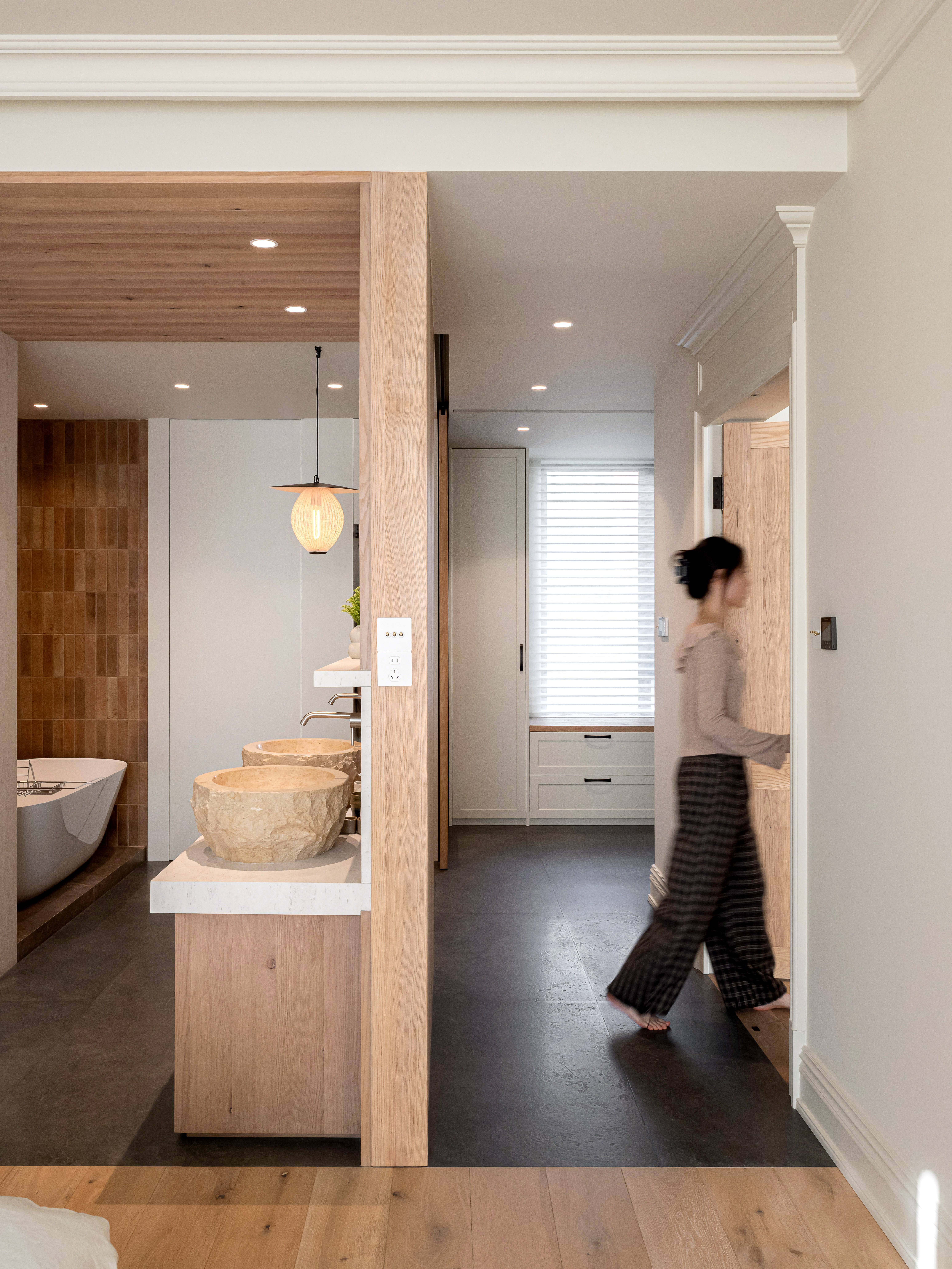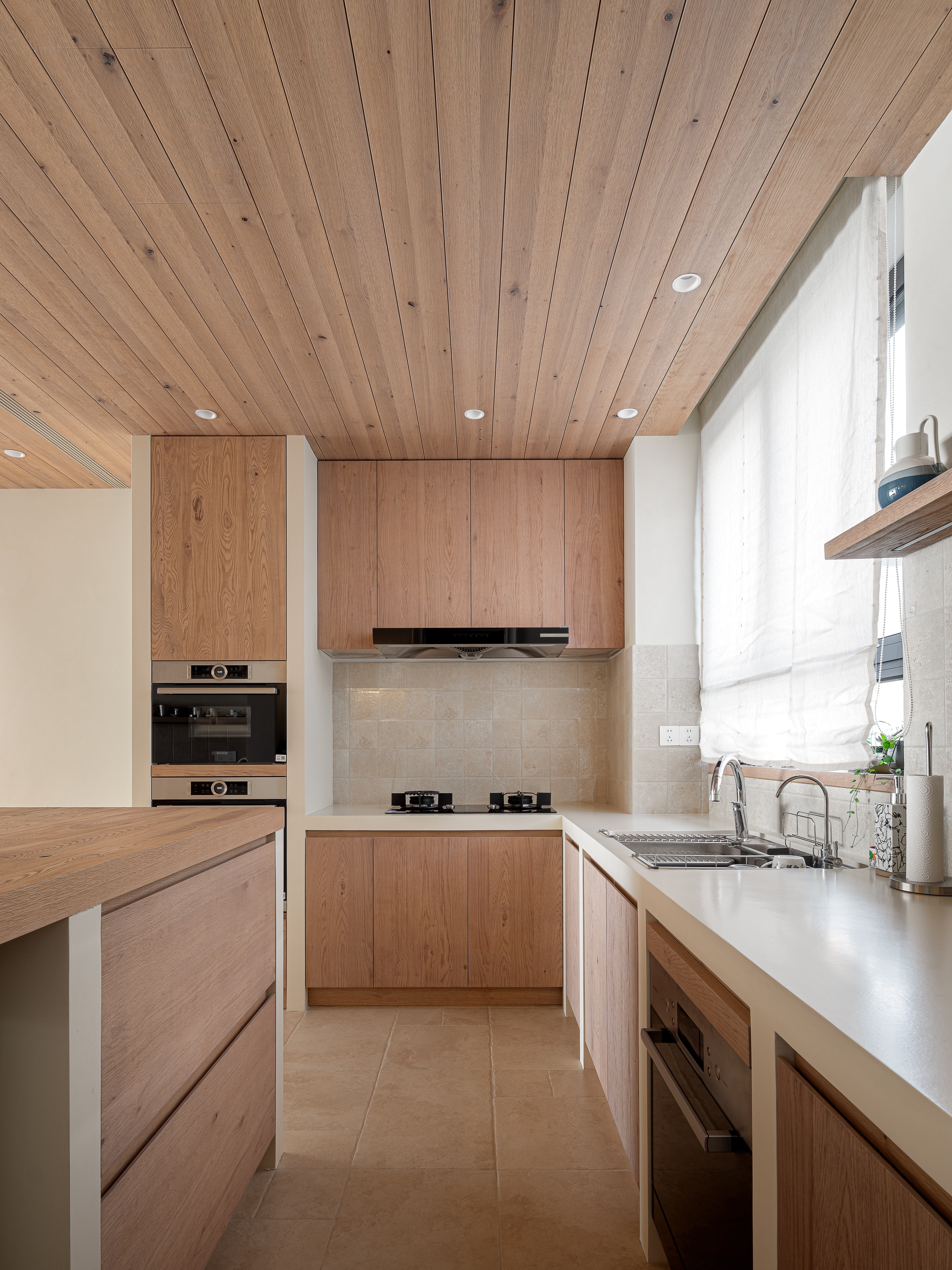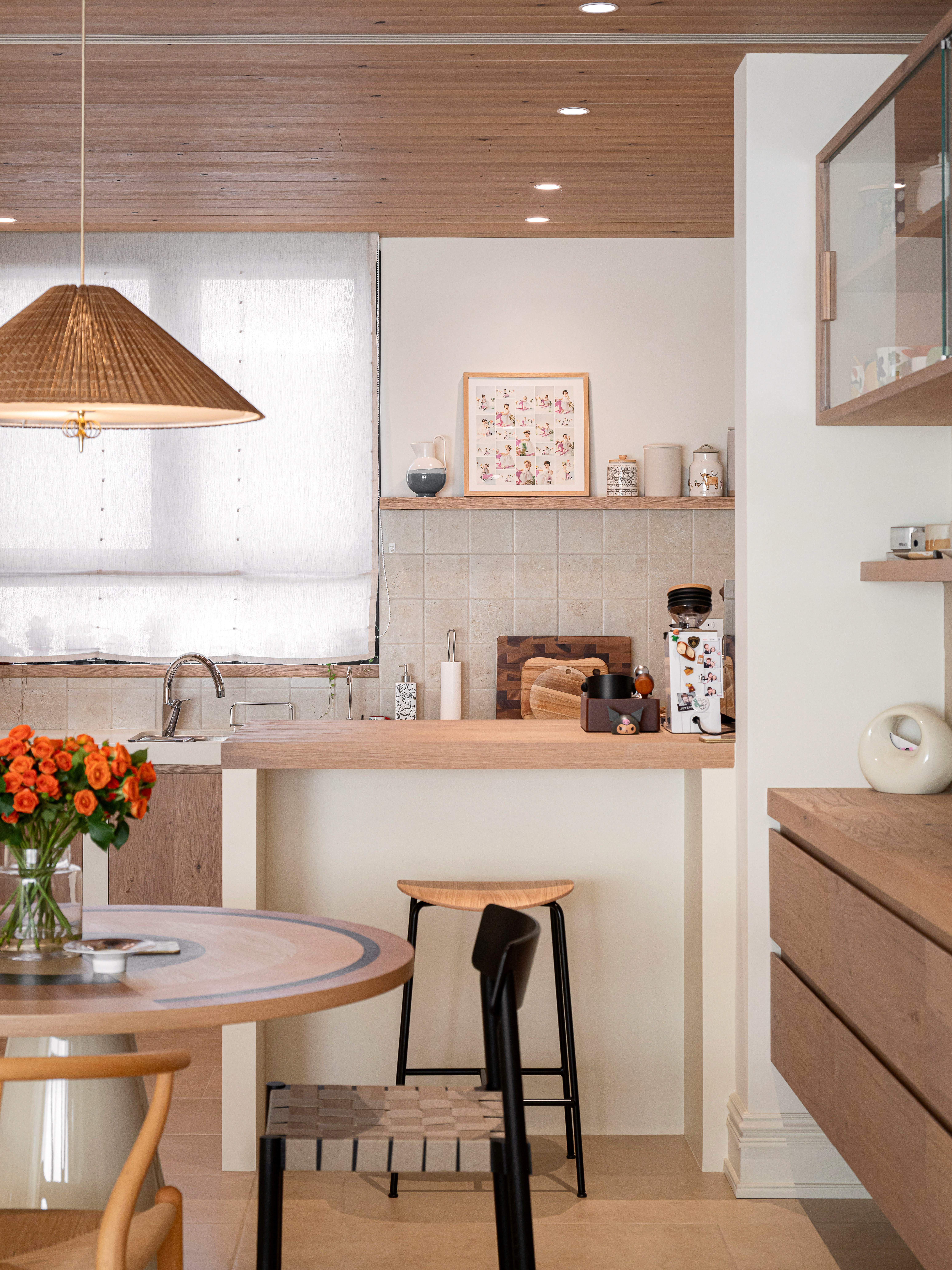 设计选材:本作以老木头、天然藤编亚麻及本地砖砌橱柜为核心选材,降低加工能耗与成本。通过拆改隔墙形成开放布局与洄游动线,减少新建材使用,在营造南法自然感的同时,践行了低碳经济的设计理念。
