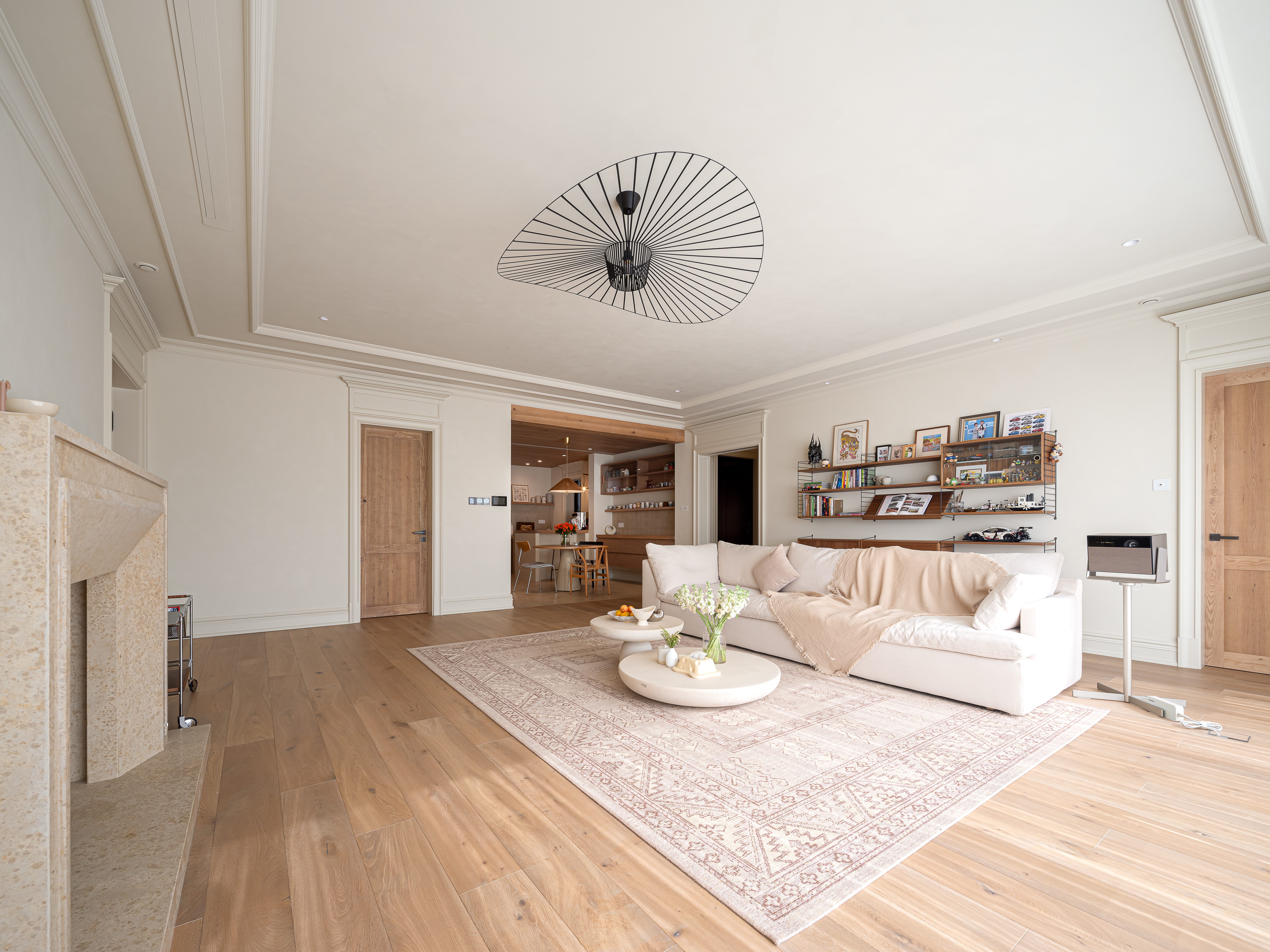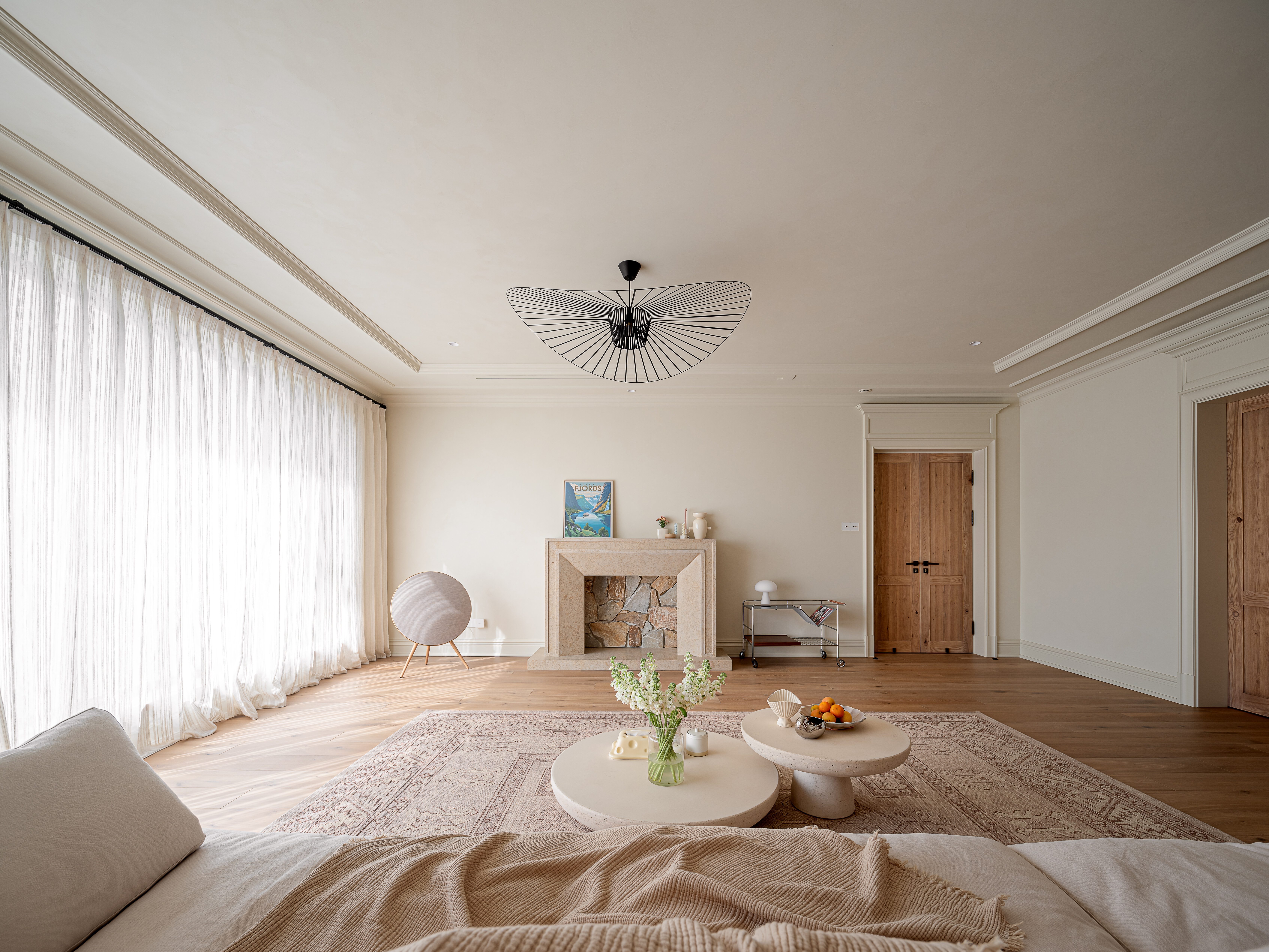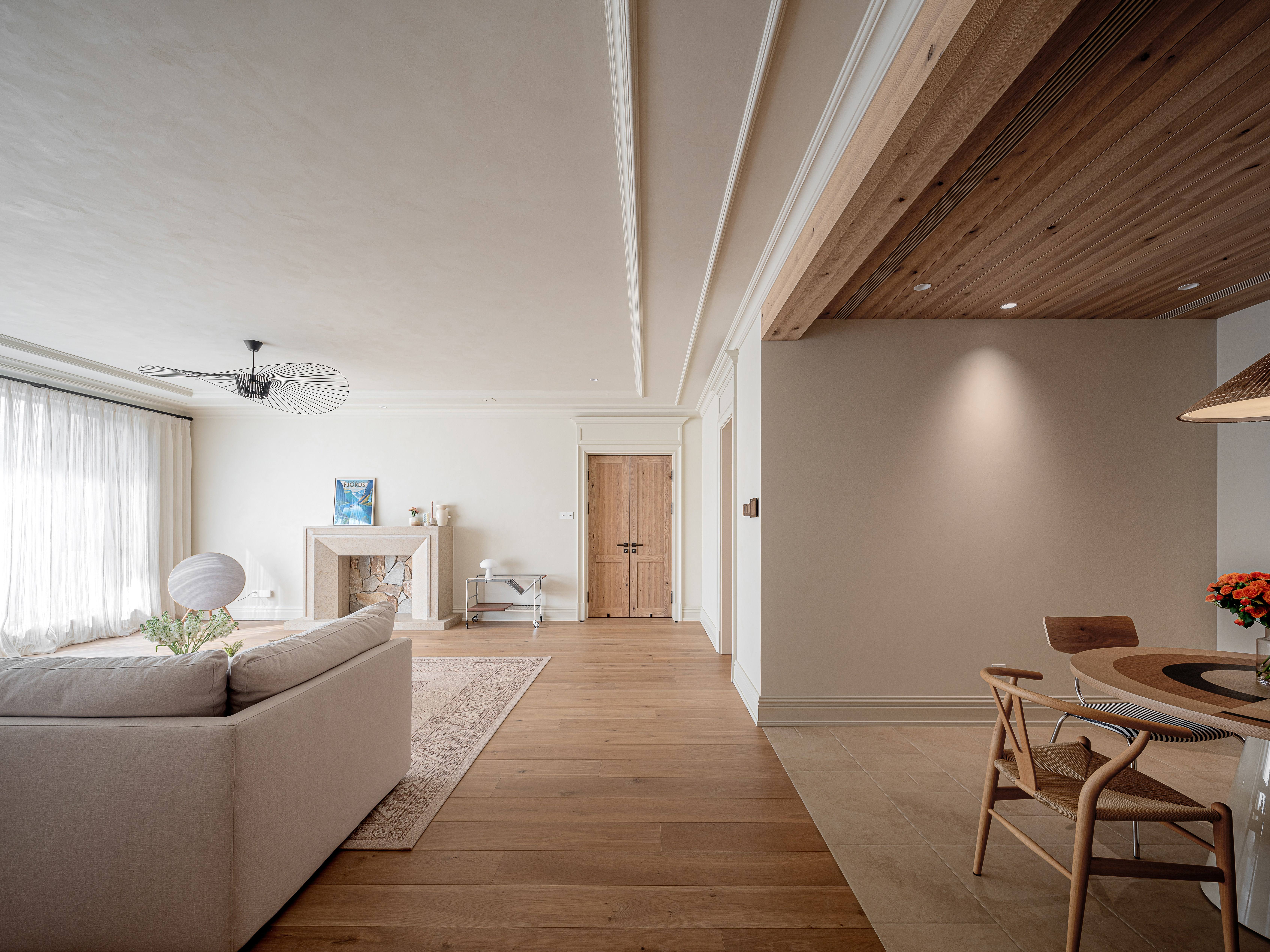 空间意境:“吊灯、格子窗、仪式感拉满的双开门、装饰壁炉”我们希望营造出自然愉悦的氛围。让周身的一切都变得松弛下来。