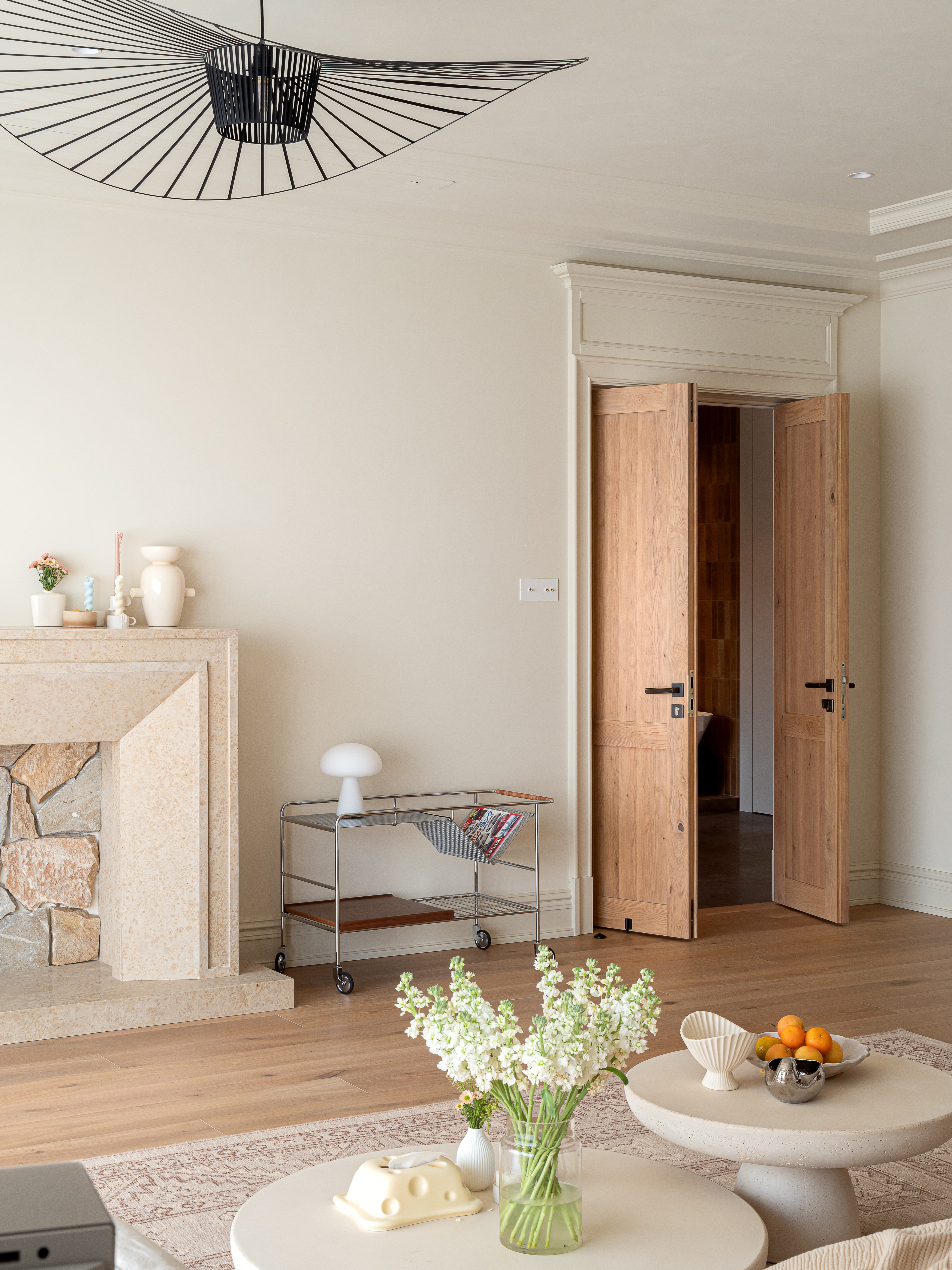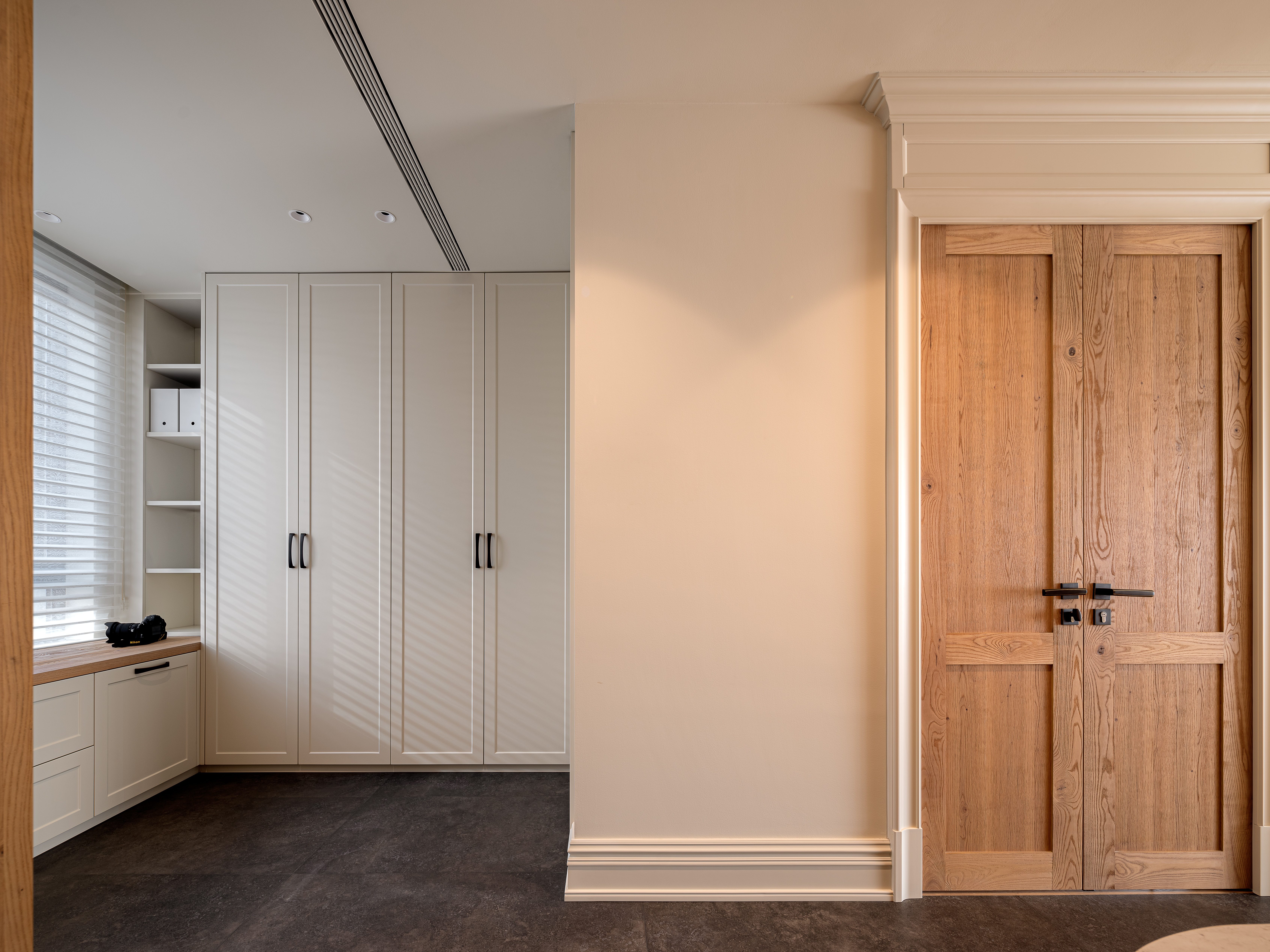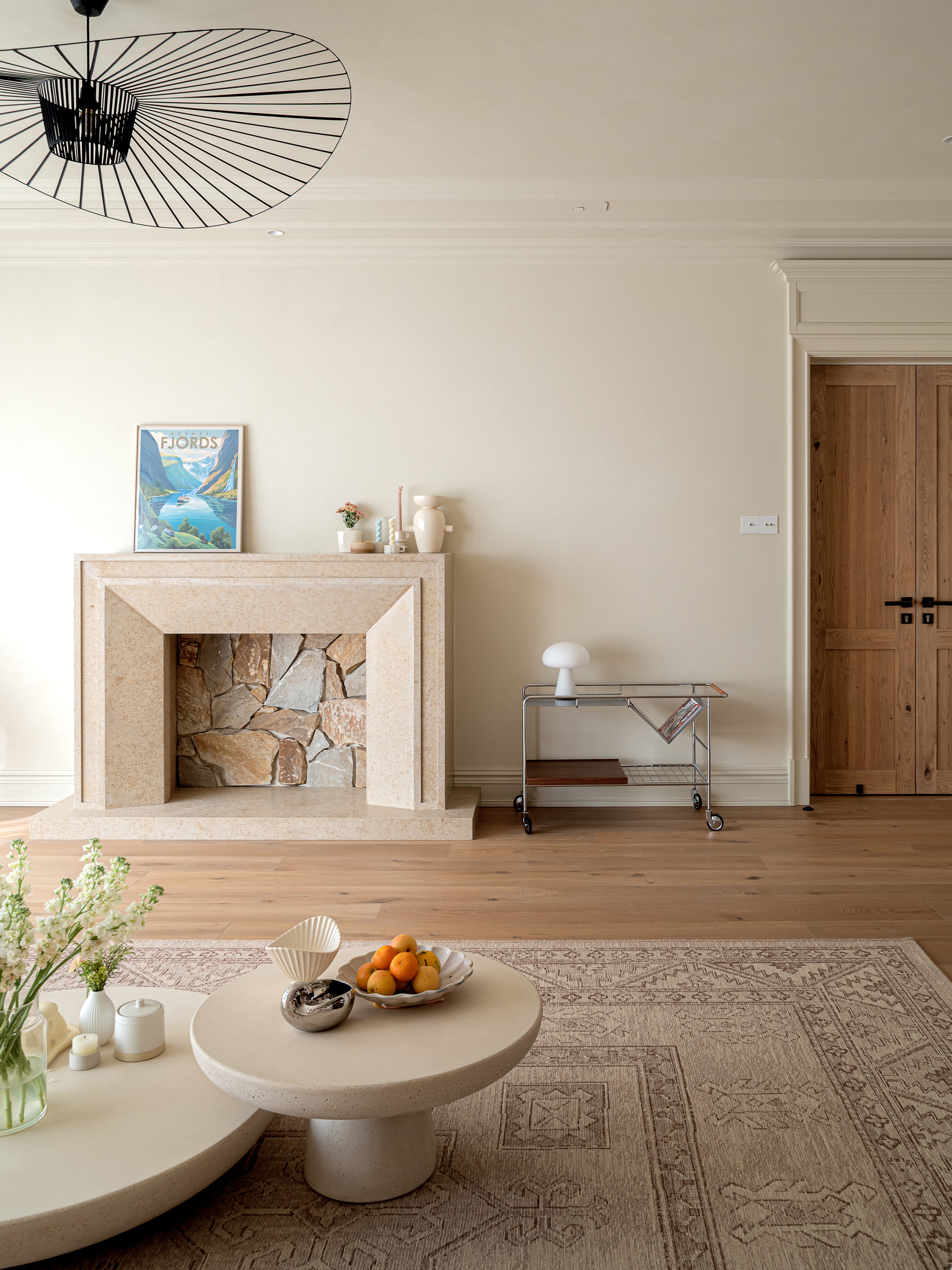 空间意境:“吊灯、格子窗、仪式感拉满的双开门、装饰壁炉”我们希望营造出自然愉悦的氛围。让周身的一切都变得松弛下来。