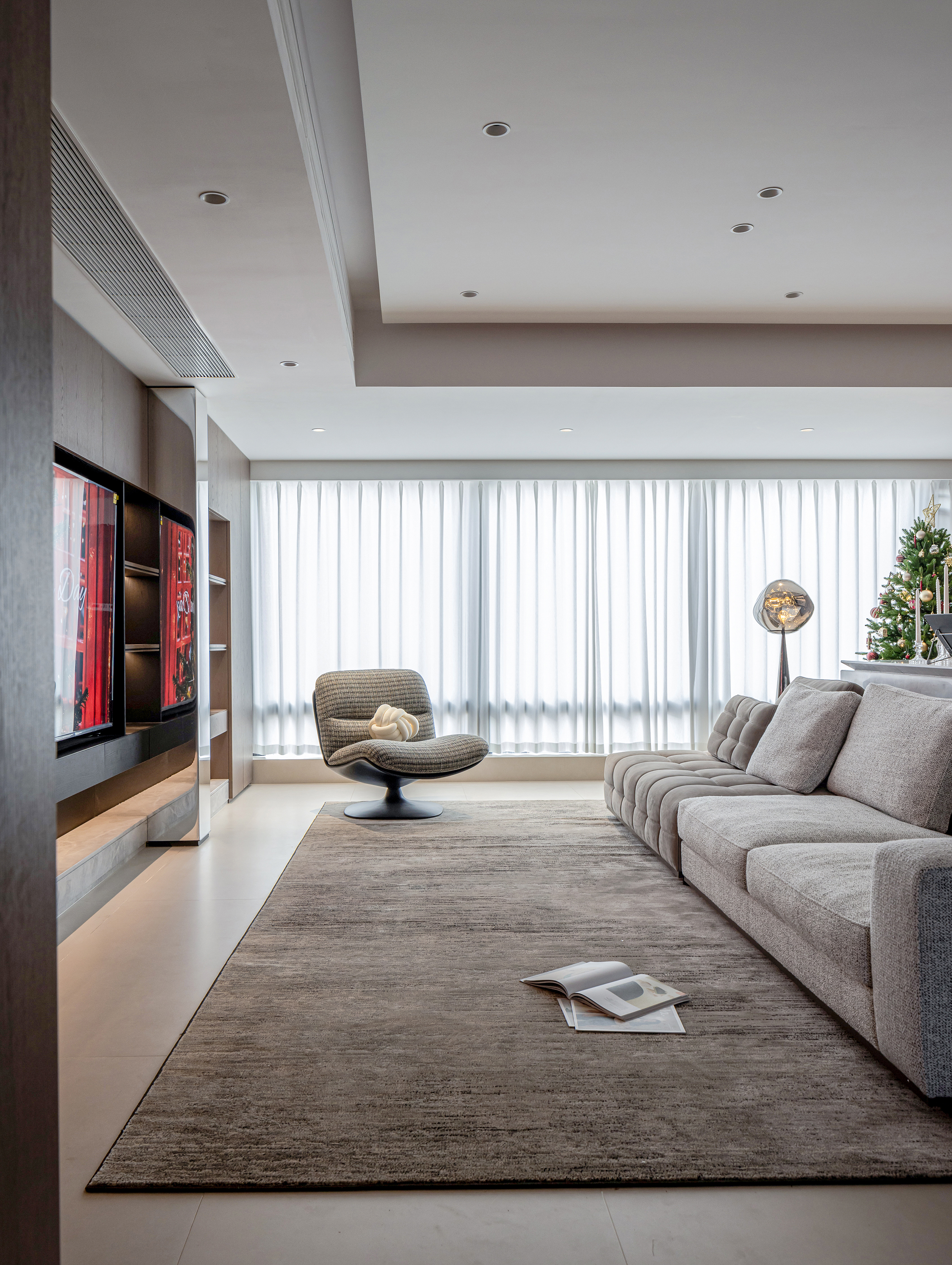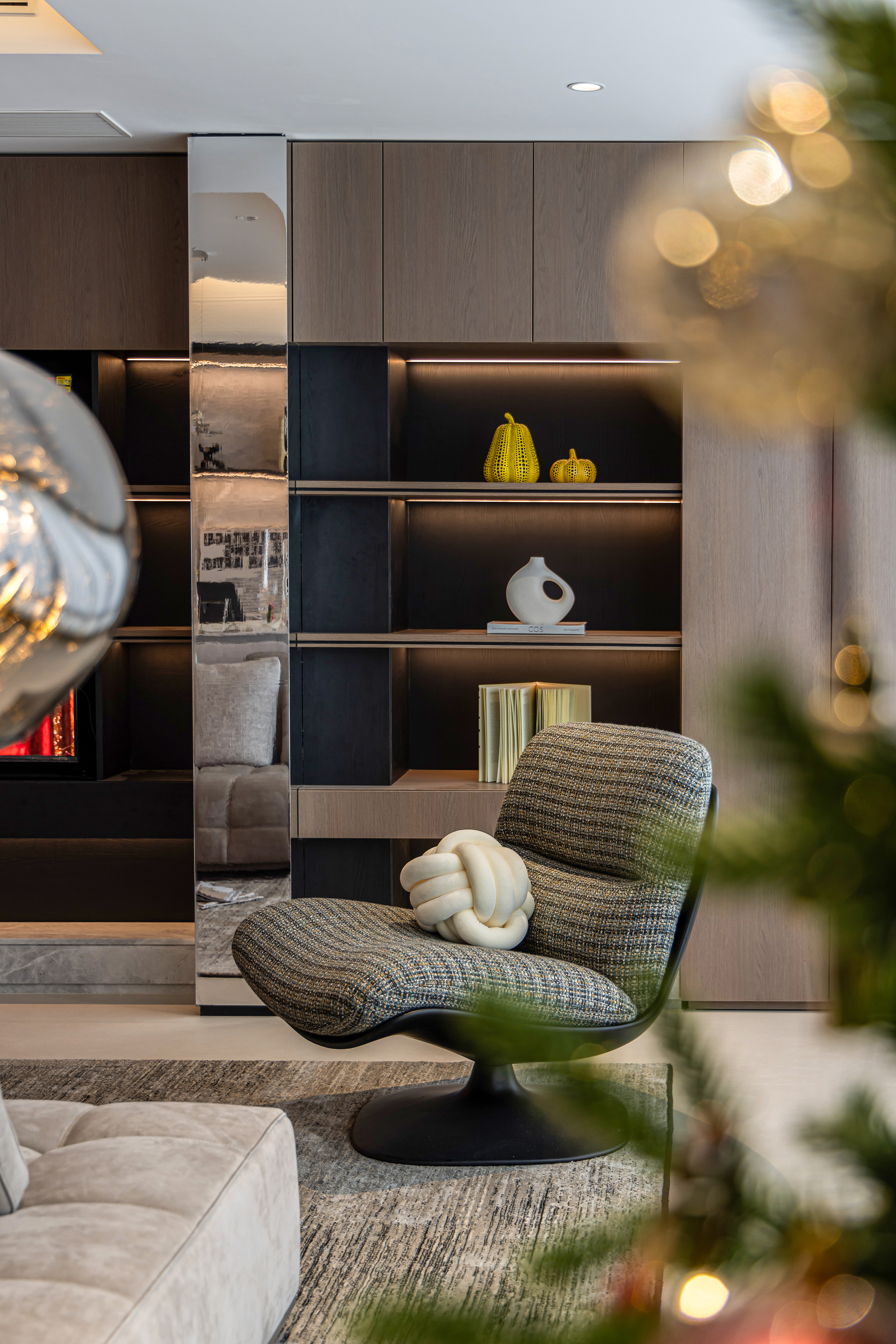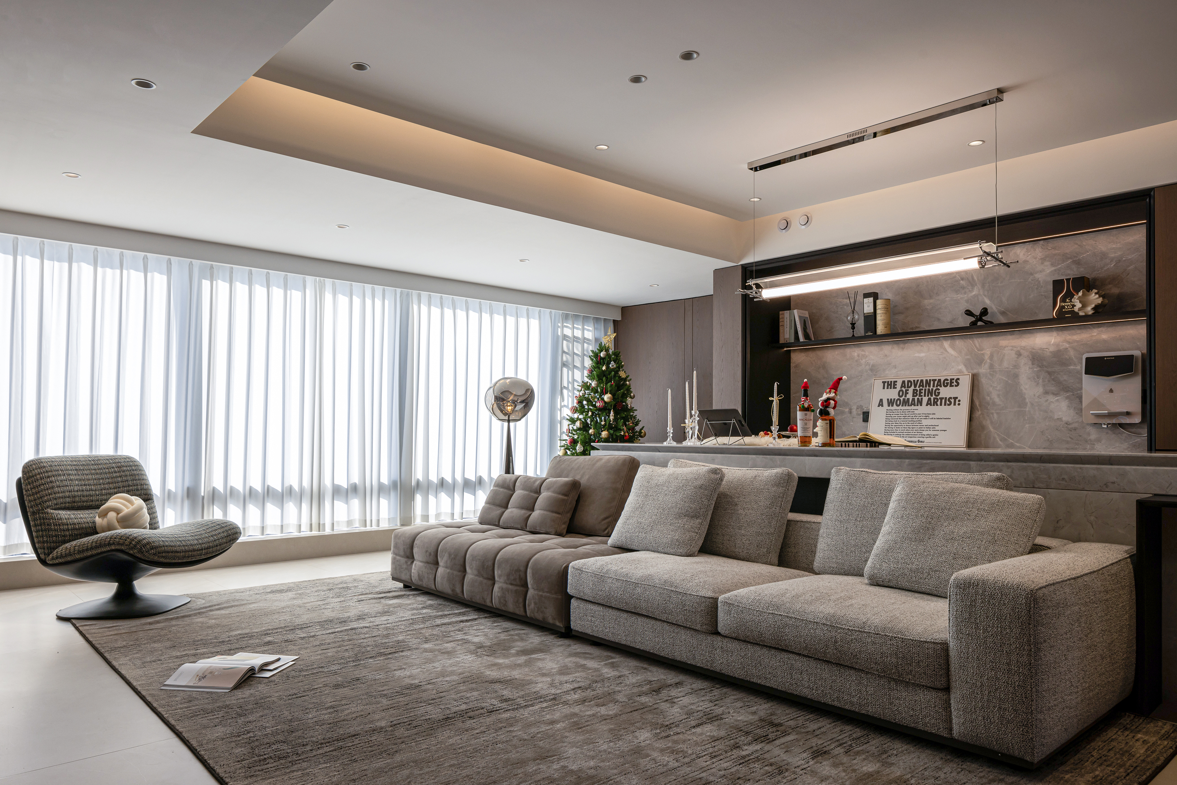用户体验:主卧镜面微倾,笑靥入画。静然享受属于自我的一点奢侈时光。丰富的材质与线条,达成自然趣味与沉静自持的气质糅合、简化陈设、收束齐整的客卧内,独辟一处陈列区,让时光在这里发酵。明暗色系对比,打破空间沉闷,于细节中隐现雍容文雅的气息。