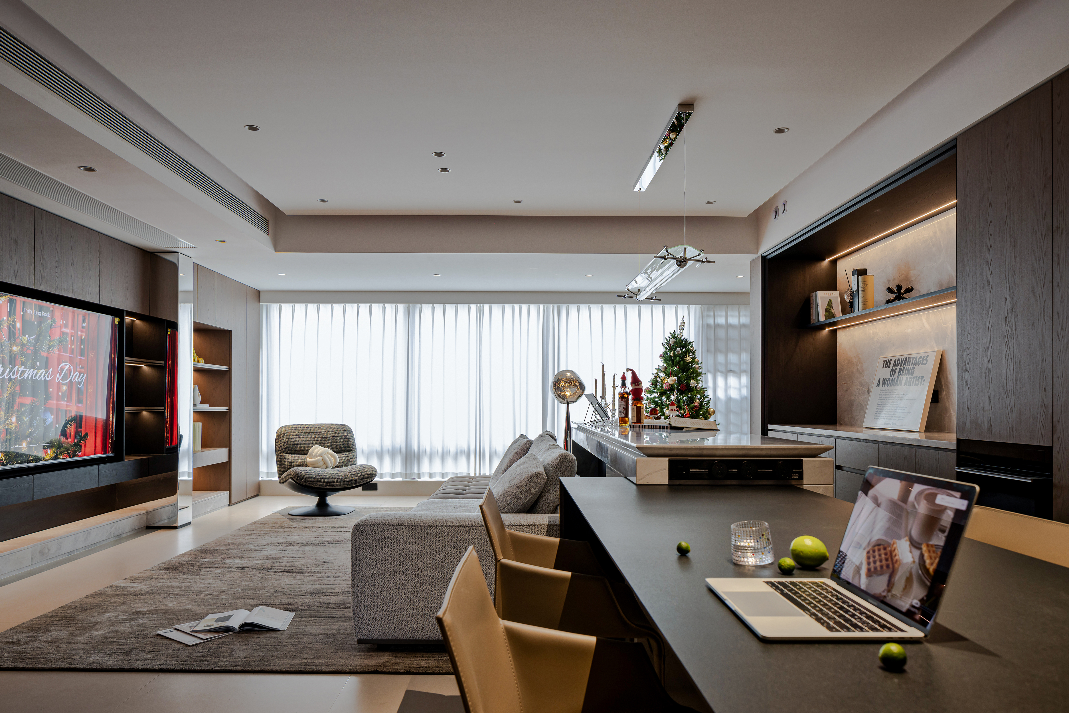 设计选材:以细腻的荔白铺陈宁静基底,温润的原木搭配浅色的天然大理石,营造简约而富有韵律的视觉层次。通过微调格局实现统一视觉界面。