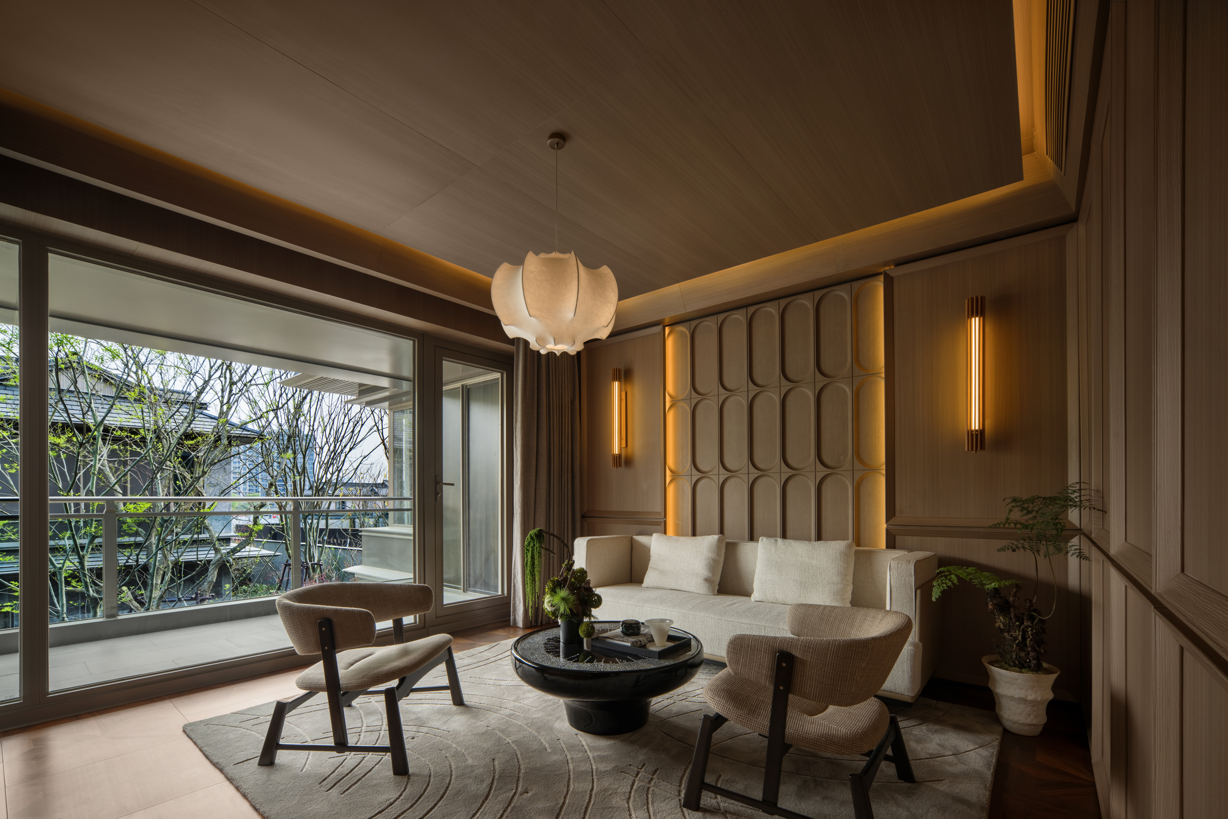 用户体验:基于舟山项目实际硬装完工效果,居住者反馈:“大面积落地窗将山海光影变成家里的主画,木质格栅与静水造景让心瞬间静下来。硬装营造的东方意境与现代生活的舒适结合得恰到好处,每天回家都像走入一幅流动的山水画。” 项目以现代手法诠释地域精神,真正实现了自然、空间与心灵的合一。