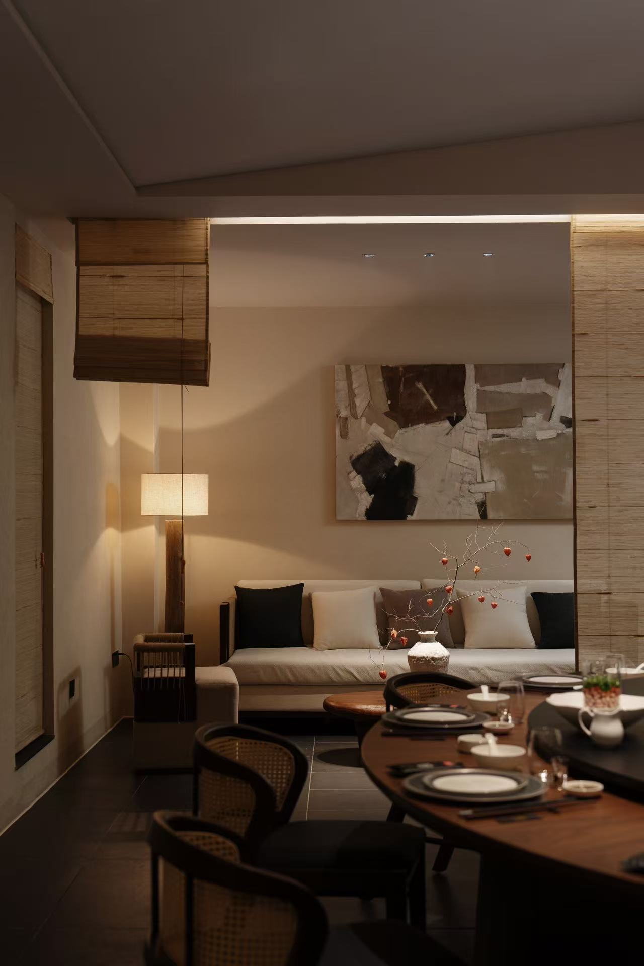 院落式递进动线与室内造景设计,打造出“一步一景”的沉浸式就餐体验,私宴区围合布局保障了宴请私密性;天然材质与柔和光影的搭配,让食客在喧嚣都市中获得身心放松的禅意体验,空间客流复购率显著提升。