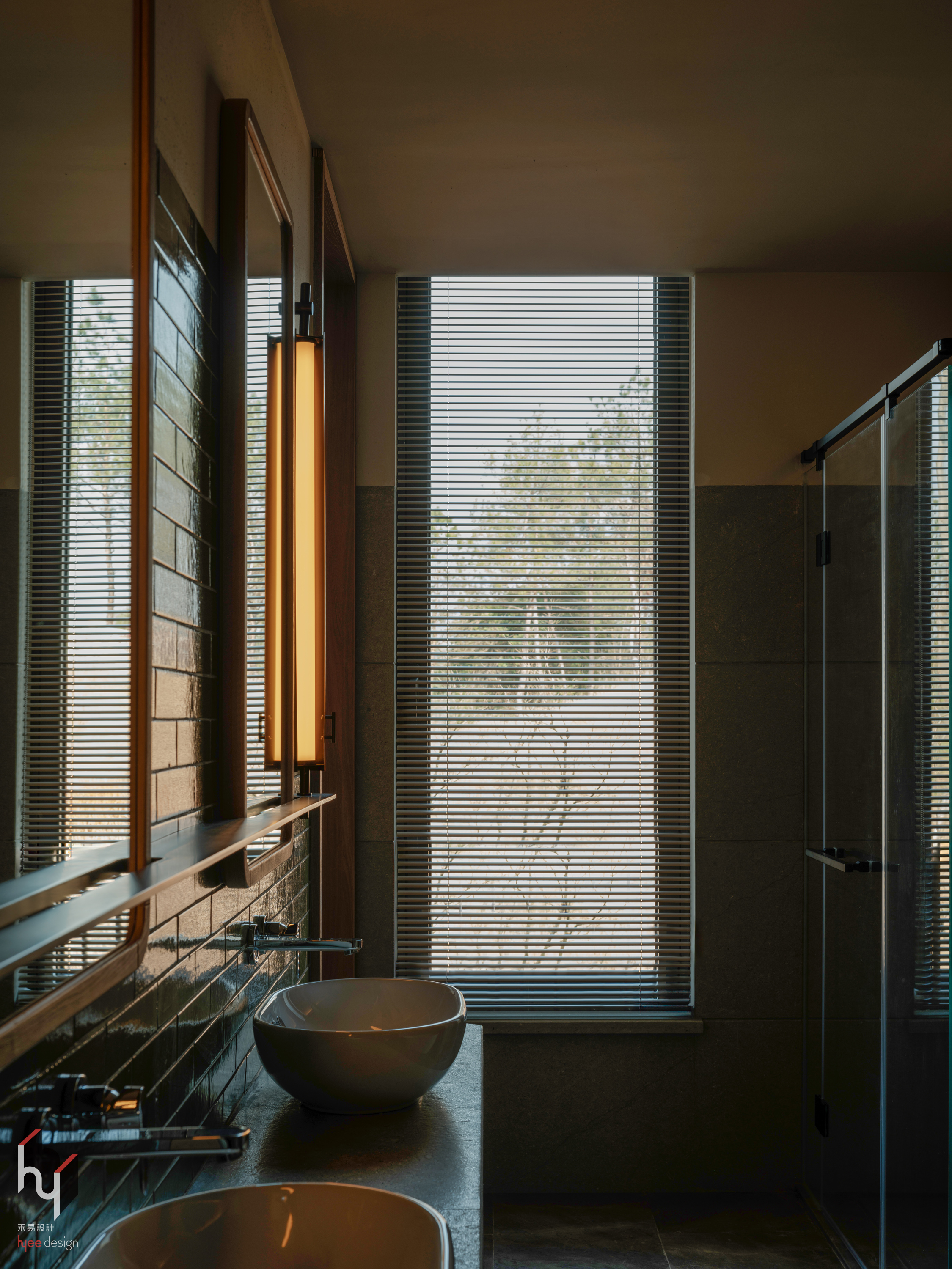 客房卫生间设大面积窗配百叶帘,灵活调节光线与隐私,同时将窗外绿意引入室内。使用者洗漱时亦可观赏自然景致,一改传统卫生间的封闭昏暗,营造明亮通透的全新体验。