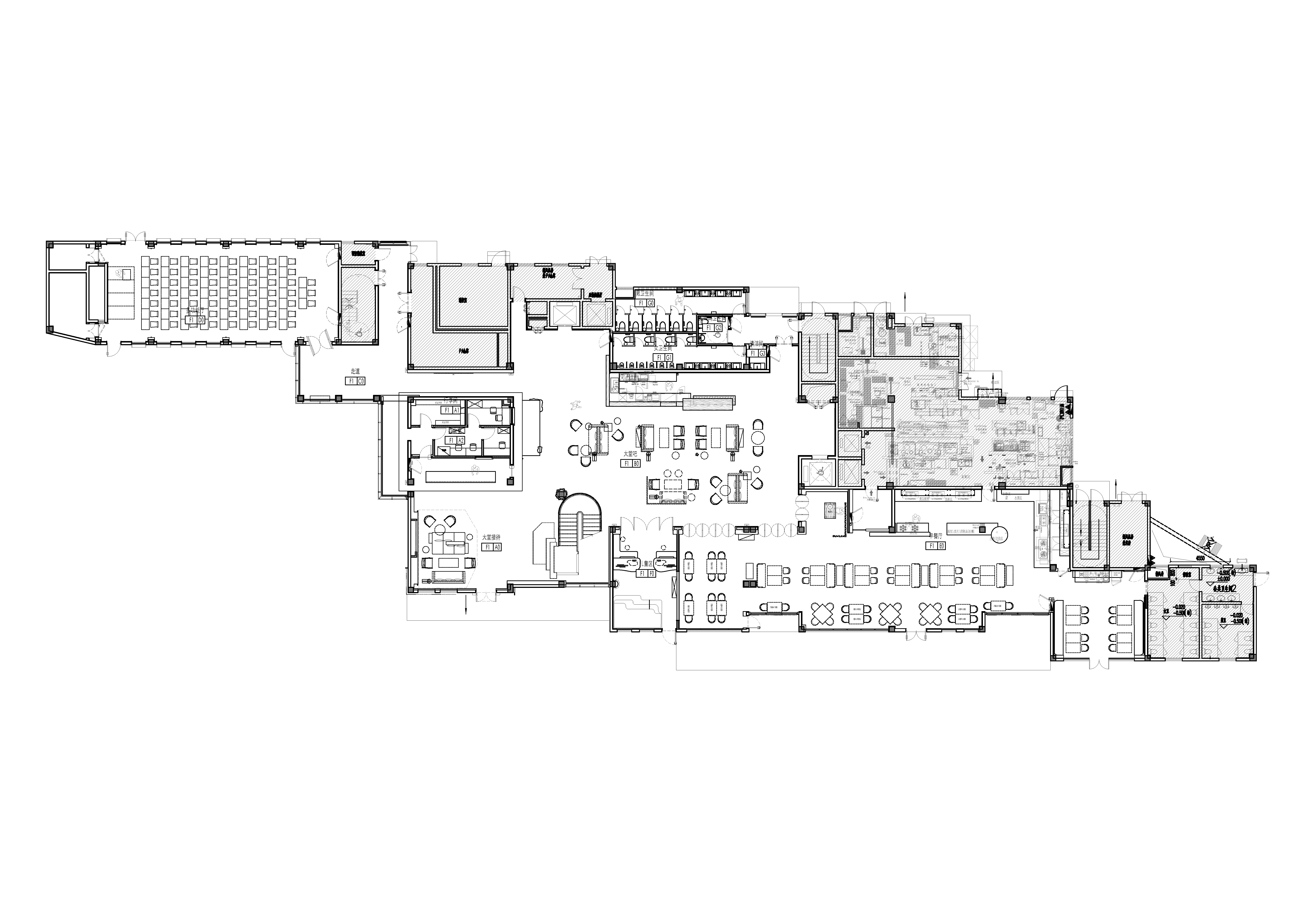 大堂吧,通过不同高度、形式的隔断与家具组合,营造出半开放、多层次的空间格局,既保证私密性,又增强空间互动性与流动性。