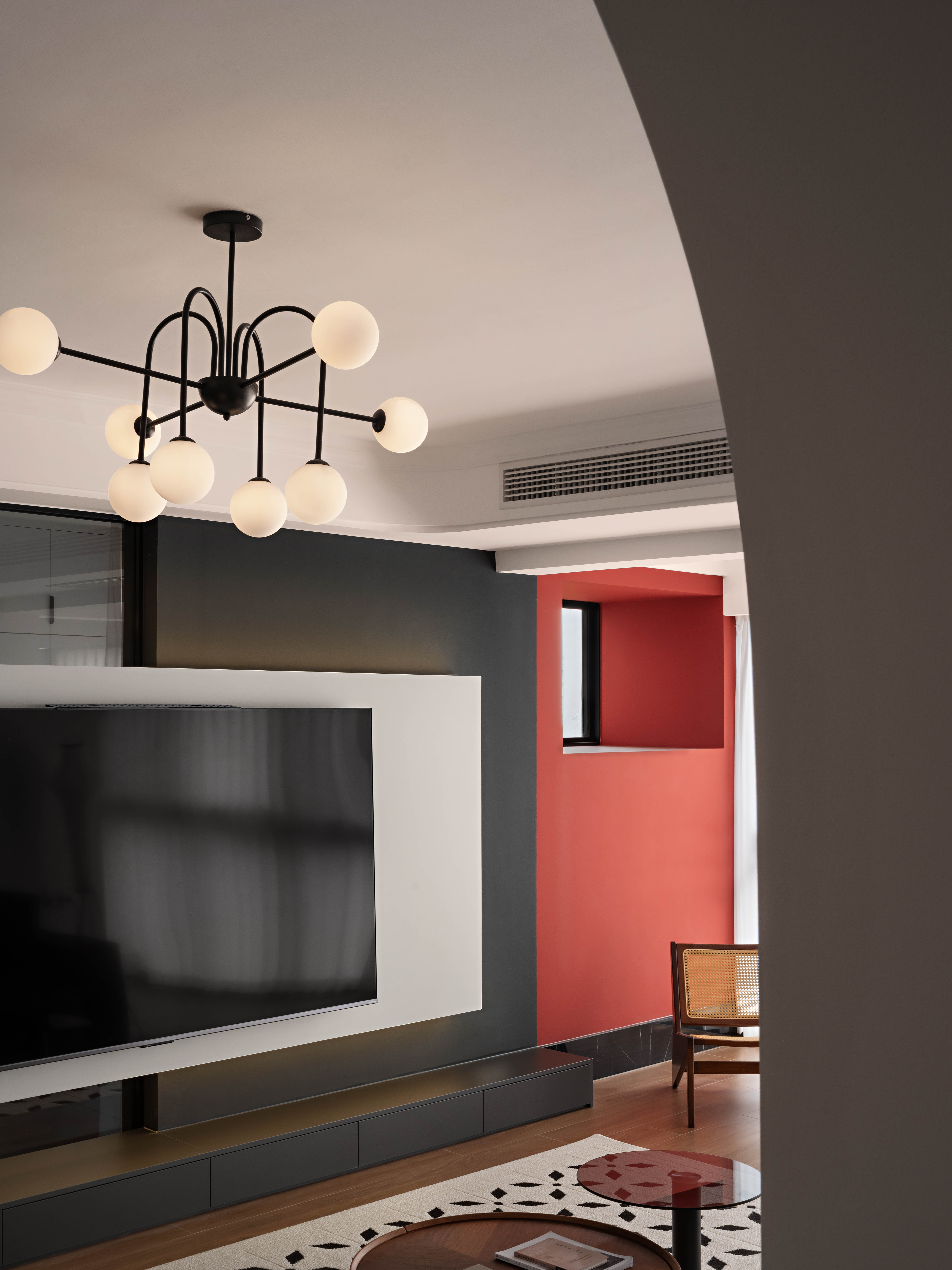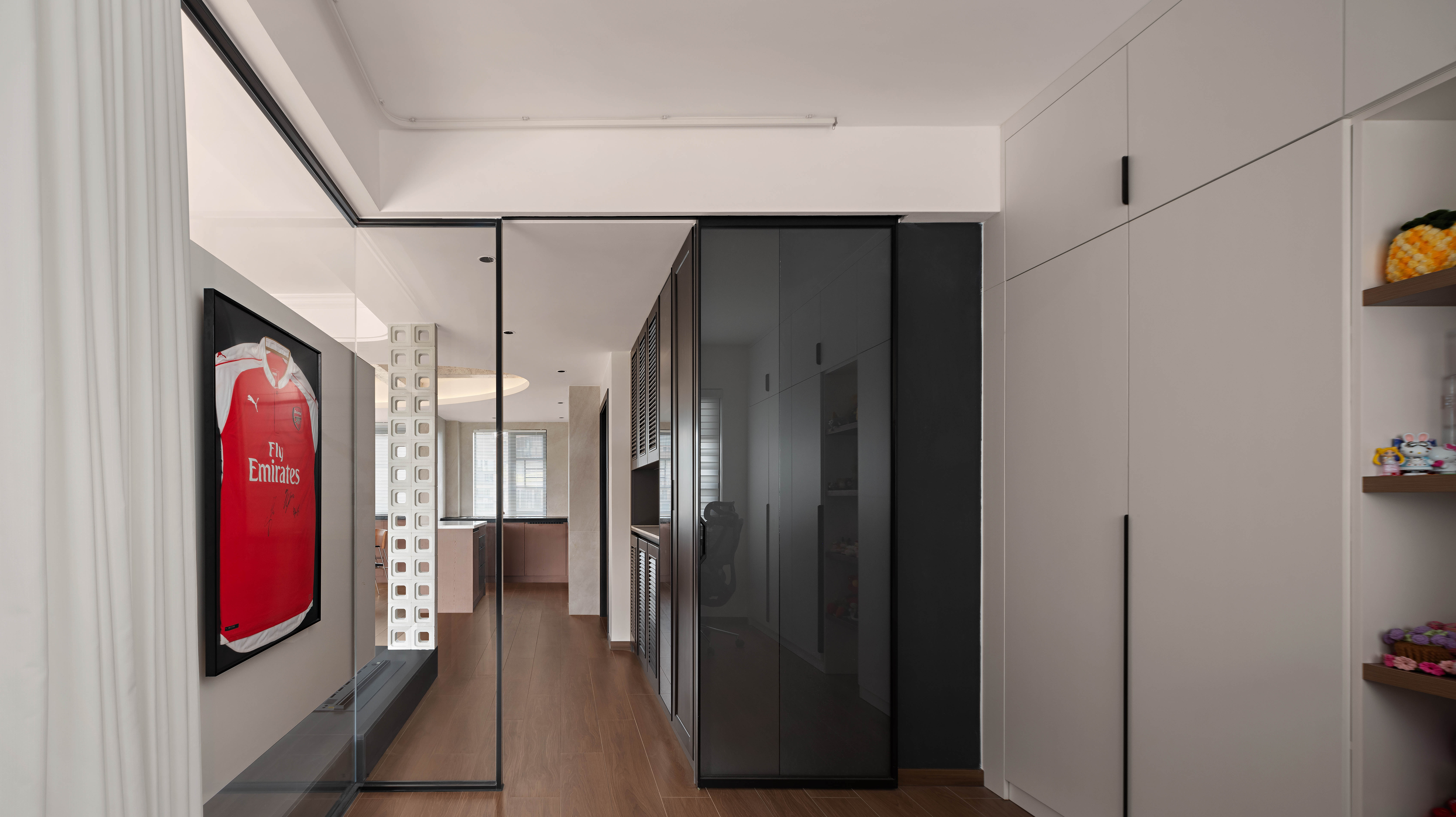用户体验:谈及配色,这套住宅的灵感之源指向了耐克 AJ 的经典红黑系列。业主作为一名资深的球鞋收藏爱好者,对红与黑的潮流魅力有着深刻的理解与热爱。空间中,黑色的沉稳与红色的热烈形成了强烈的视觉碰撞,既保留了家居空间应有的质感与静谧,又注入了 AJ 所代表的那种充满活力与个性的潮流气息。每一处红与黑的搭配,都像是在为生活谱写一段潮流的乐章,让家不仅是休憩的港湾,更是彰显个人品味与热爱的潮流秀场。