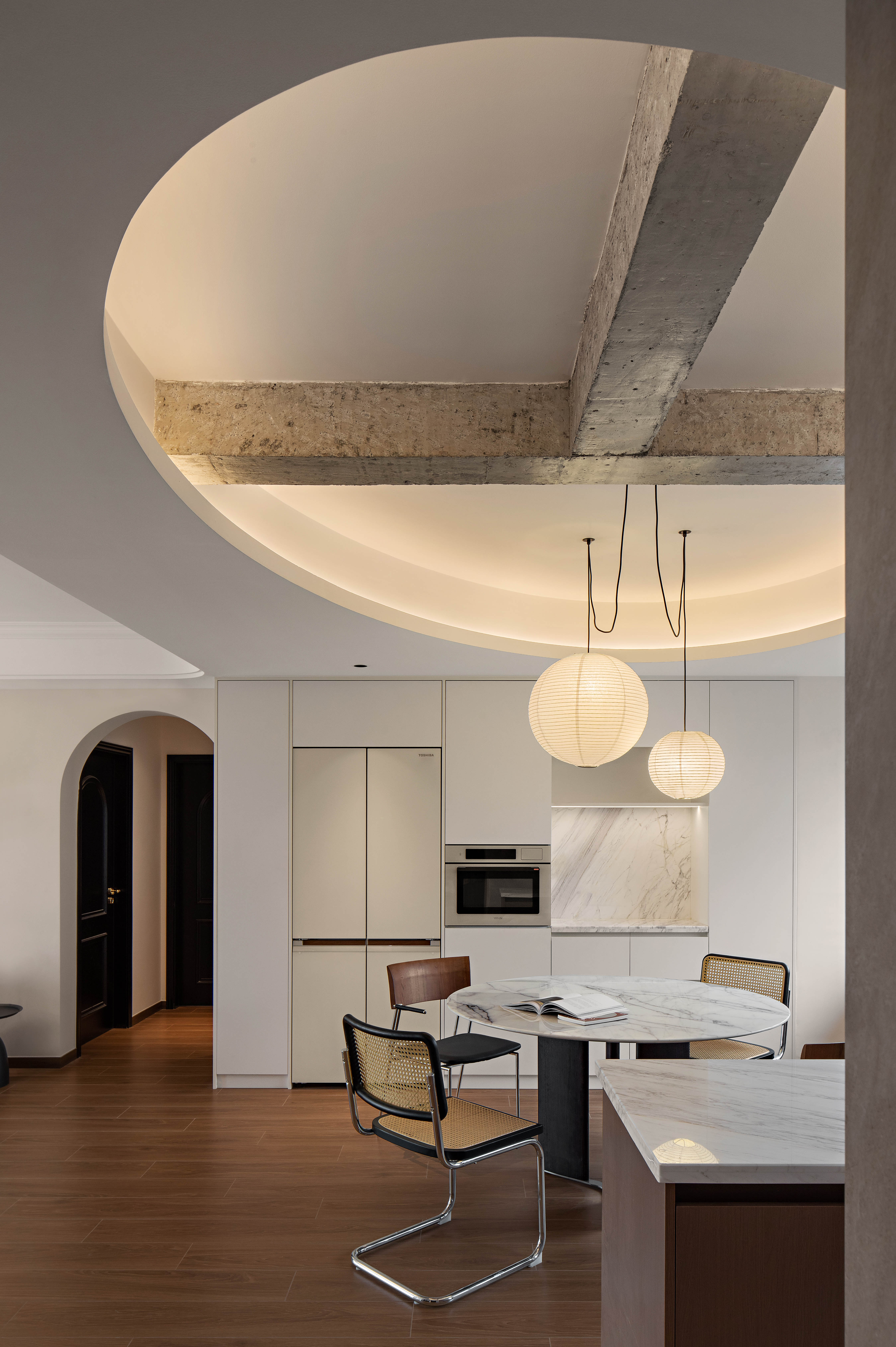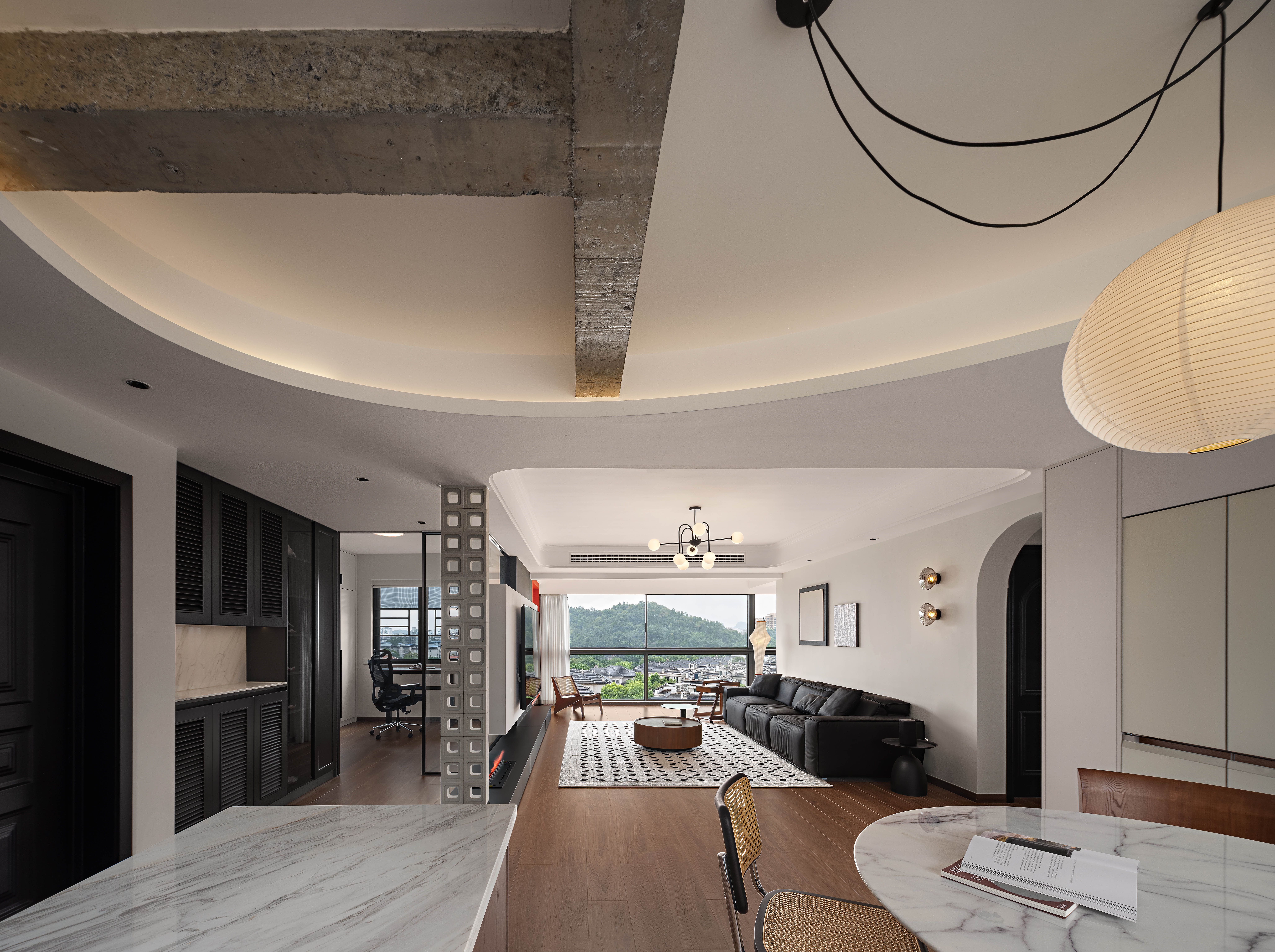 空间布局:阳光可以毫无阻碍地在客餐厅内流淌,窗外那片开阔的景致也顺势涌入,成为室内最天然的装饰画。原本各自独立的空间,此刻如同被赋予了生命,相互呼应、彼此交融,空间的优点被几何倍数地放大,家不再是一个个封闭的盒子,而是一个能自由呼吸的有机整体。