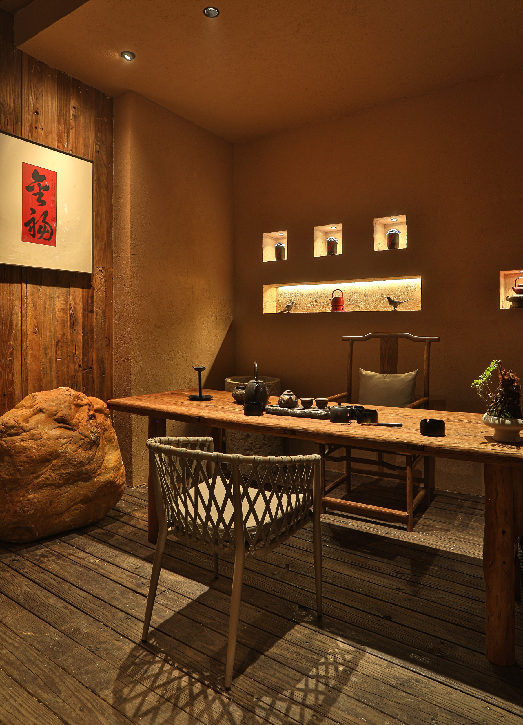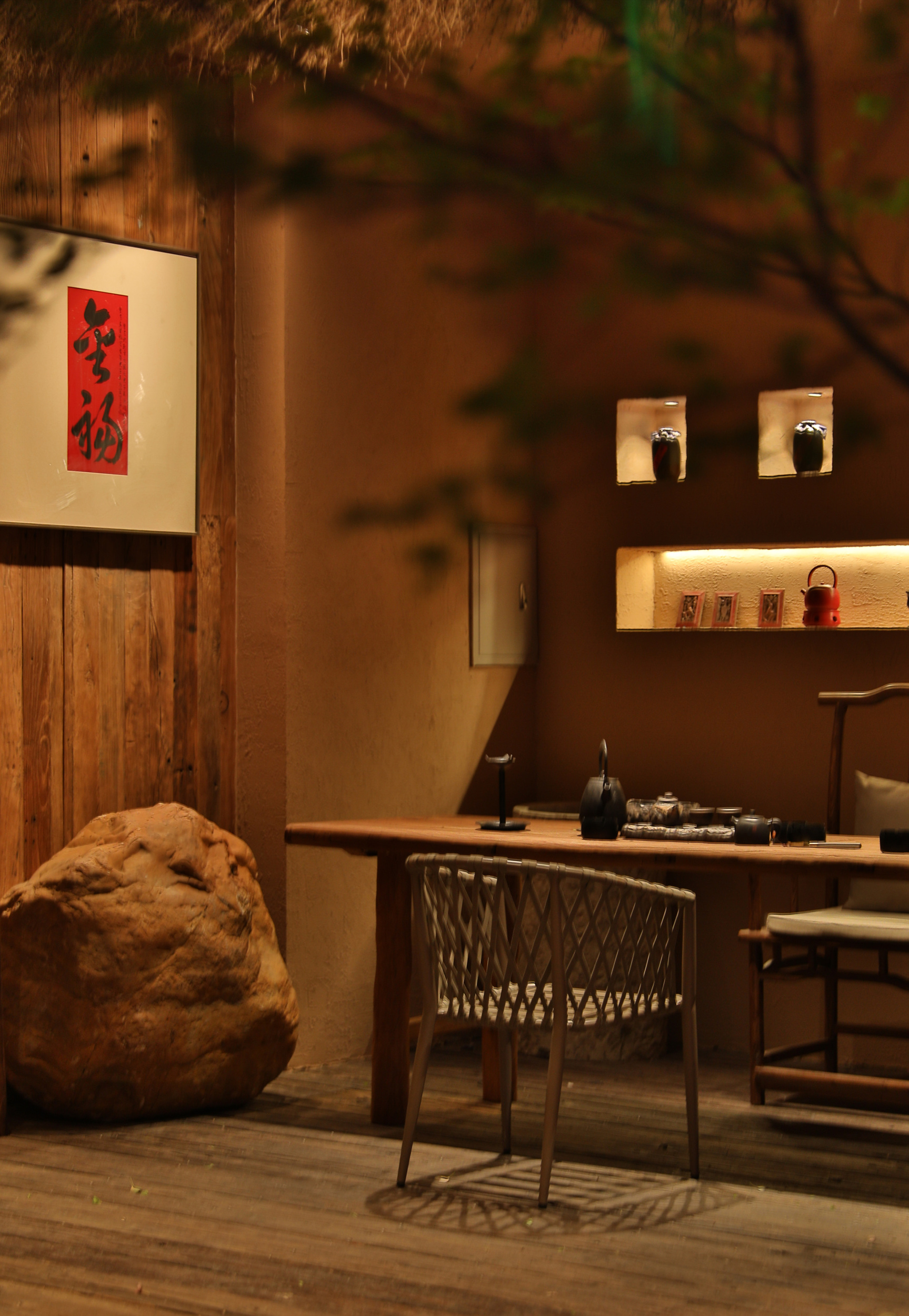 设计选材:从石狮子到老木板拼搭的茶台,从木墩、石礅、木盘到矮脚竹椅,品牌以“老物新用”为原则,构建“高价值单品+场景化组合”的具有江南韵味的文艺民俗美学符号,实现视觉溢价与成本控制的平衡,传递 “贵而不奢” 的价值认知。