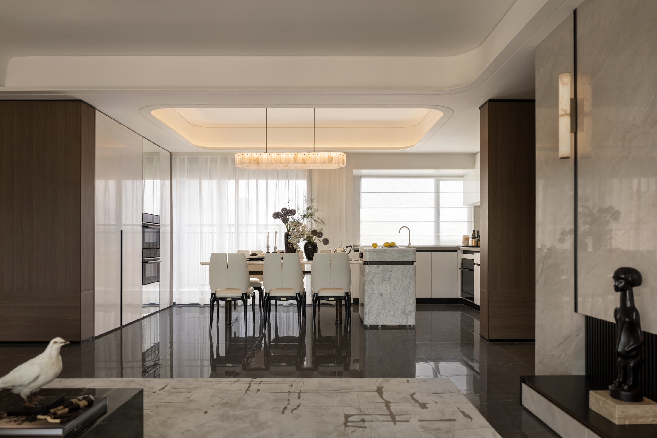 这里从此成为家的社交主场:女主人准备晚餐时,能自然地加入客厅的谈天;男主人冲泡咖啡的间隙,目光还能捕捉到孩子玩耍的身影。烹饪不再是后台的独奏,而是融入家庭温馨日常的前台互动。 -