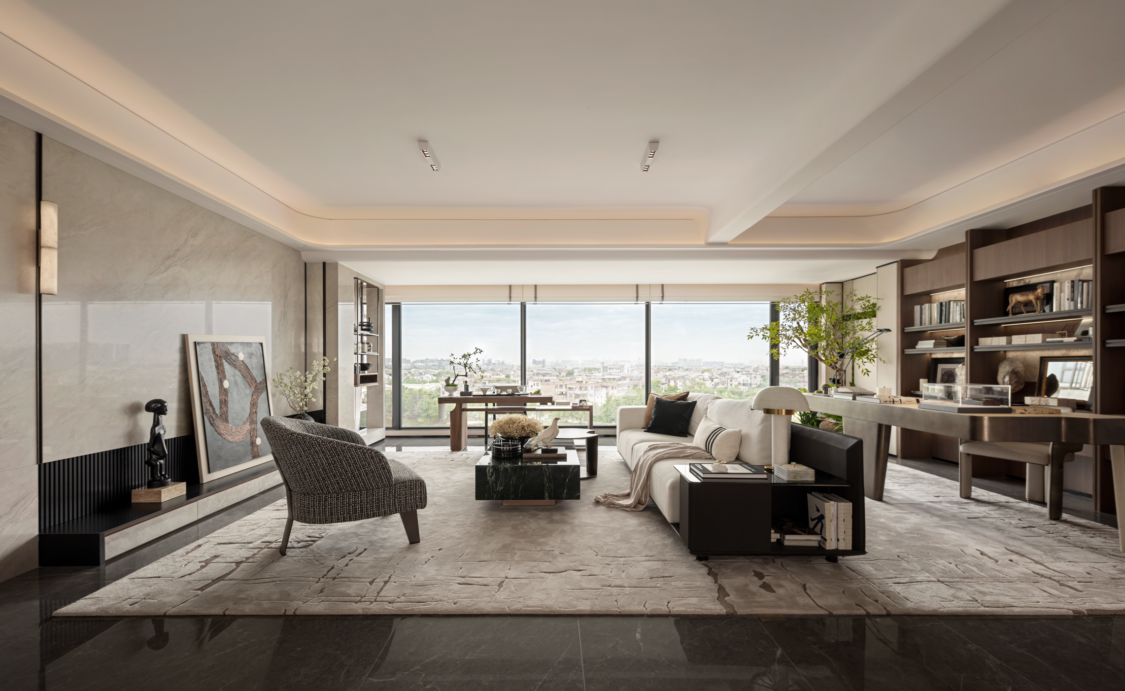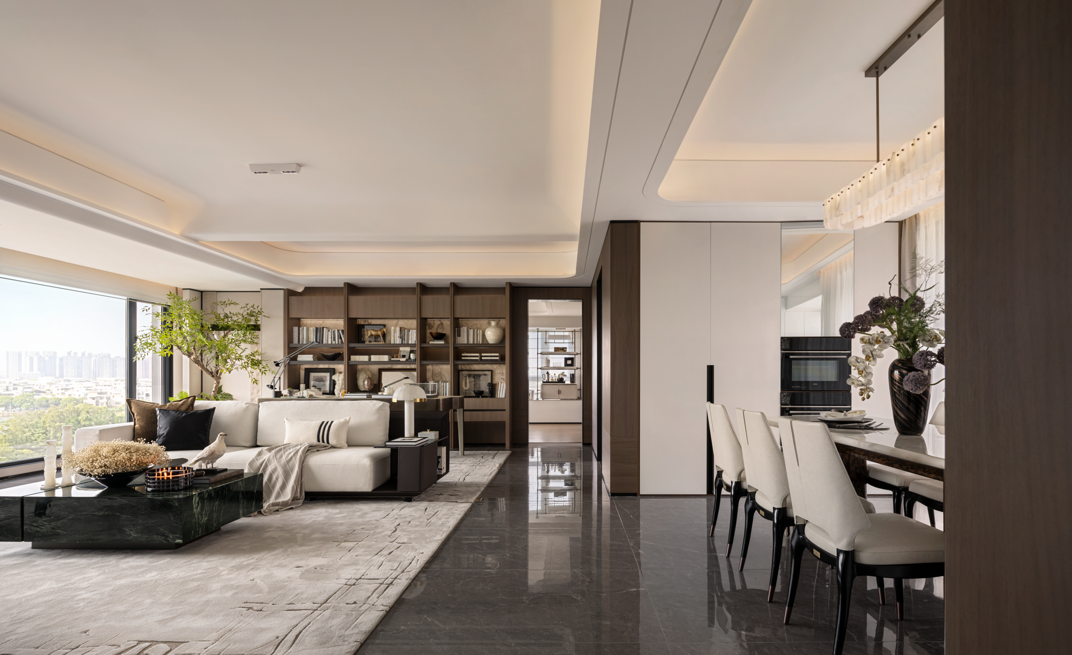 项目定位:接过这套143㎡样板间项目的全案设计时,我们思考的不仅仅是如何布局空间,更多的是如何让改善型置业者在这里体验到即将会发生的理想生活。