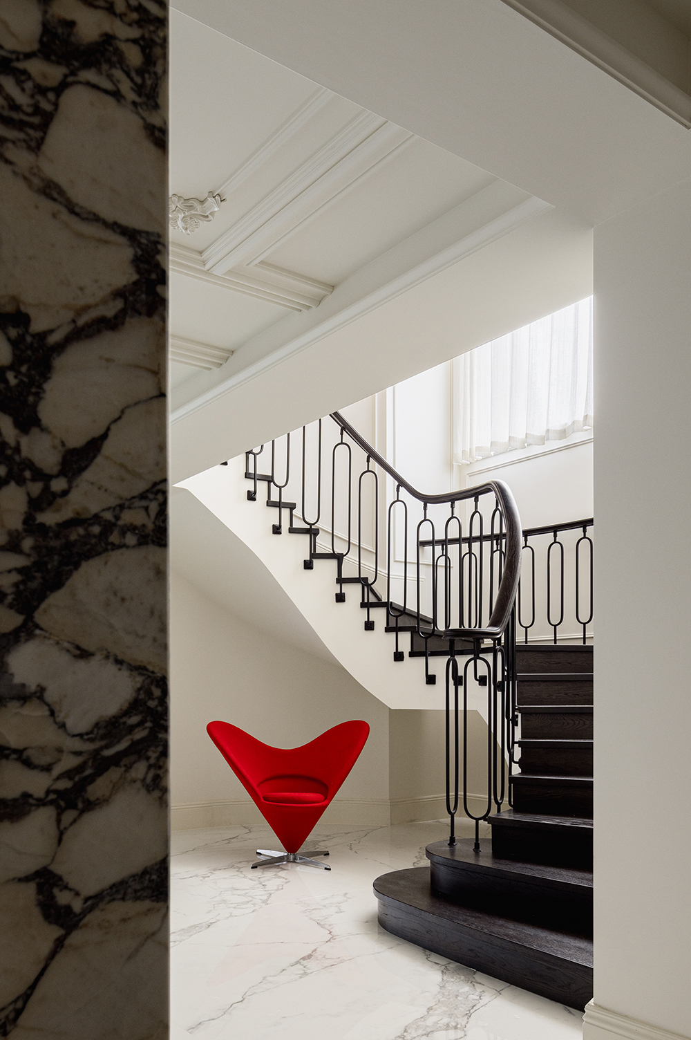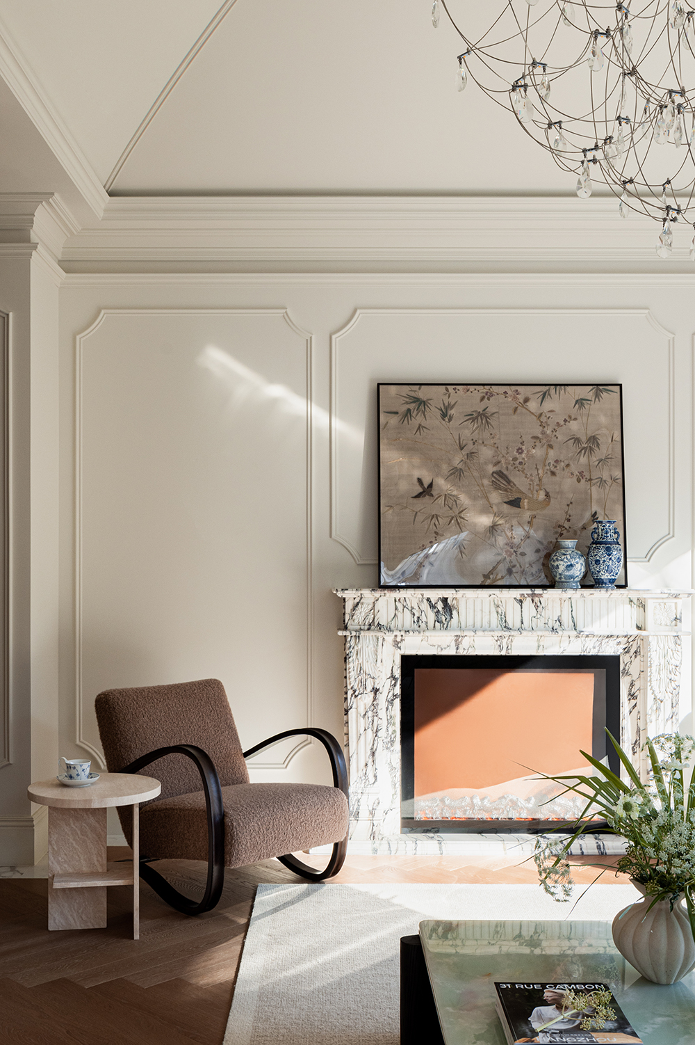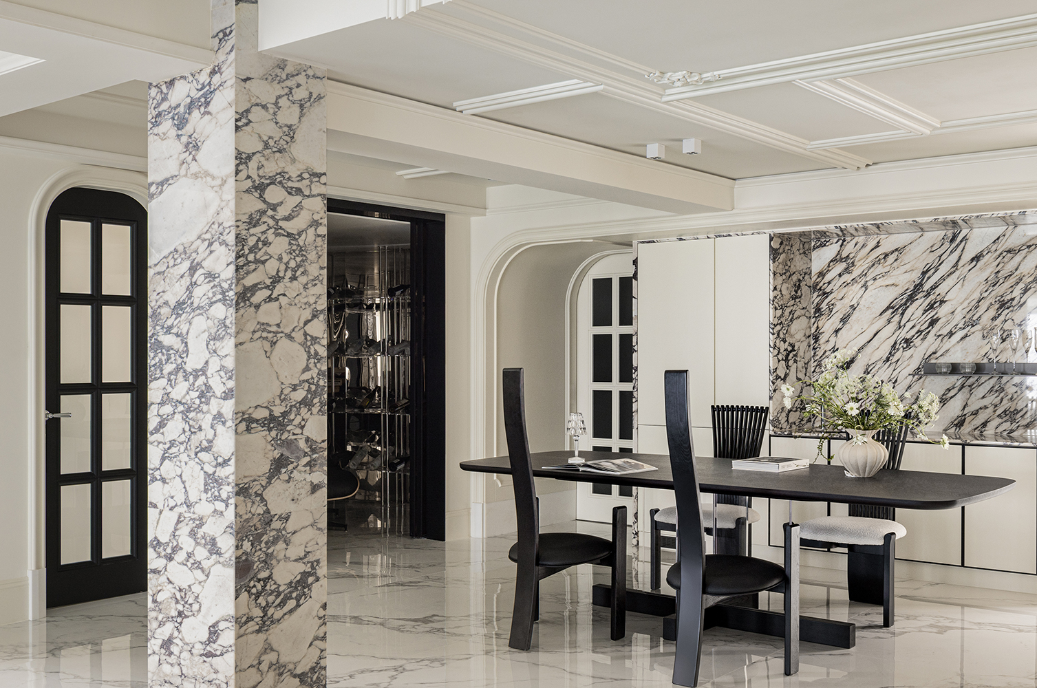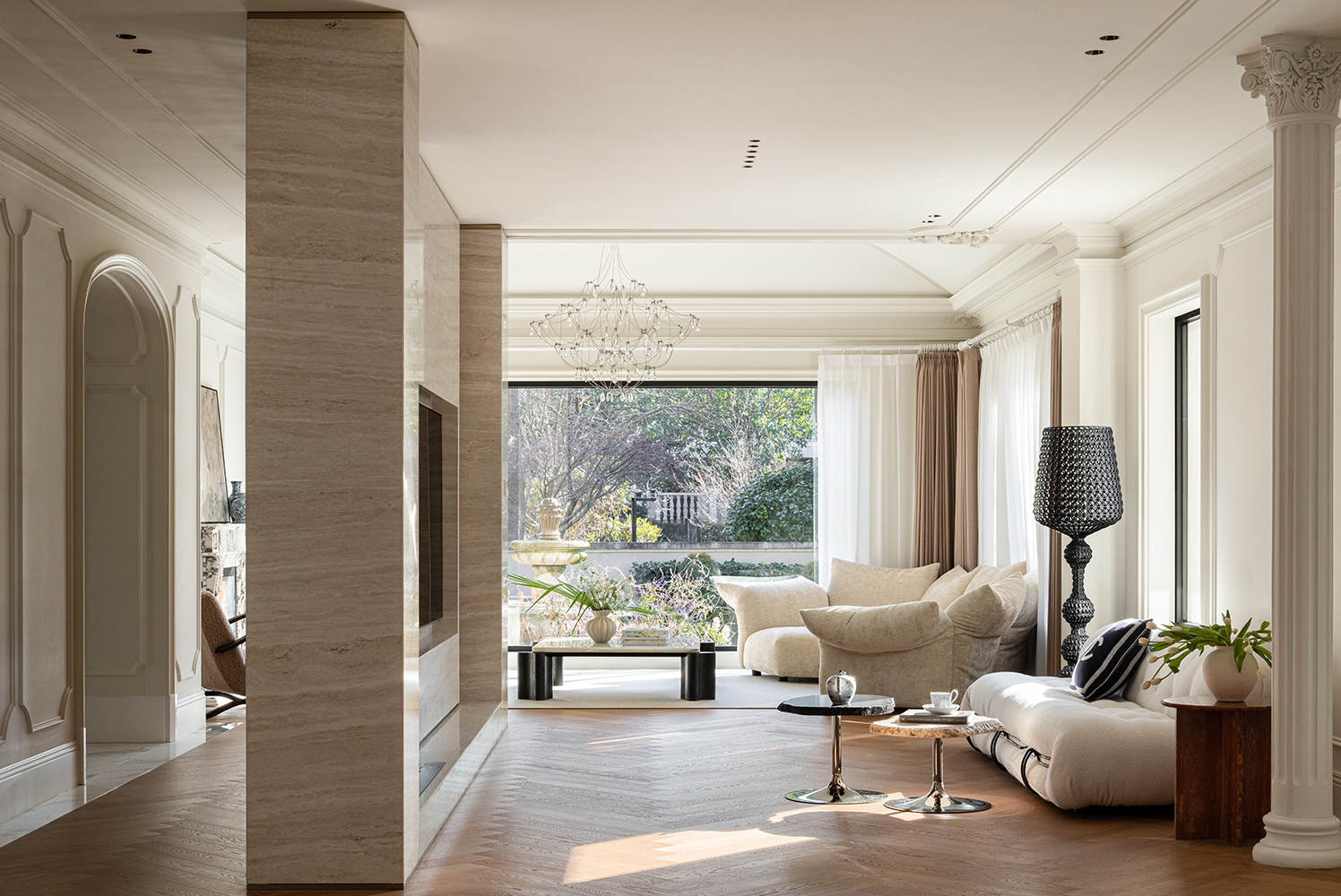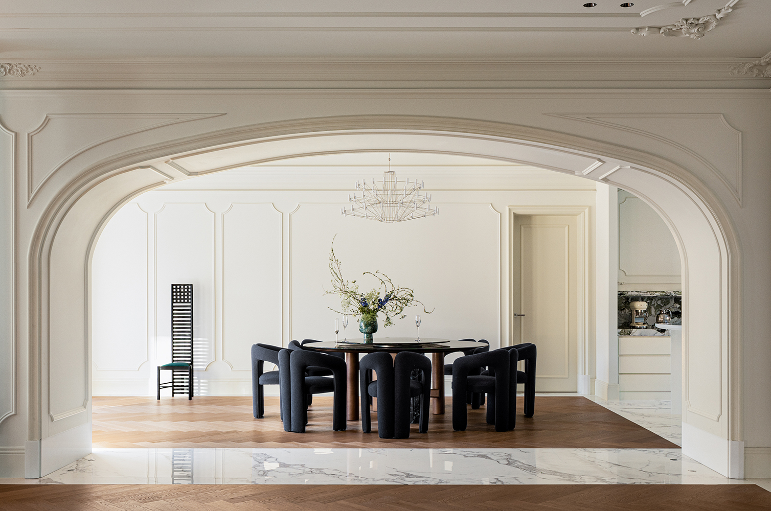 项目定位:本项目定位为一个融合法式优雅、现代简约与东方文化的私宅,旨在打造一个既具艺术气息又充满生活温度的居住空间。设计师不追逐时尚潮流,而是以时间为背景,塑造一个能够承载岁月与文化沉淀的经典家园。空间不仅仅是风格的展示,而是生活的容器,承载着不断生长的居住形态和优雅的生活节奏,使其成为一个历久弥新的心灵归宿。