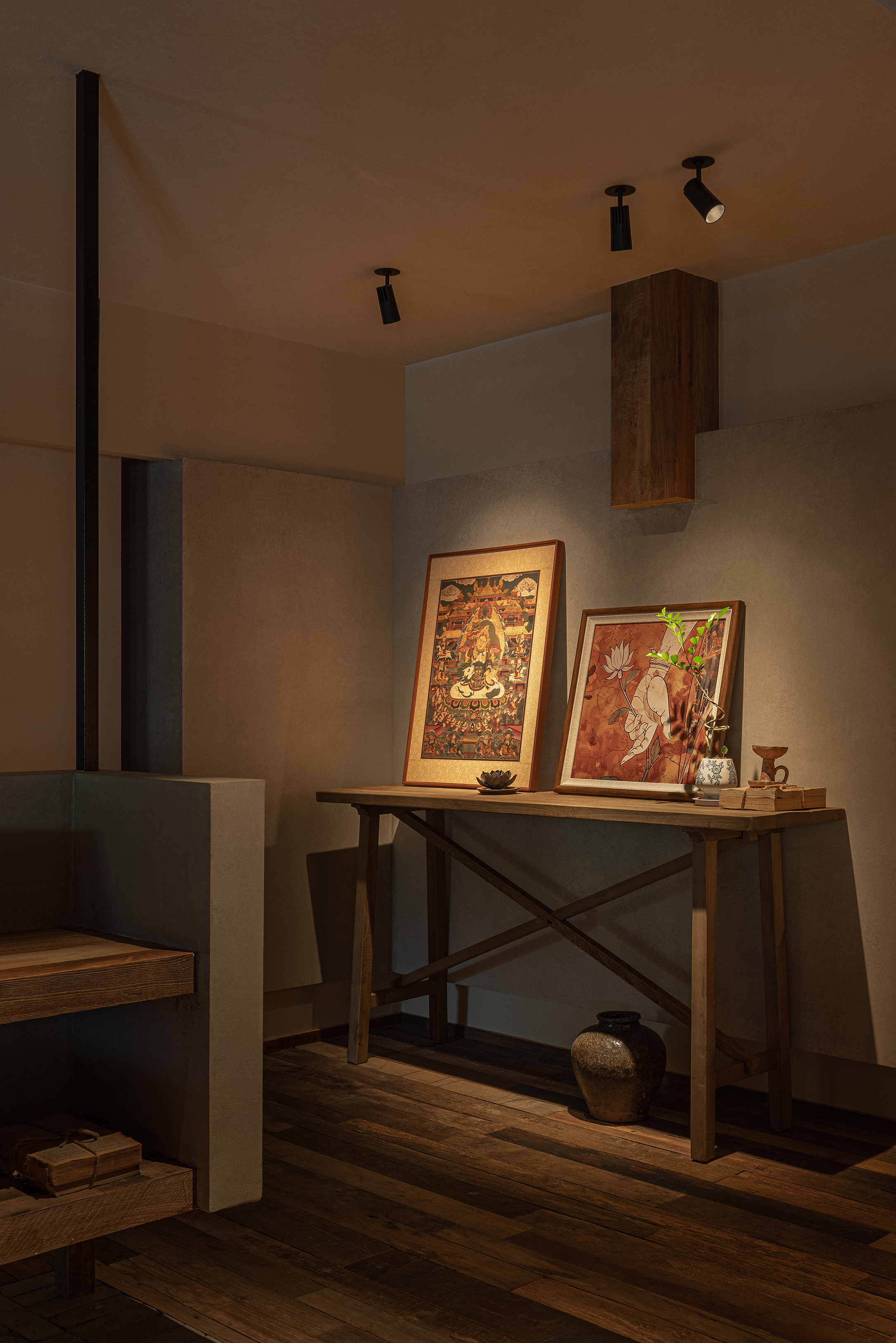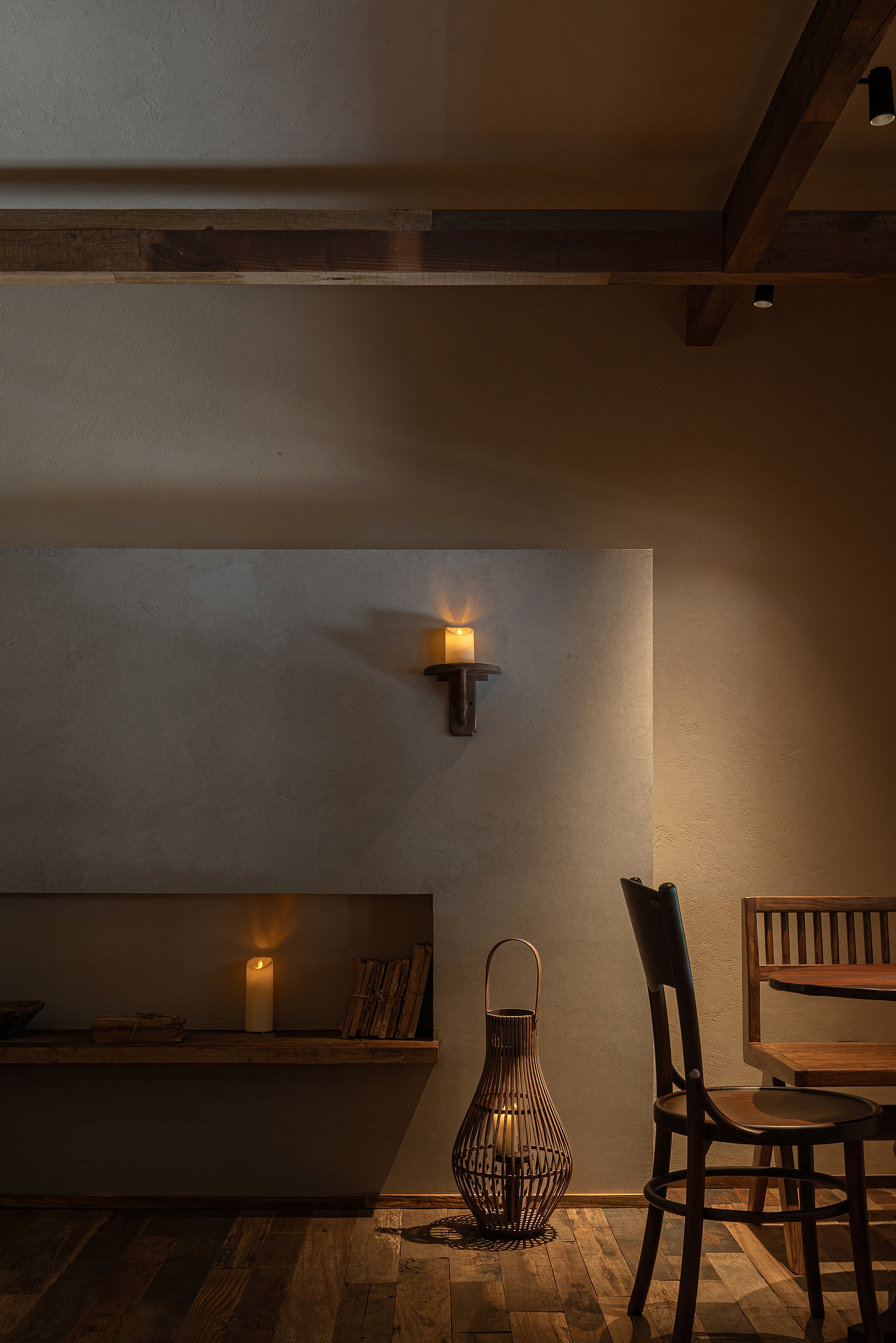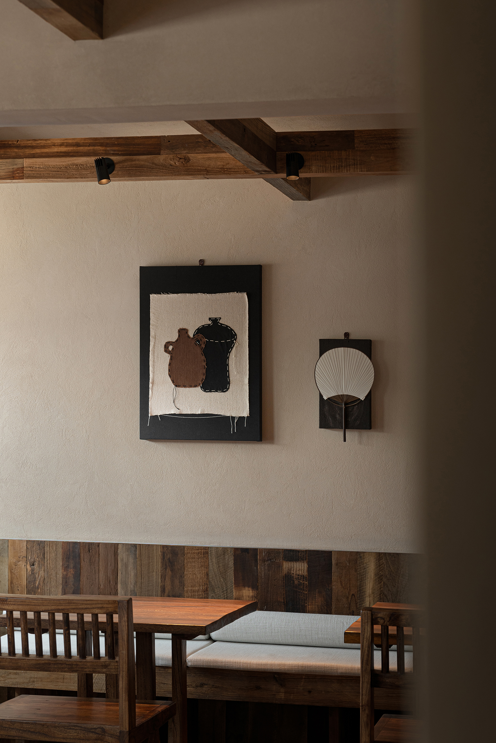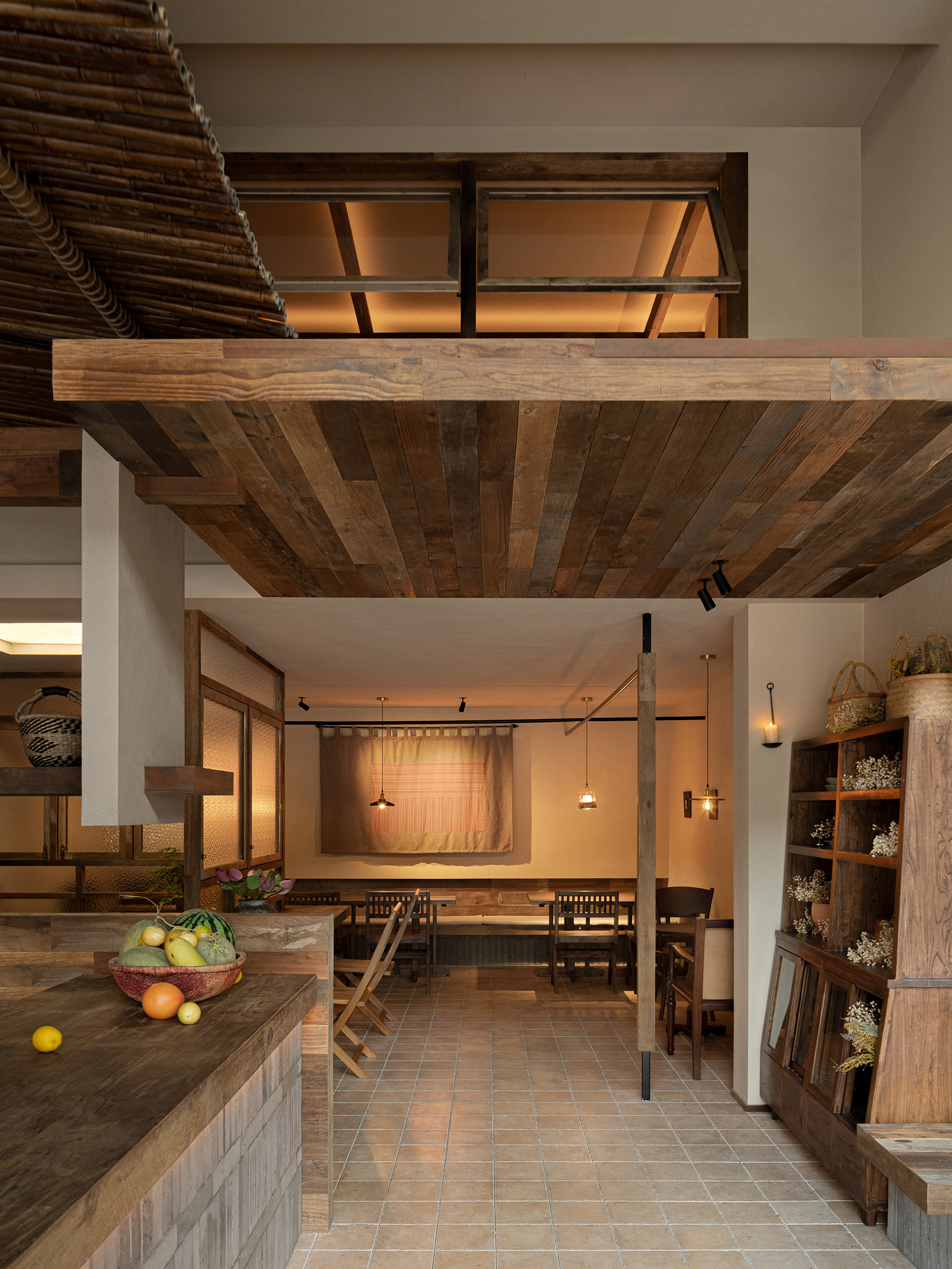 设计选材:设计选材上以老木、莱姆石、青砖、温润的艺术涂料为主,这些材料都是具有时光印记的材料,它们的质感天生能为人们带来一种亲切、温暖感,也为本案呈现出一种日常,轻声的心灵田园生活