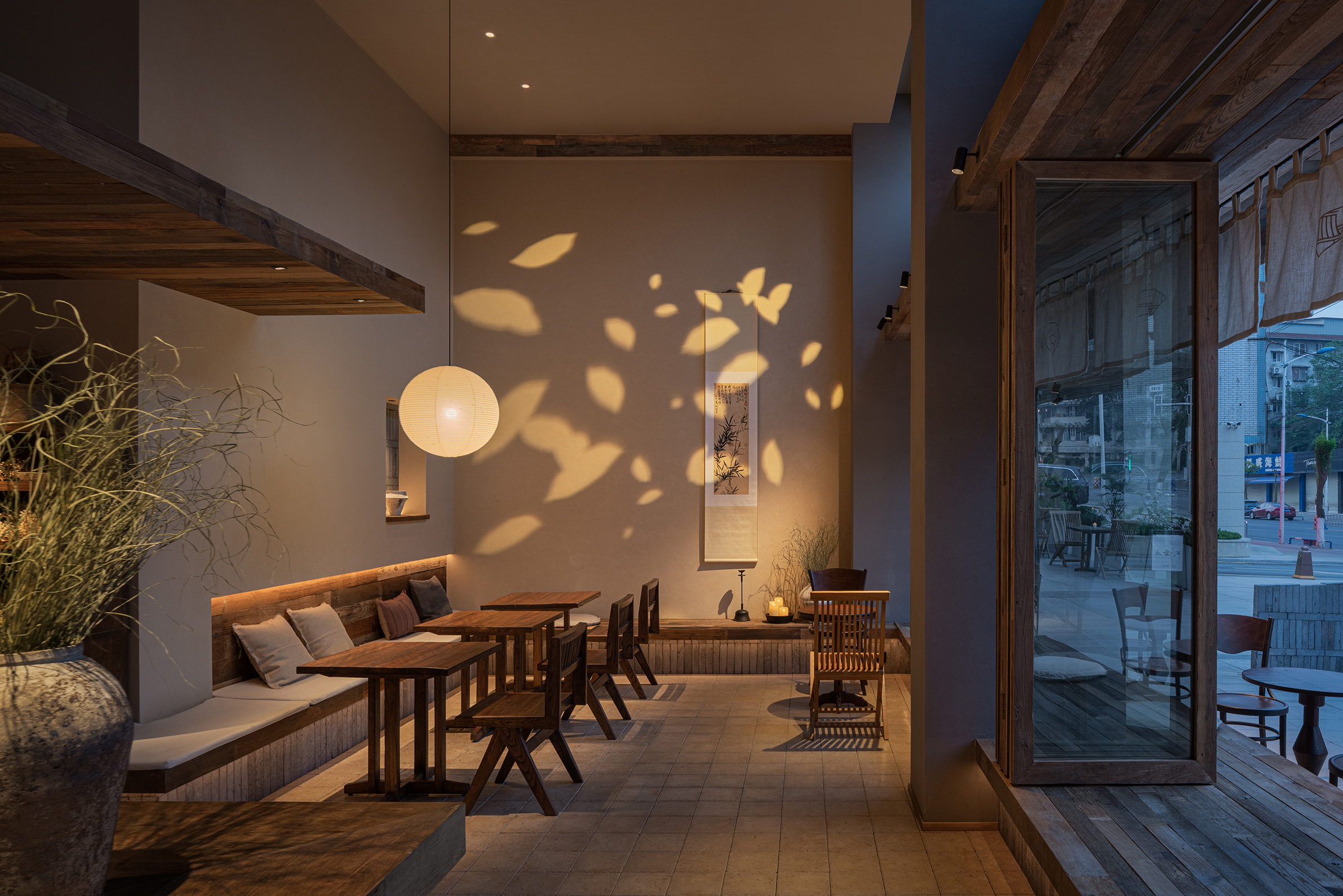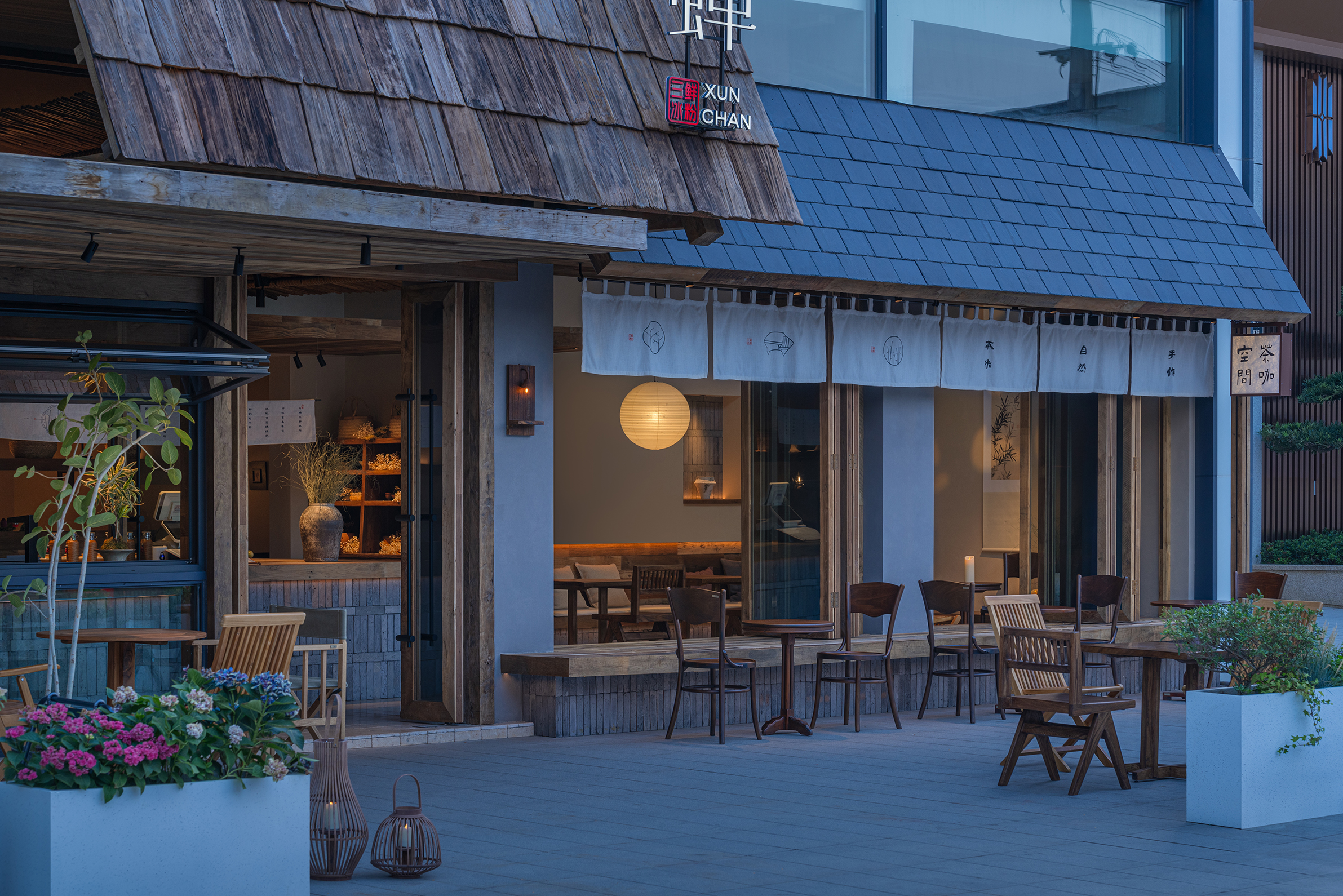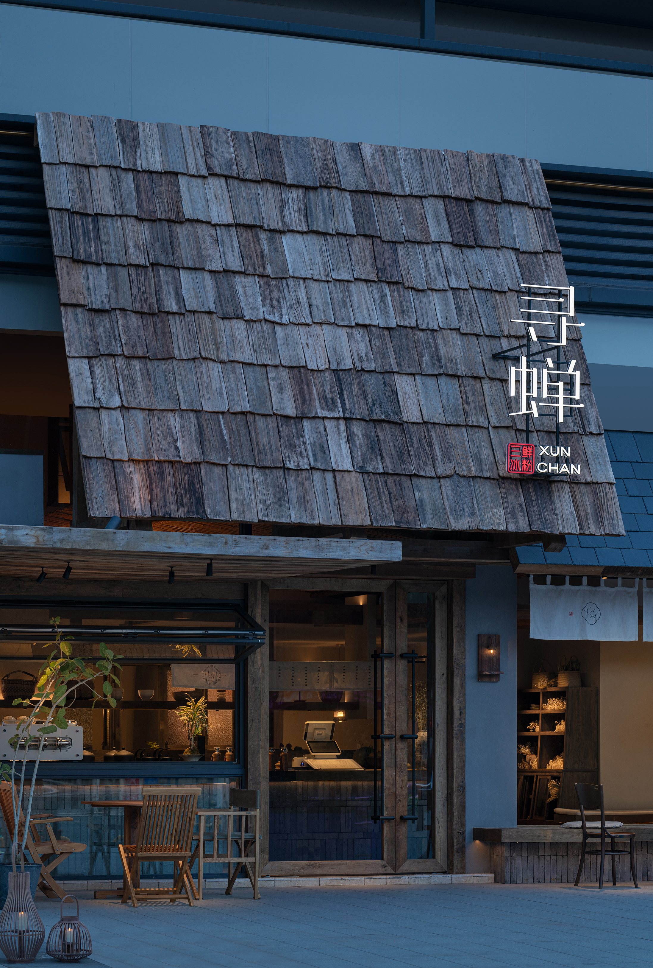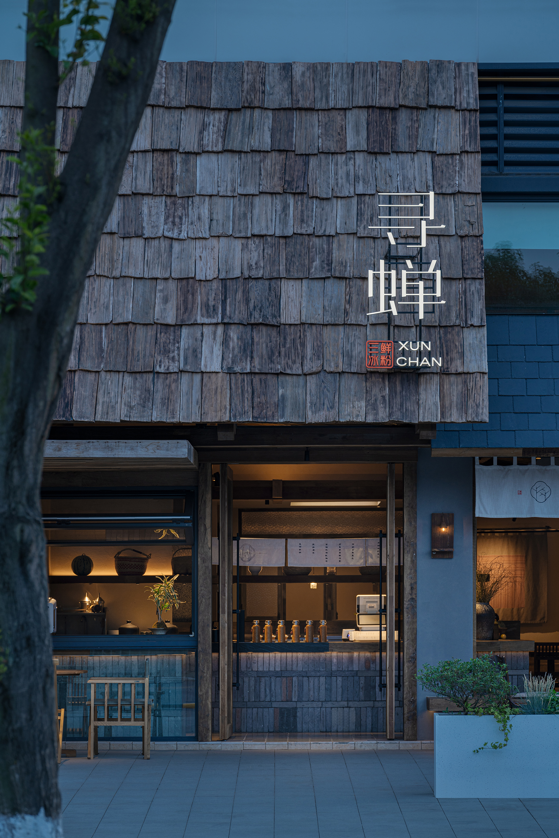 项目定位:本案以“社区客厅”定位来展开,借最东方的语言,为喧嚣的都市续写一首属于社区的清凉田园之诗。「寻蝉」是一家以清凉为主题的休闲甜食店,我们将老街的盛夏,蝉鸣,竹影等元素融合,用现代亲切的设计语言转译成具有东方田园美的特色空间。三邻四友、一碗糖水、一本好书、一个可以倚靠的角落——这些简单却日常的设置,以「寻蝉」为载体,实现对社区生活的滋养。