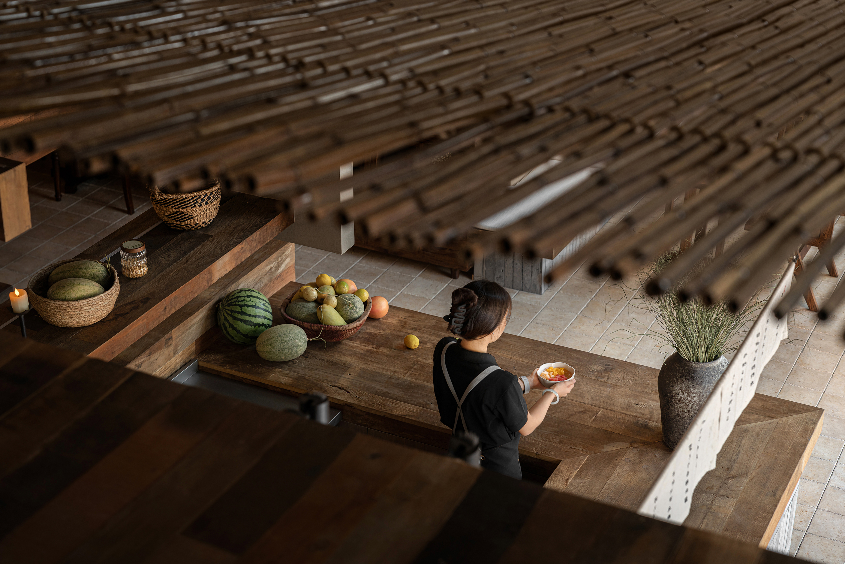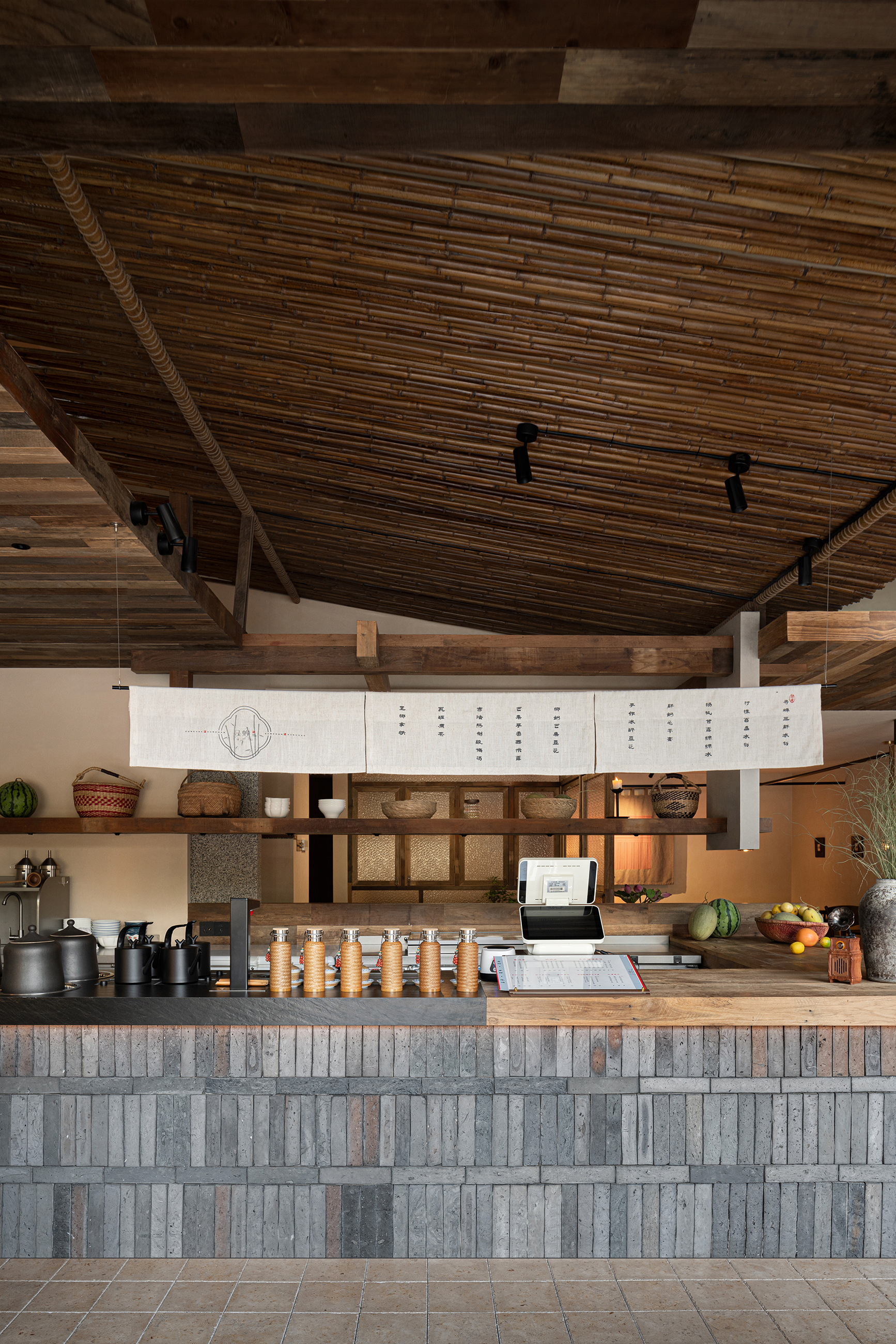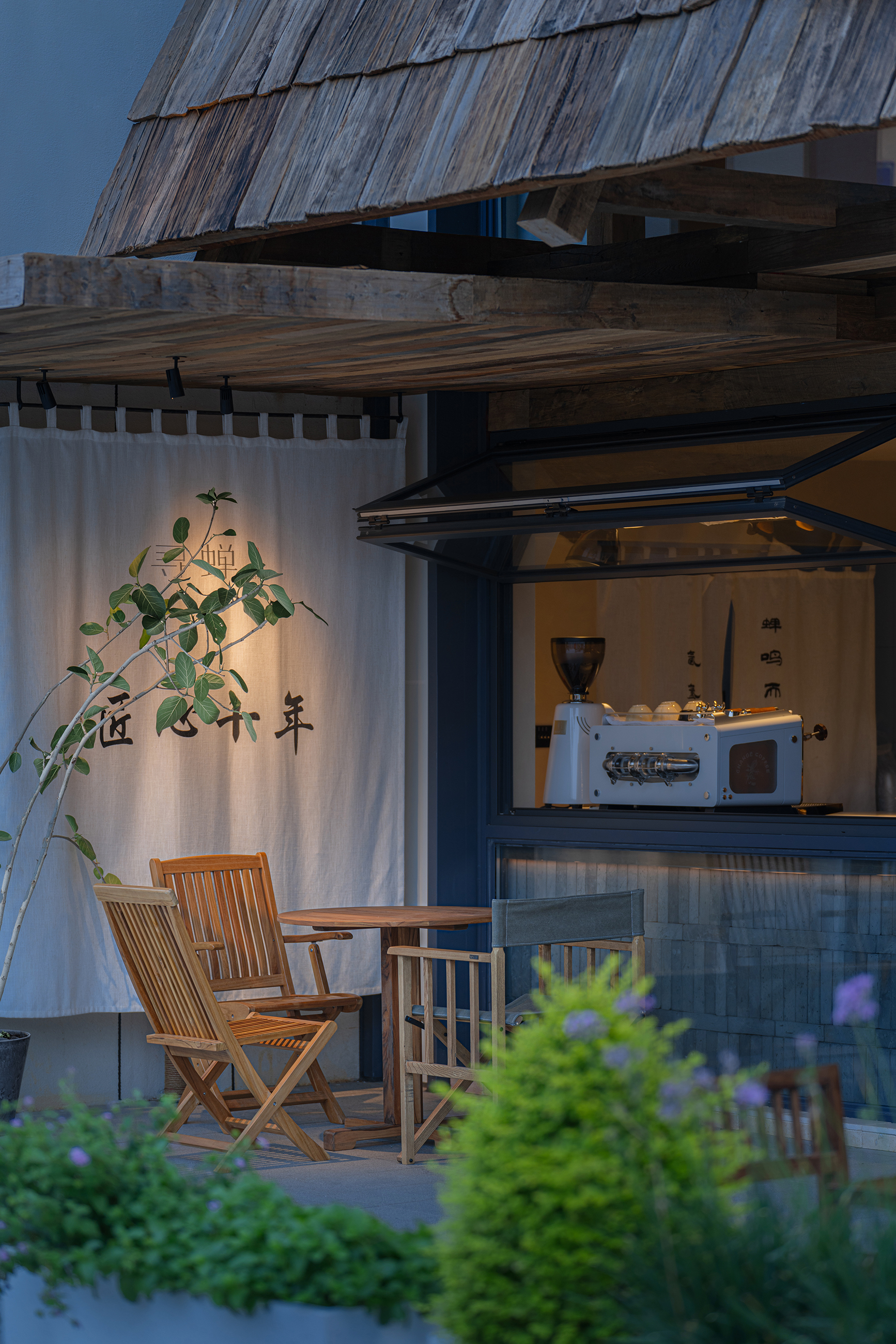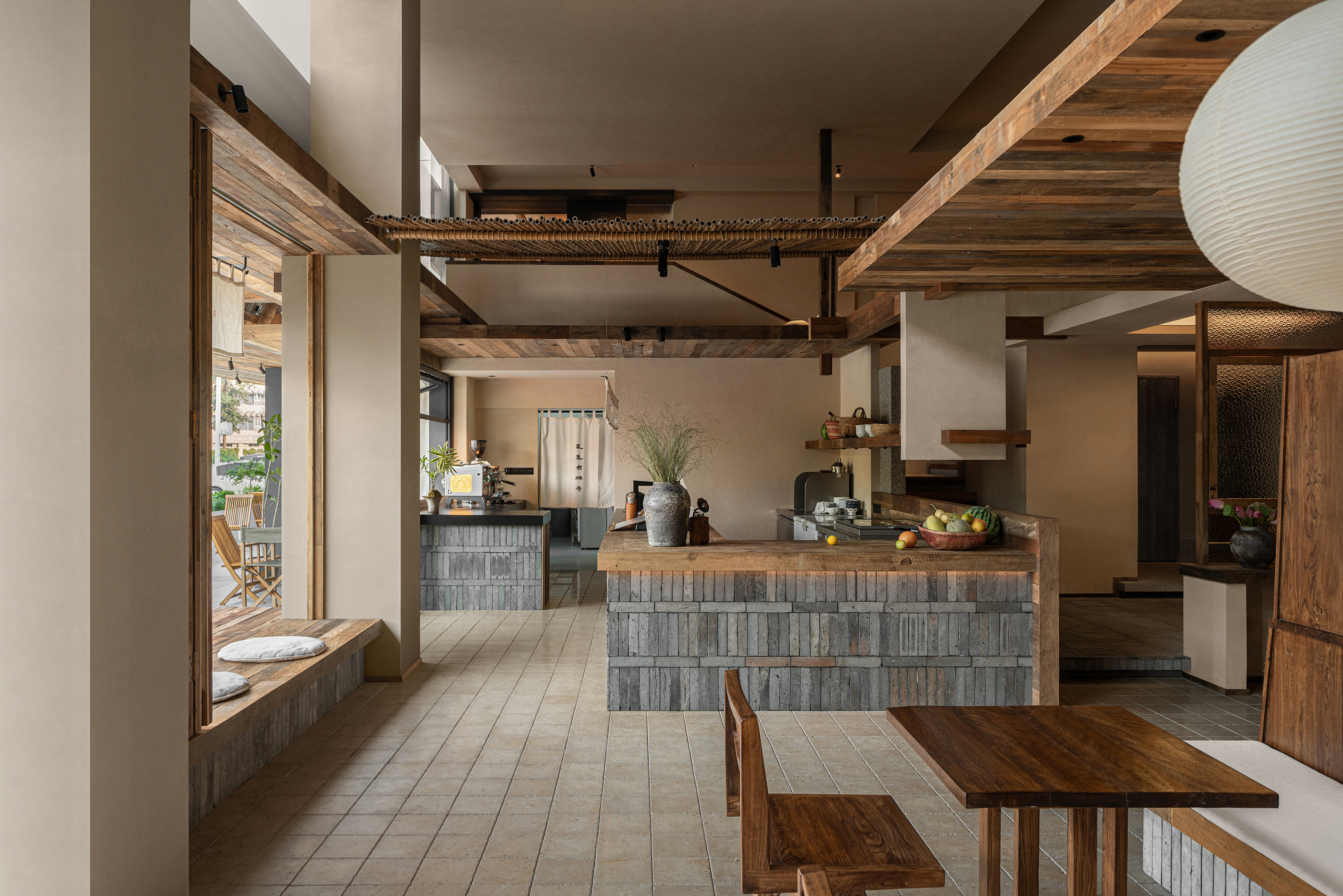 项目定位:本案以“社区客厅”定位来展开,借最东方的语言,为喧嚣的都市续写一首属于社区的清凉田园之诗。「寻蝉」是一家以清凉为主题的休闲甜食店,我们将老街的盛夏,蝉鸣,竹影等元素融合,用现代亲切的设计语言转译成具有东方田园美的特色空间。三邻四友、一碗糖水、一本好书、一个可以倚靠的角落——这些简单却日常的设置,以「寻蝉」为载体,实现对社区生活的滋养。