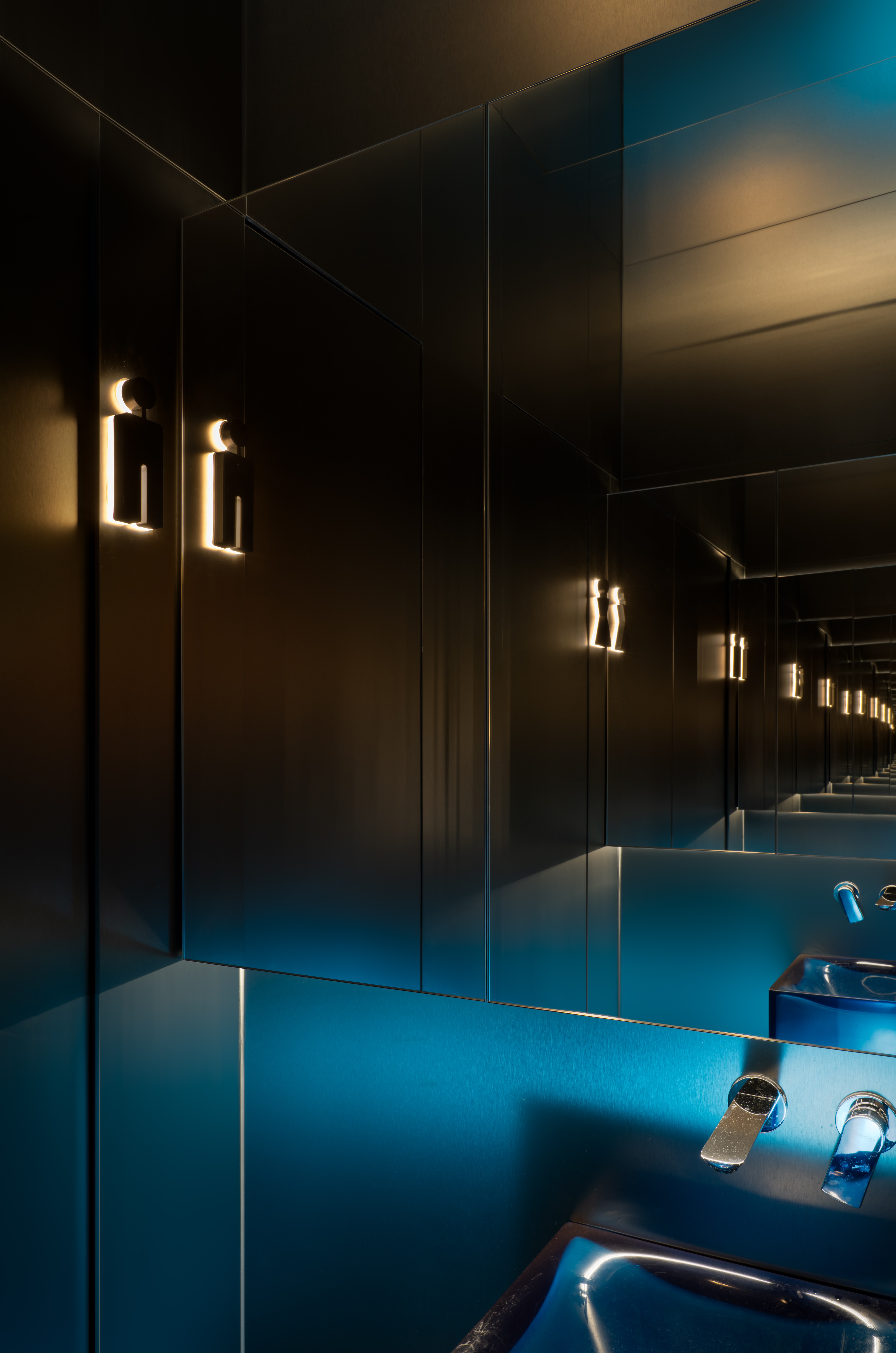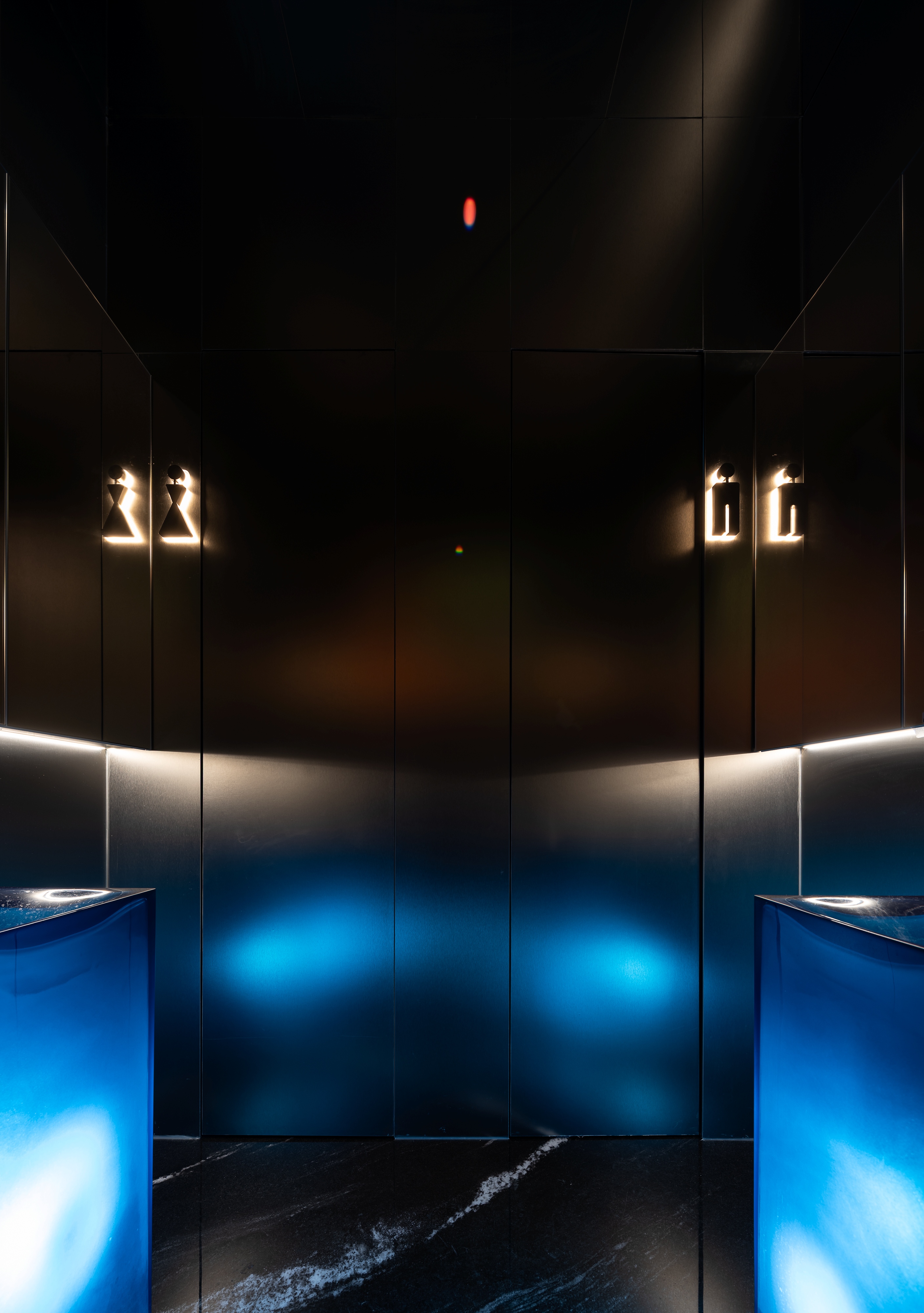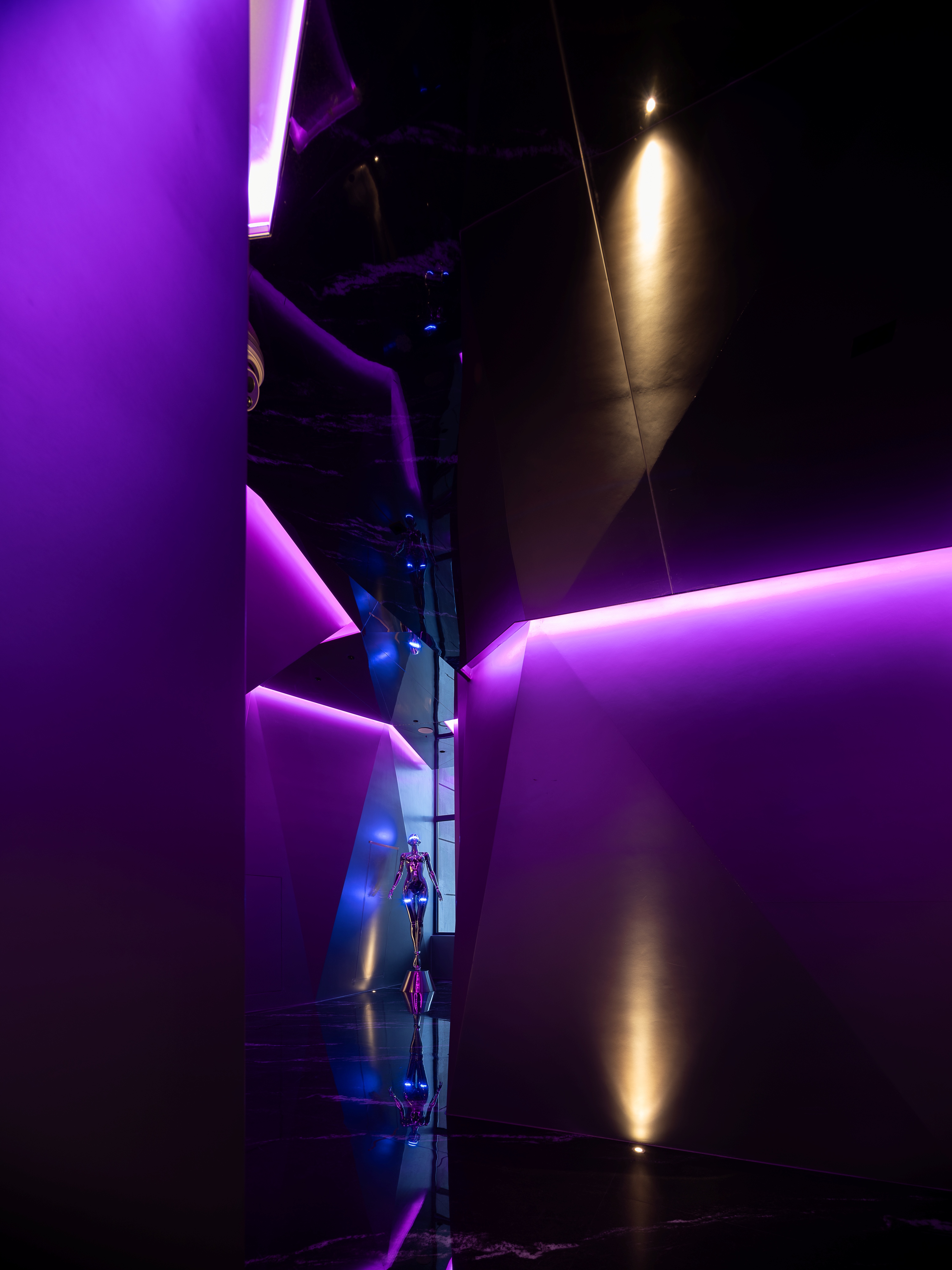 设计选材:通过使用镜面和不锈钢等现代材料,扩大空间感,营造出无限延伸的视觉效果,保持空间的交融与连续性,创造出自由“无界”的氛围。