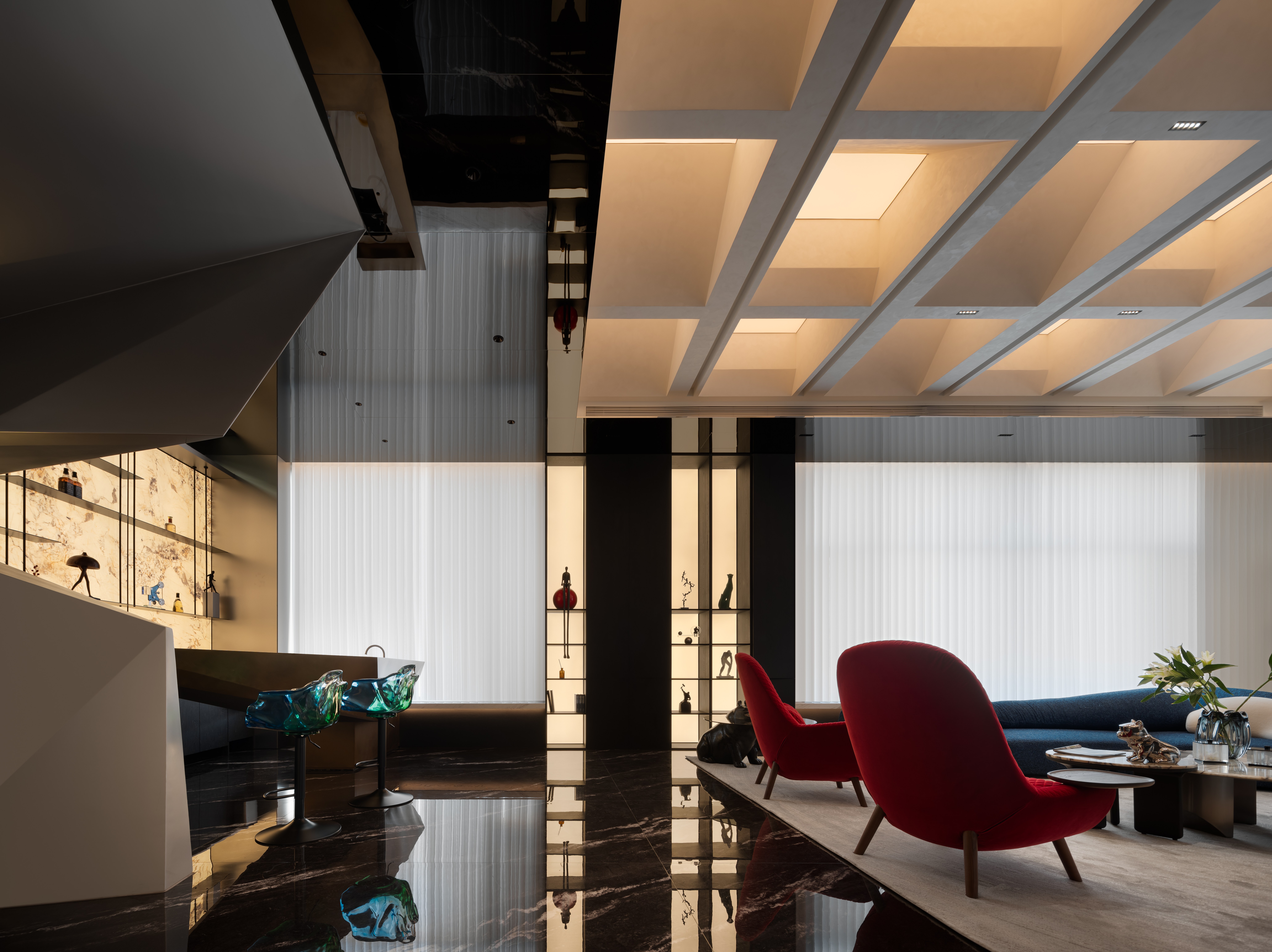 空间意境:在整体规划中,设计师以电影《盗梦空间》的灵感启示,采用独特的空间设计手法和多种材质,将私密与公共空间、不同氛围完美融合,展现出卓越的凝聚力和设计感。