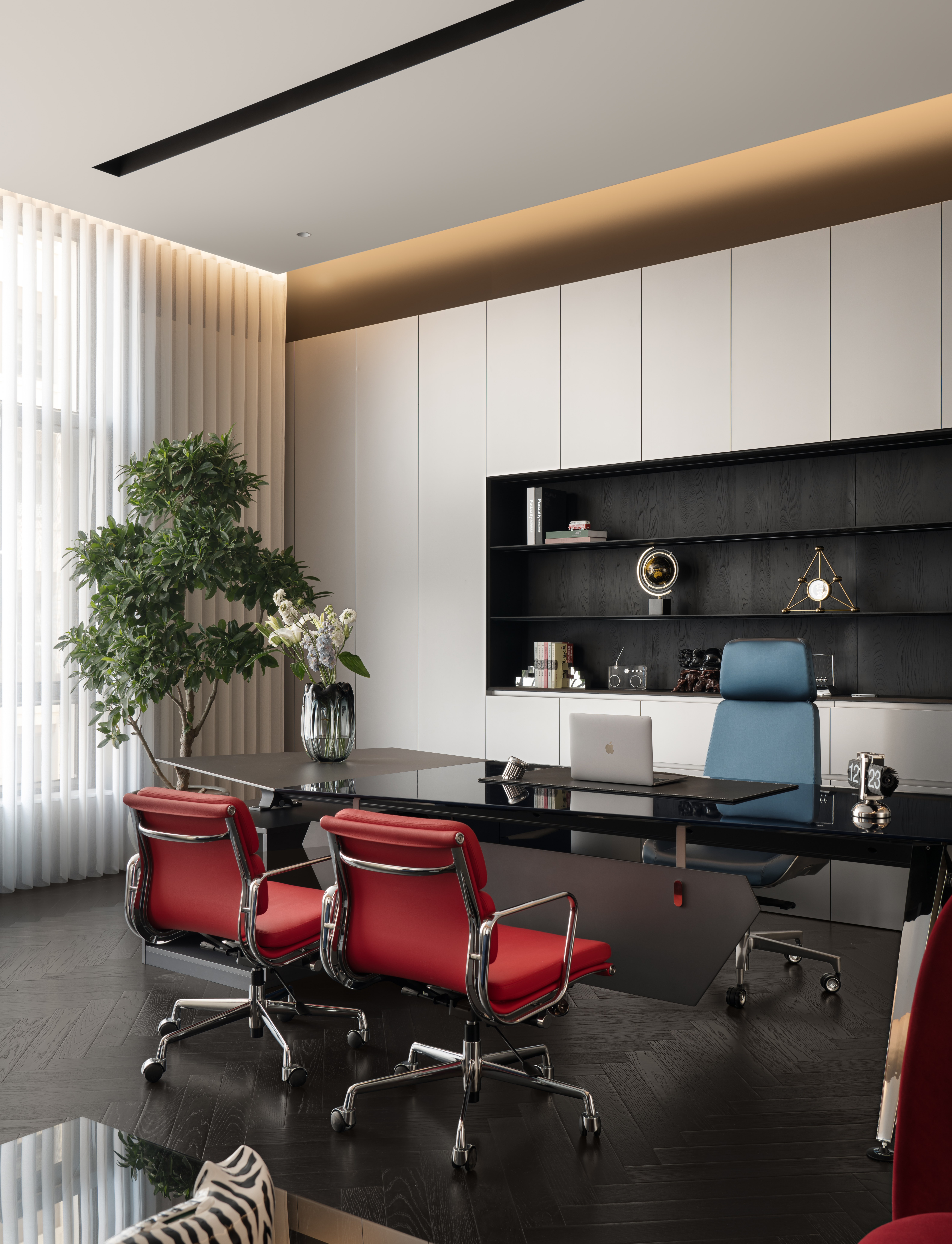 空间布局:设计师在规划时,不仅考虑了空间的比例和视野,更注重通过独特的解构和重构方式,营造出一个既有家的温馨又不失工作氛围的独特空间。整个空间的光线充足,每个区域都享有自然采光,在视觉上营造出一种宽敞、明亮的感觉。会客空间视野开阔,能够满足不同客户的会客需求。设计师还考虑到了空间的多功能性,使其既可用于正式商务会晤,也可作为休闲交流的理想场所。从细节到整体,每一处设计都旨在为用户提供舒适、自然、充满活力的环境,让工作与生活在此和谐共存。