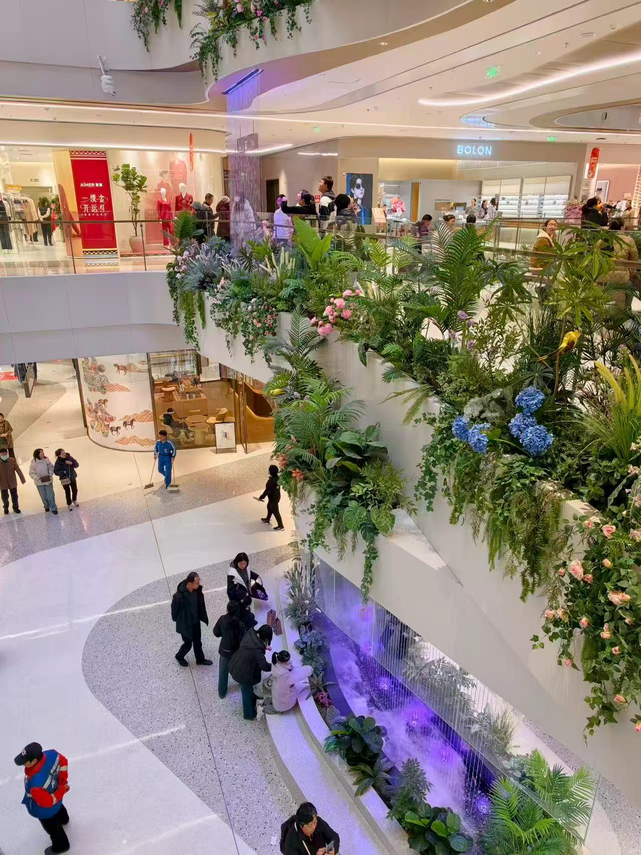 空间体验上,垂直分层的自然与冰系主题元素营造独特沉浸感,动线流畅且节点设计富有探索感,让购物过程兼具观赏性与趣味性。