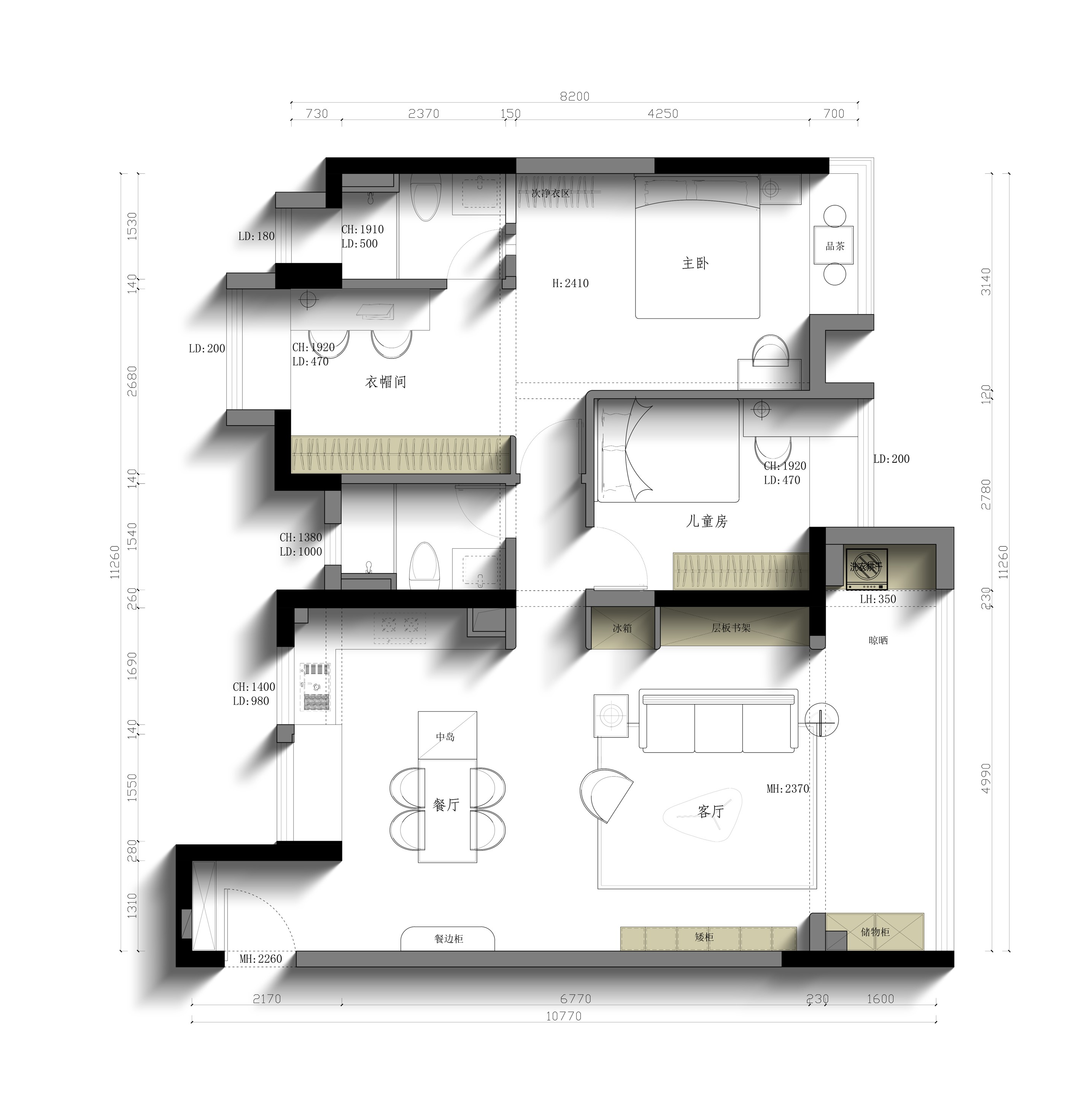 项目定位:整体定位自然侘寂,没有追求极致的“空”与“寂”的诧寂设计,因为我们所有的设计都遵循形式追随功能的逻辑。
