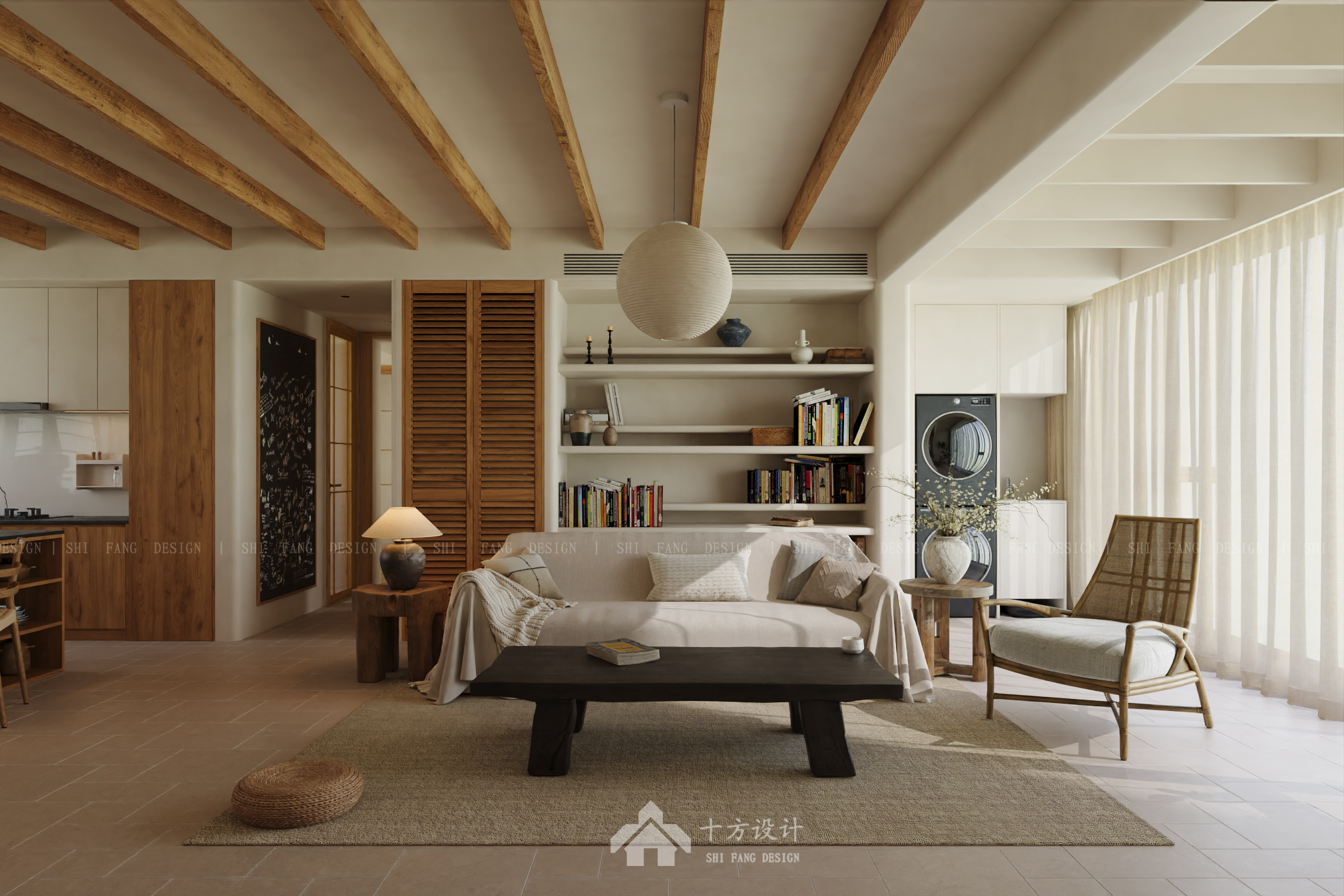 设计选材:自然主义侘寂风在低碳与经济性层面的创新点,在于以“原生肌理复用+本土废料再生+极简施工”替代高价定制材料与复杂工艺,用低成本低损耗的方式还原自然质朴的空间质感。它摒弃昂贵的进口微水泥、实木大板,转而选用本地河滩石、废弃陶土砖、回收老木料等低成本材料,经简单打磨清洁后直接用于墙面铺贴或地面找平,利用材料原生的斑驳纹理契合侘寂美学;墙面不做精细找平与多层刷漆,采用稻草漆、硅藻土等平价环保材料薄涂,既省工省料又减少化工污染,其粗糙肌理还能强化自然氛围感;软装层面优先用枯枝、干草、粗陶残次品等低成本自然物件做装饰,或用旧棉麻布料改造抱枕、窗帘,省去购买高价软装的开支;施工上遵循“少改动、不修饰”原则,保留建筑原始的梁柱、墙面瑕疵,避免大规模拆改产生的废料与碳排放,真正实现环保与经济的双向契合。