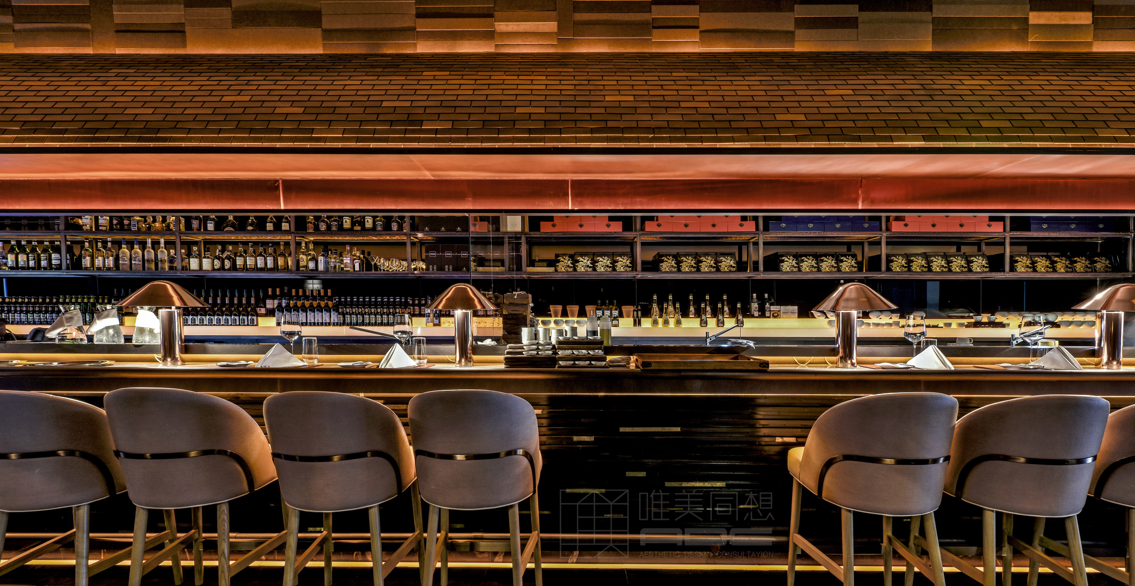 空间布局:个性的长长的“大吧台”,灰色的块块墙面,仿佛是昔日京城城墙上的灰砖,而朱红的折门又怎能不想起走入京城时的大门。