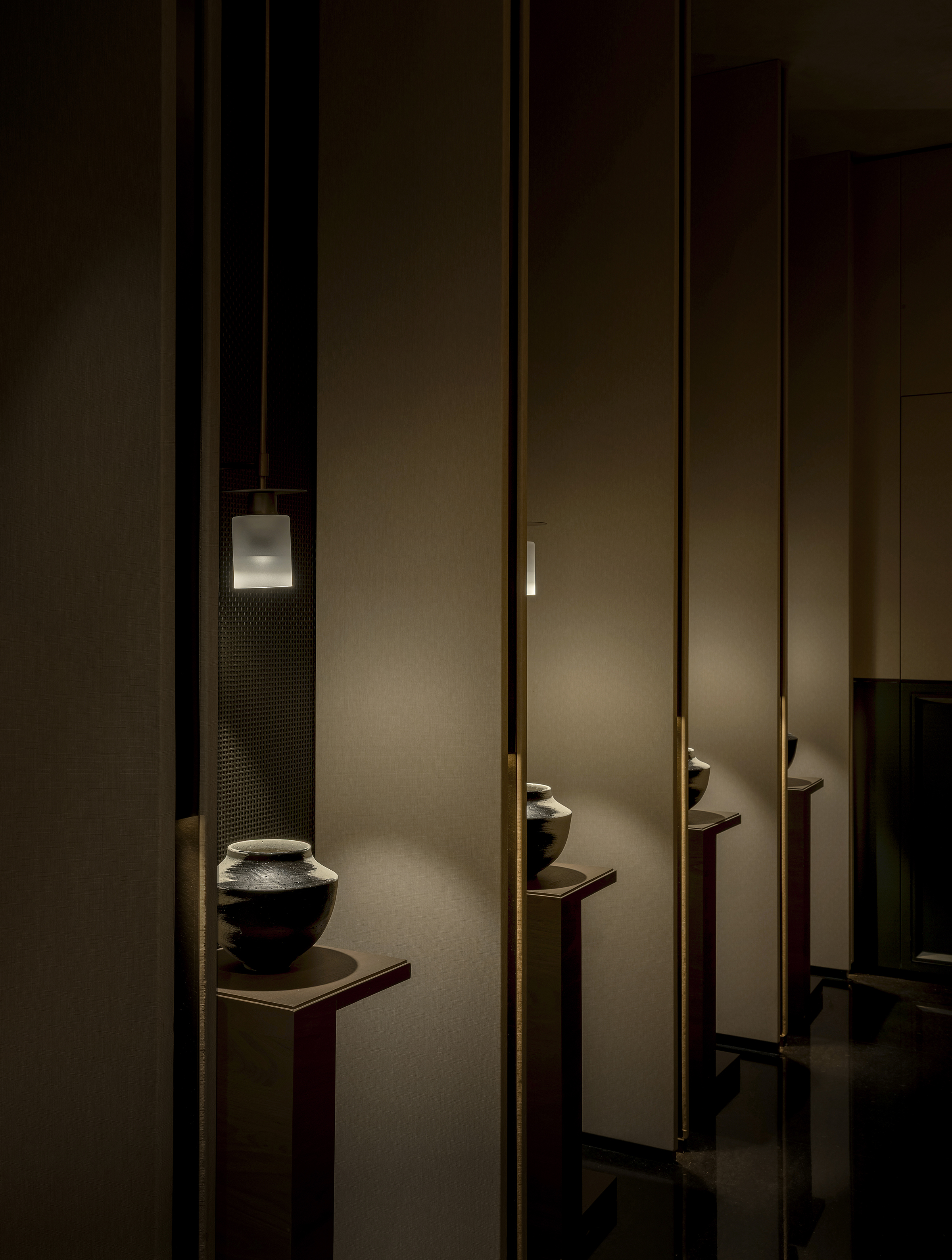 项目定位:本项目以“时空对话”为核心设计策划理念,将现代艺术表达与东方传统美学进行当代表达与重构,打造一个兼具文化厚度与视觉张力的高端餐饮空间。设计并非对传统形式的简单复刻,而是通过解构东方建筑语汇、提炼自然与人文意象,在当代材料与工艺的支持下,构建一个融合宴饮、社交与文化体验的沉浸式空间,使餐厅成为承载品牌精神与东方生活美学的重要载体。