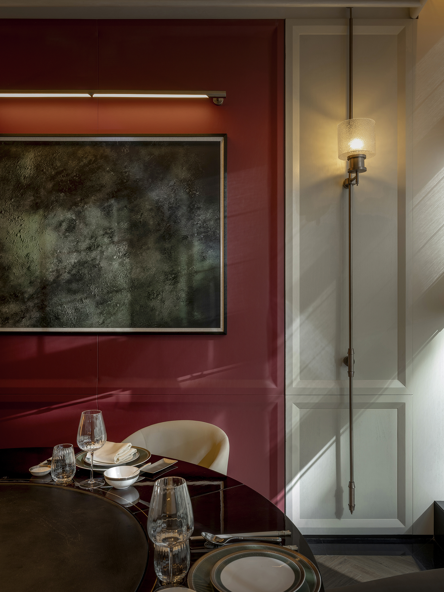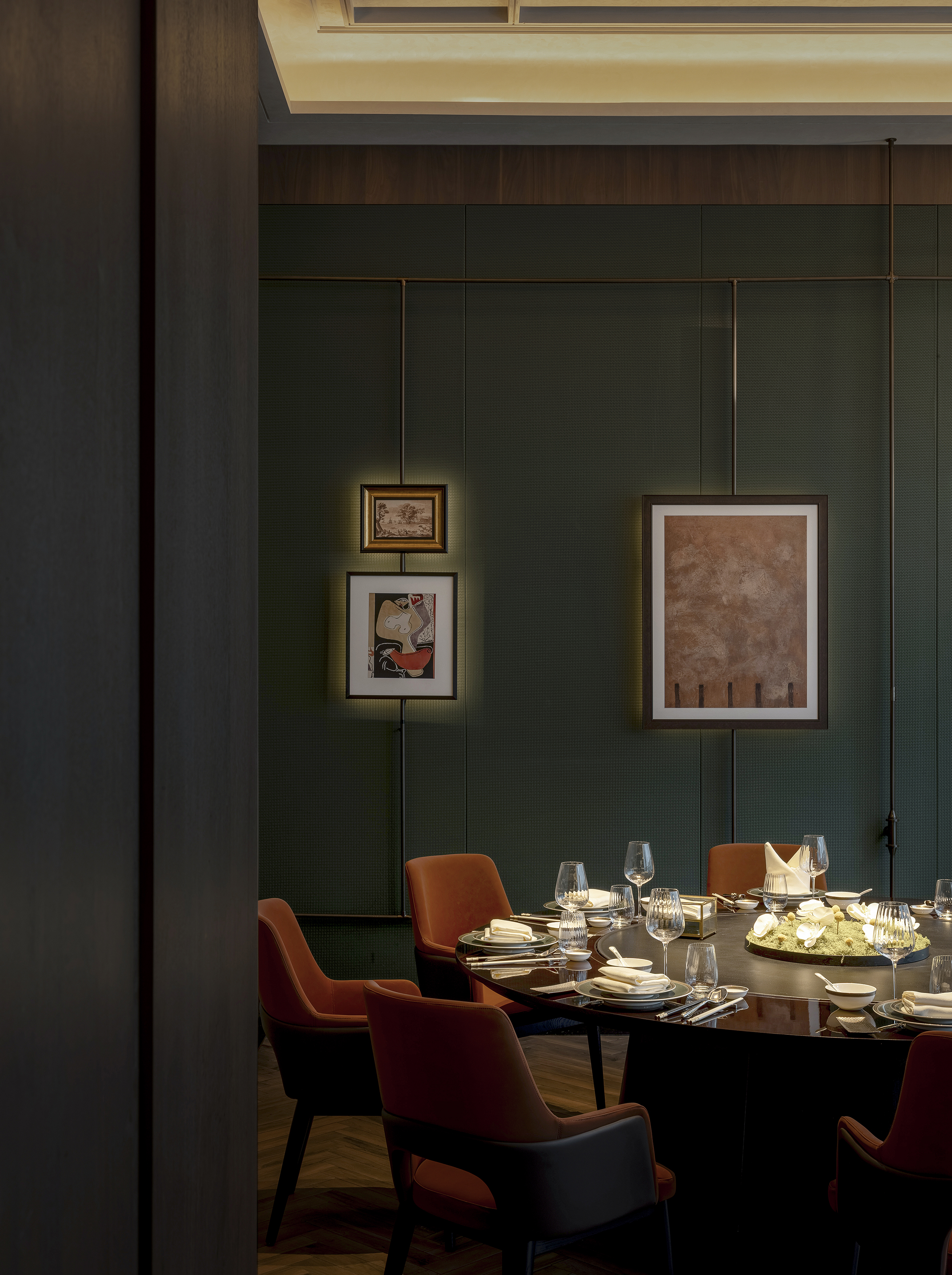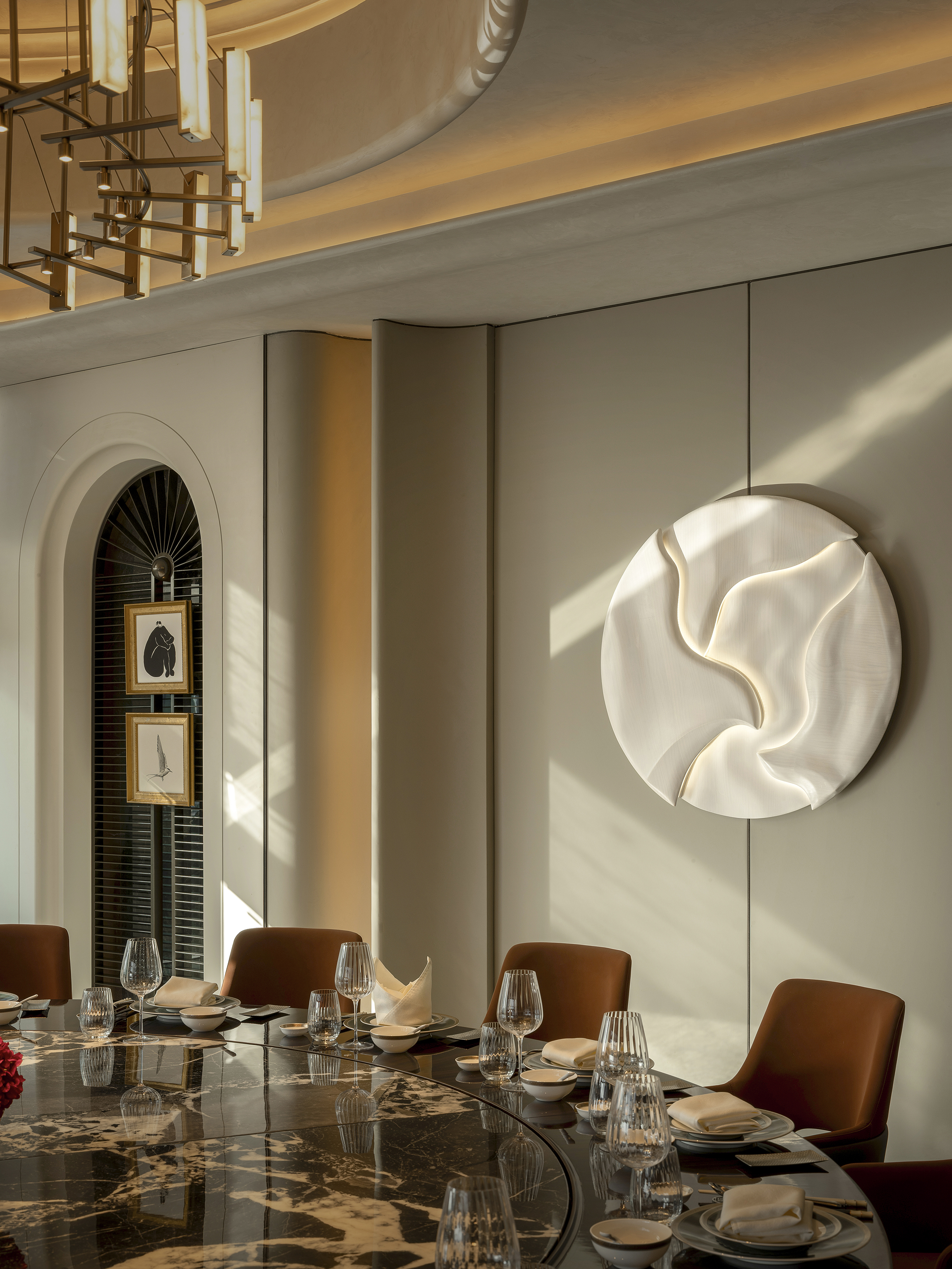 用户体验:空间投入使用后,为宾客带来强烈而完整的沉浸式体验。入口即形成鲜明记忆点,强化品牌识别度;内部空间在光影、材质与尺度的变化中营造出安静而尊贵的宴饮氛围。宾客在用餐过程中既能感受到东方文化的含蓄与礼序,又能体验现代空间的舒适与开放,整体被评价为“具有文化深度、仪式感强、适合重要宴请与社交活动的高品质餐饮空间”。