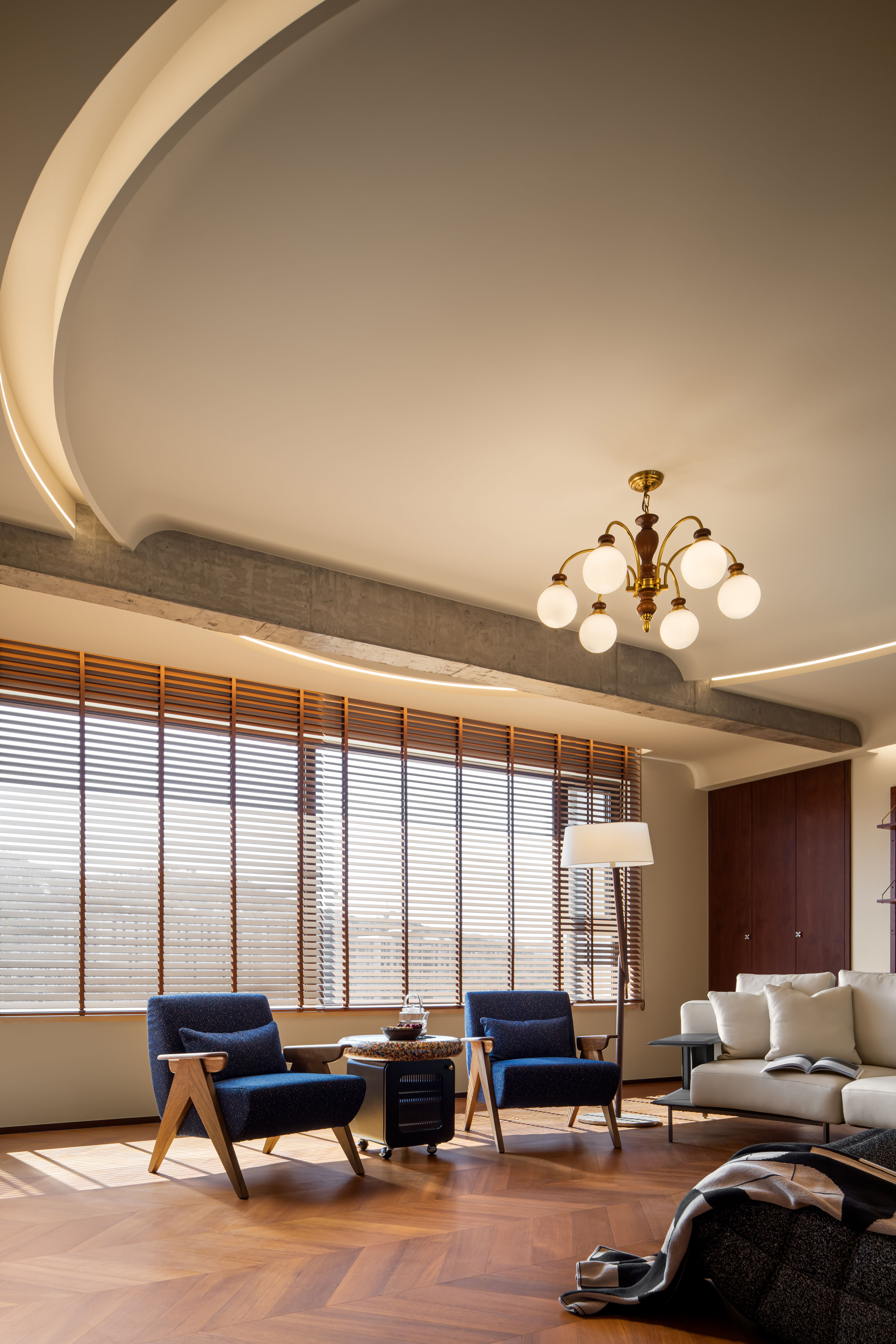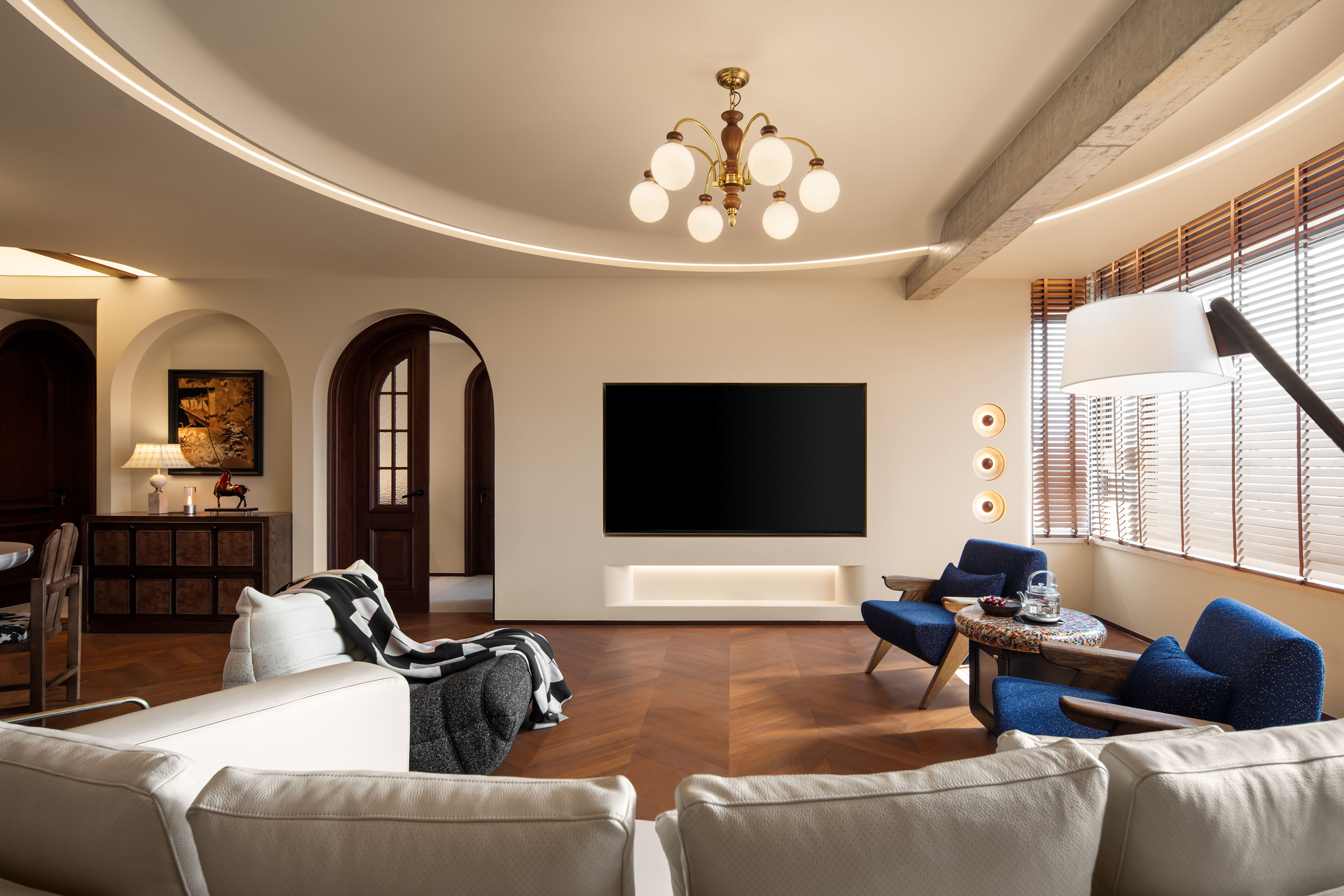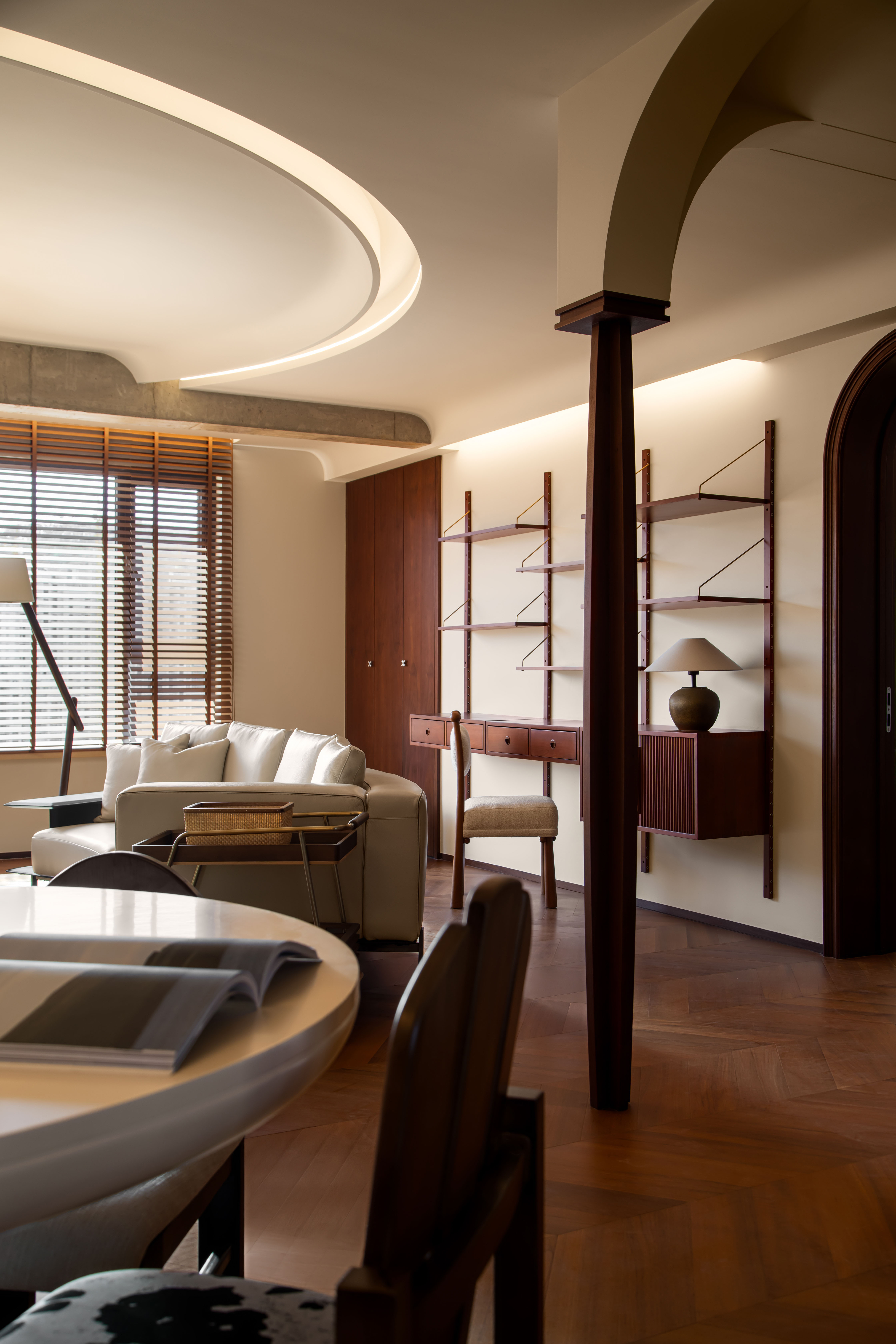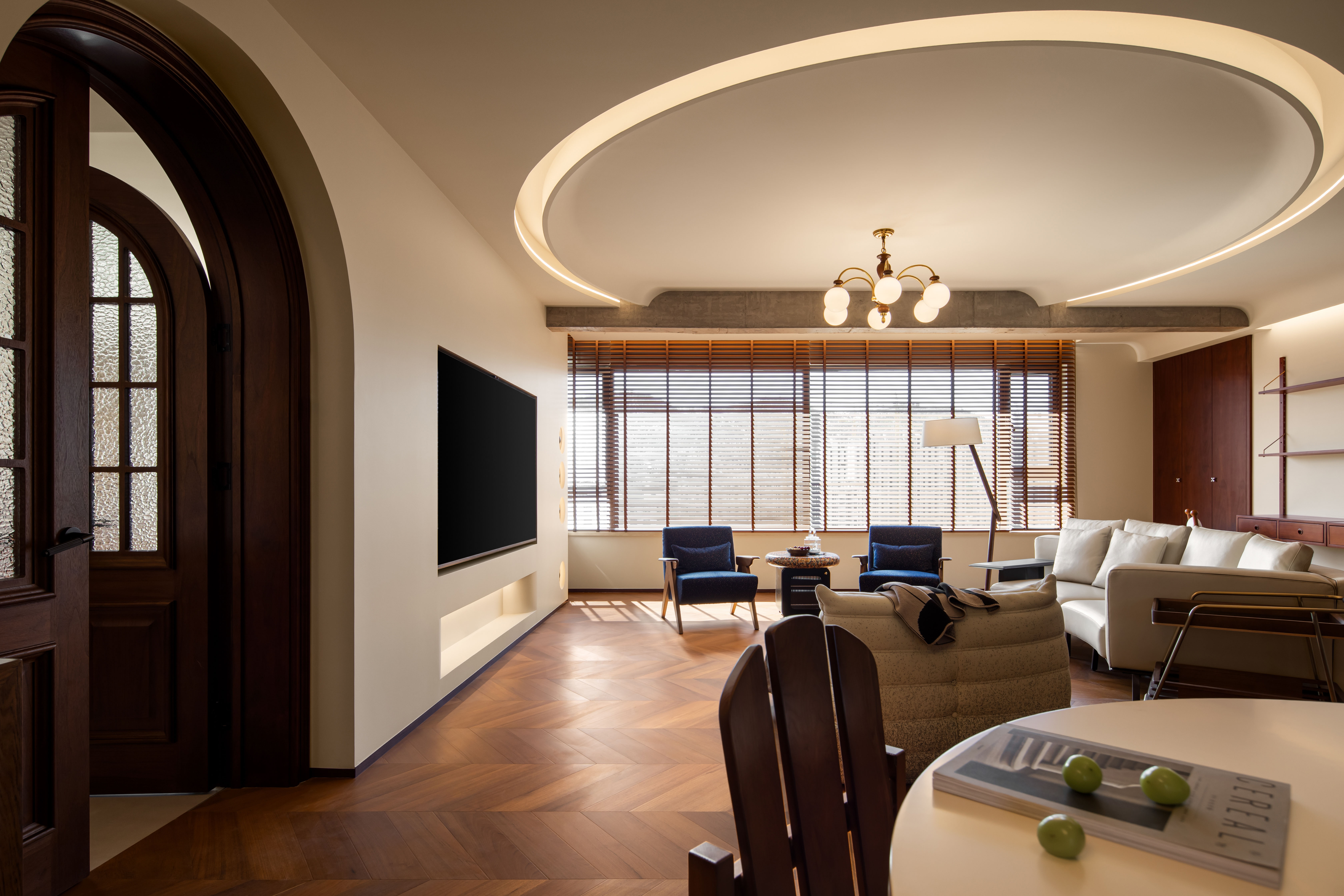 项目定位:项目定位聚焦 “纯中古复古基因 + 现代宜居需求”,摒弃过度复刻老式中古的厚重压抑,打造 “有岁月温度但不脱离生活” 的质感空间。
