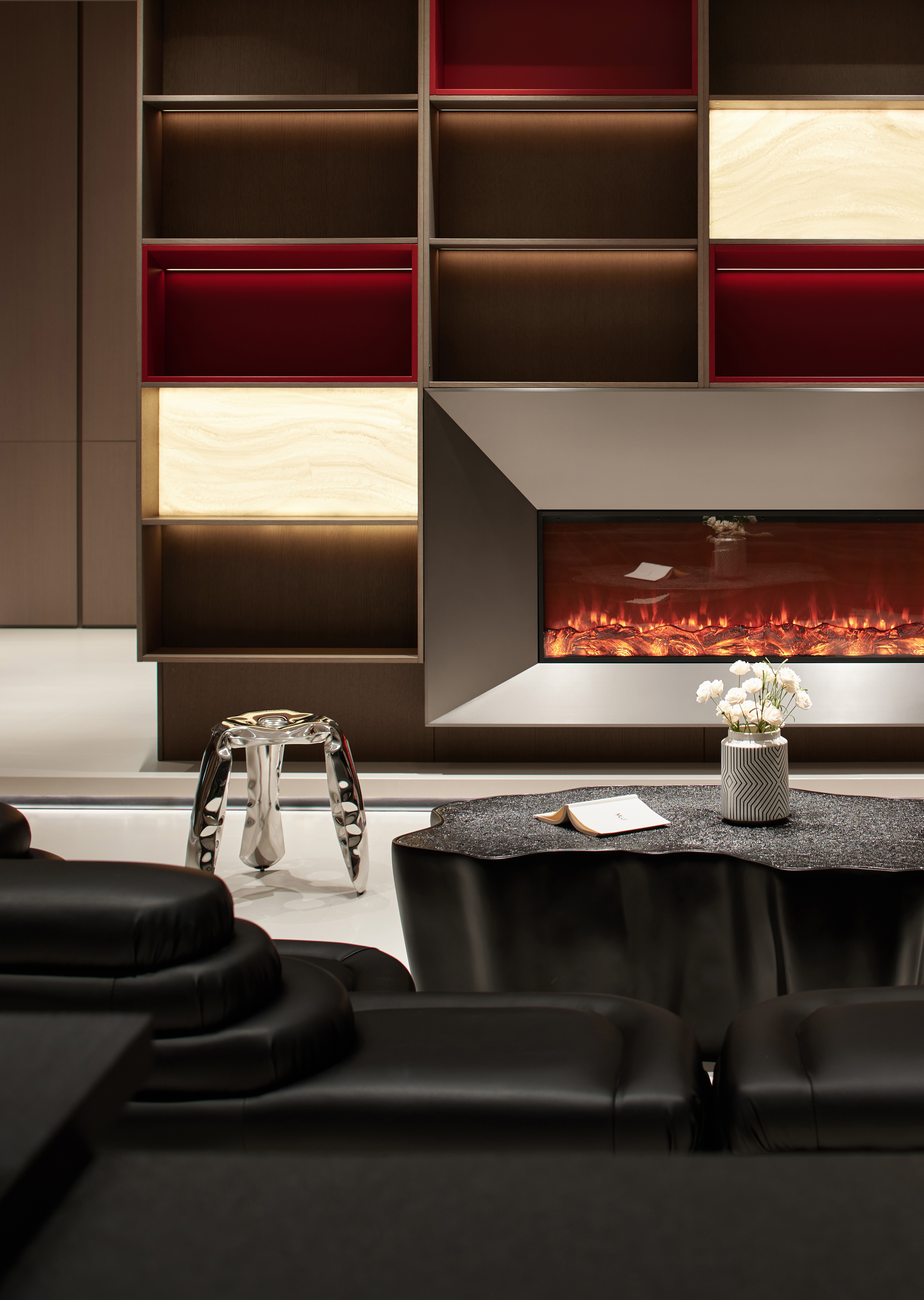 设计选材:采用模块化可循环选材逻辑,如展示区的墙面饰板选用卡扣式环保板材,后期随华帝新品迭代可单独拆卸替换,无需整体重装,大幅降低展厅的长期维护成本,同时板材本身可二次回收利用,实现“低碳环保与运营经济性”的双向落地。