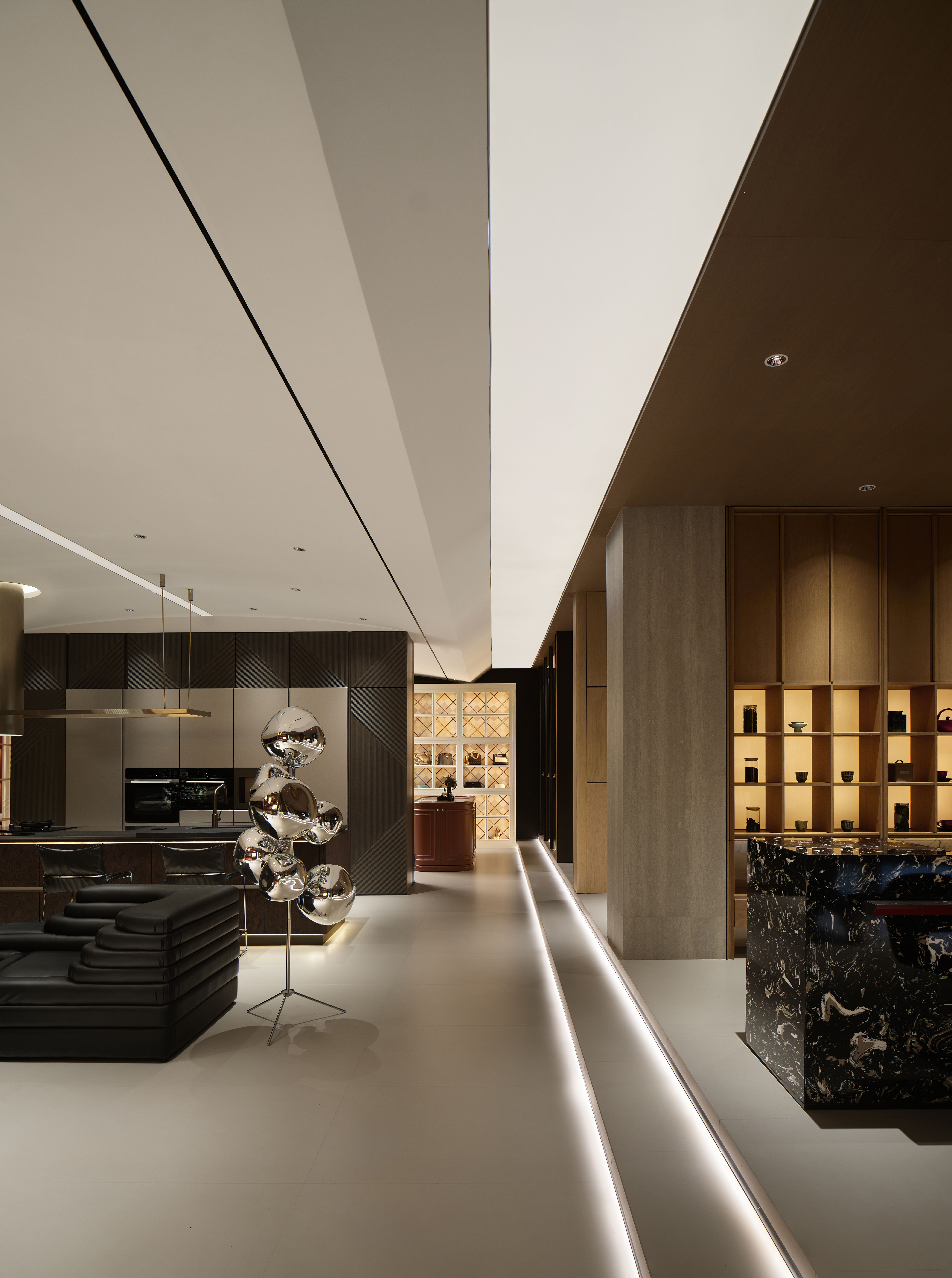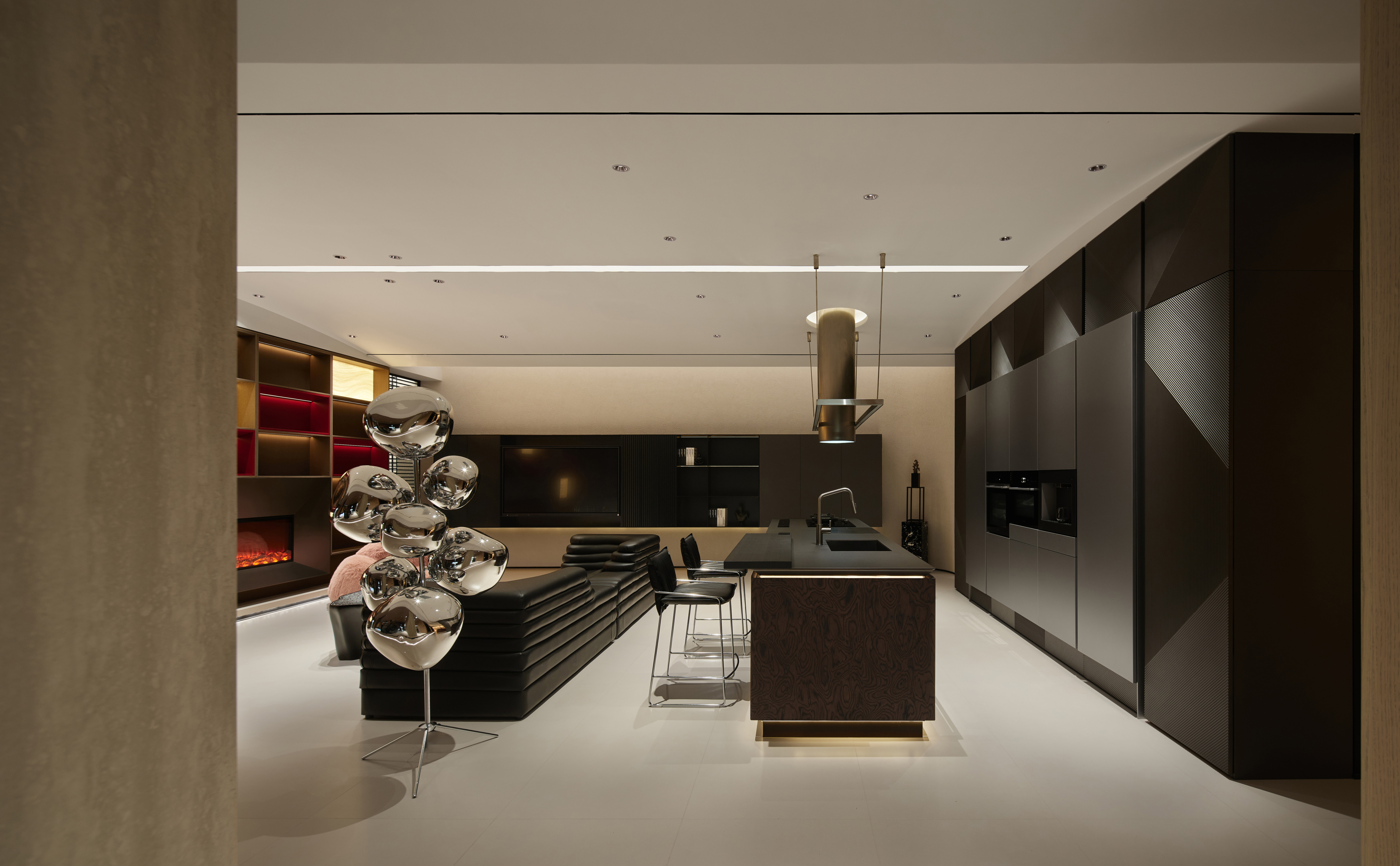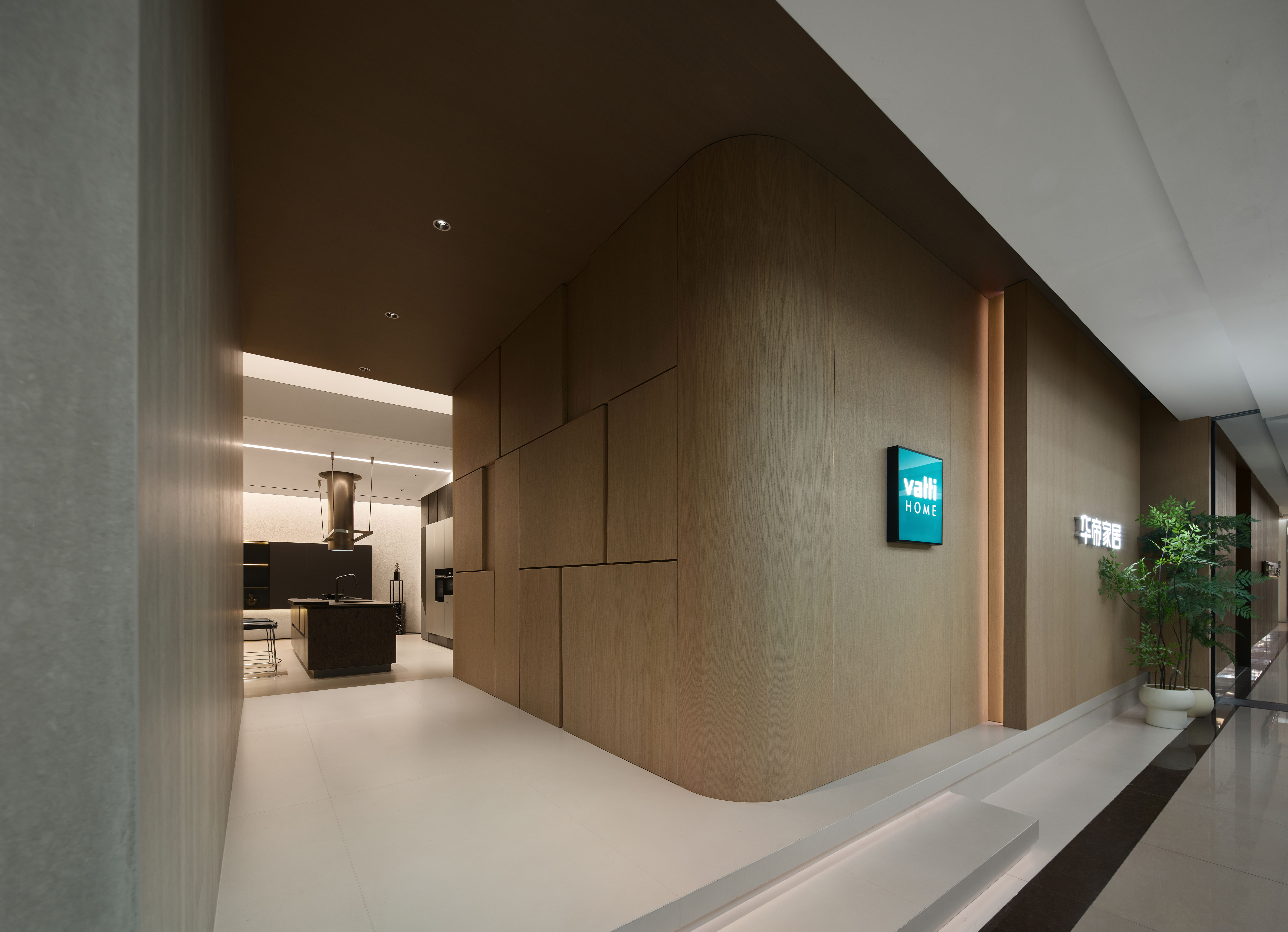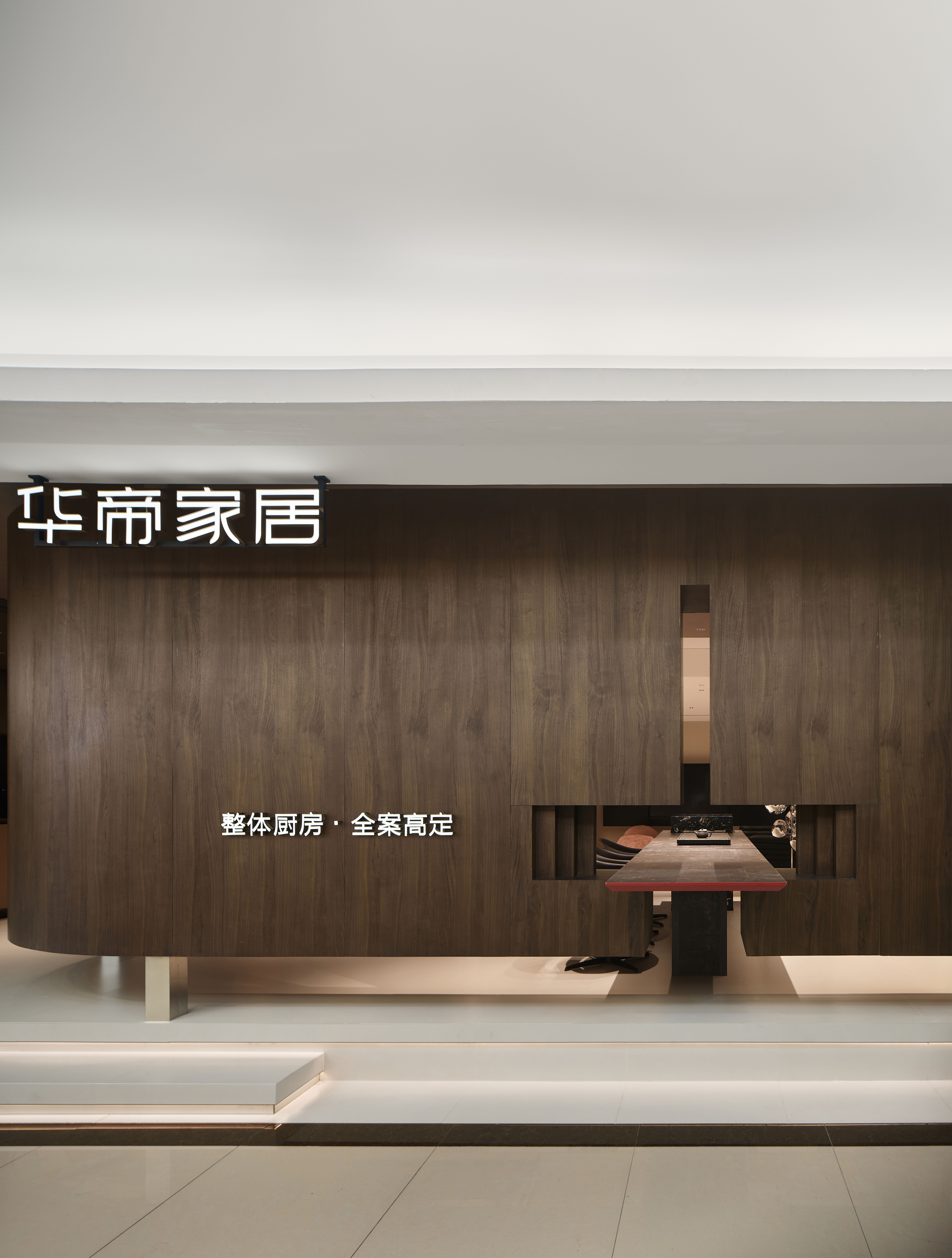 空间意境:通过 “场景共生” 打破厨电展厅的分区割裂,将华帝烟机、灶具等核心产品自然嵌入厨房、休闲区乃至家居延伸场景,实现 “展示即生活” 的全场景适配,呼应其 “厨房生活方式解决方案” 的定位;同时以 “曲线美学” 柔化科技材质的冷硬感,搭配超薄烟机的极简线条,打造契合品牌年轻化调性的 “暖科技” 轻奢氛围;更借 “光影叙事” 适配动线逻辑,用分层灯光聚焦产品细节、营造场景氛围,强化华帝式沉浸体验;