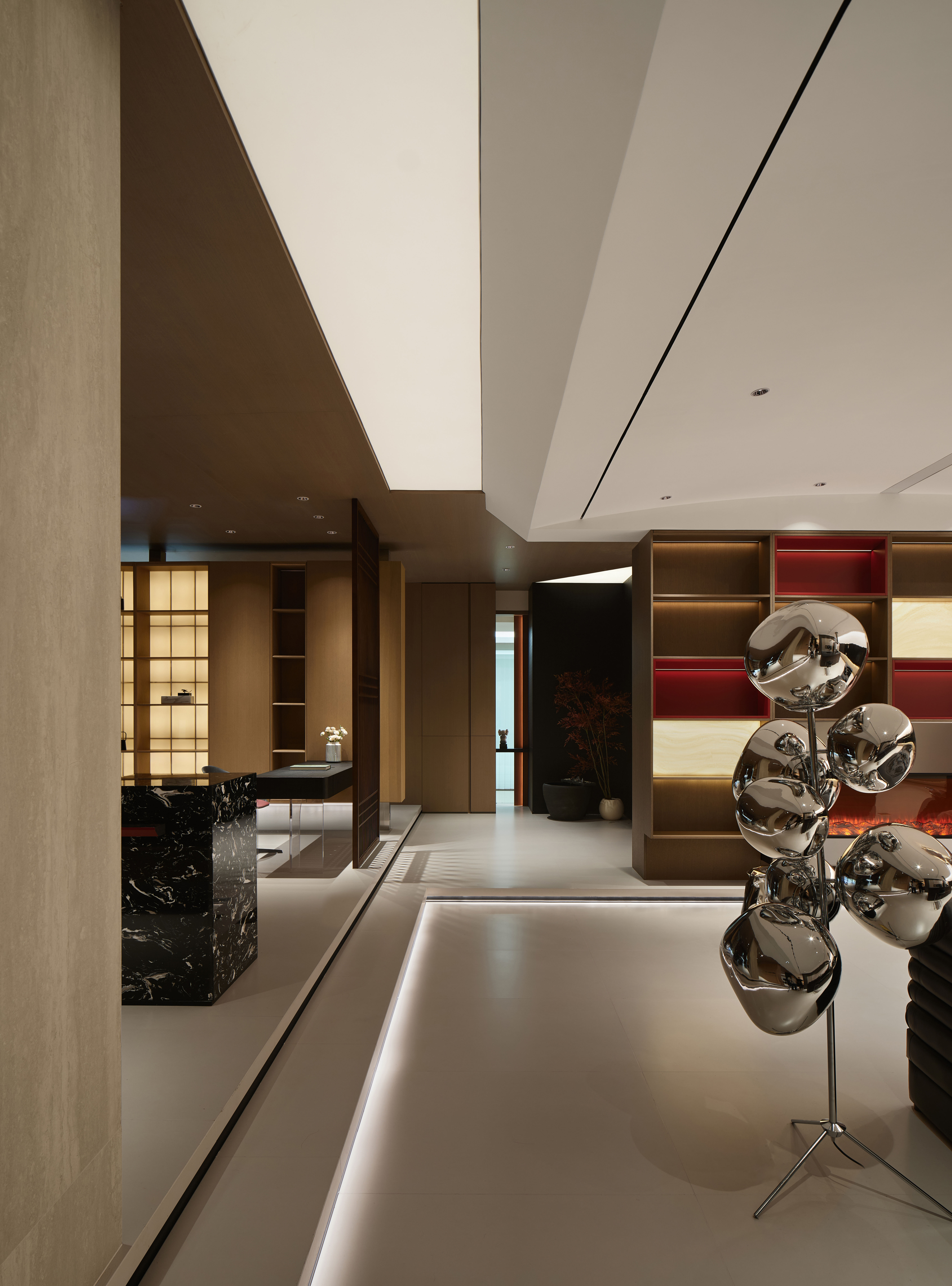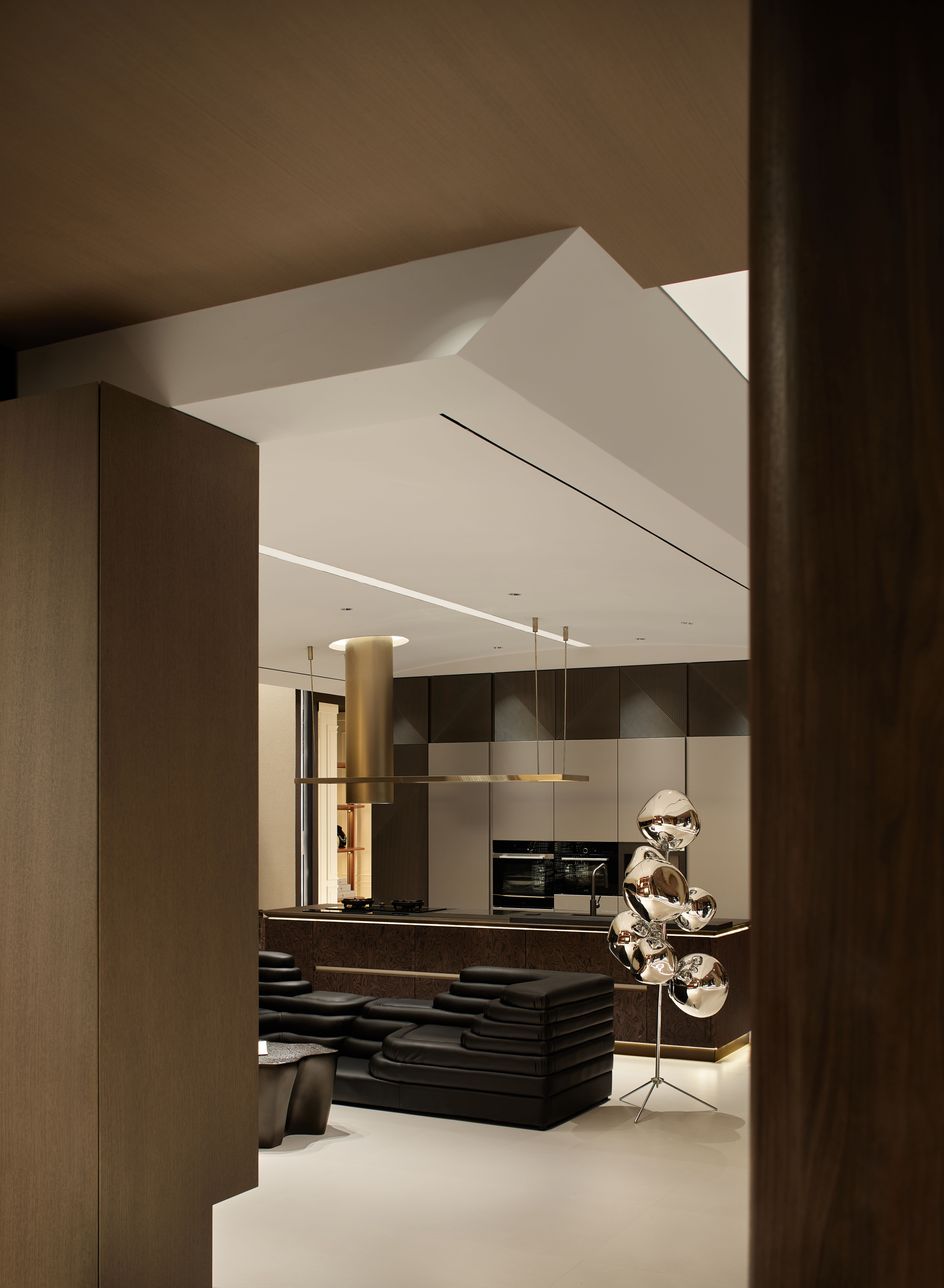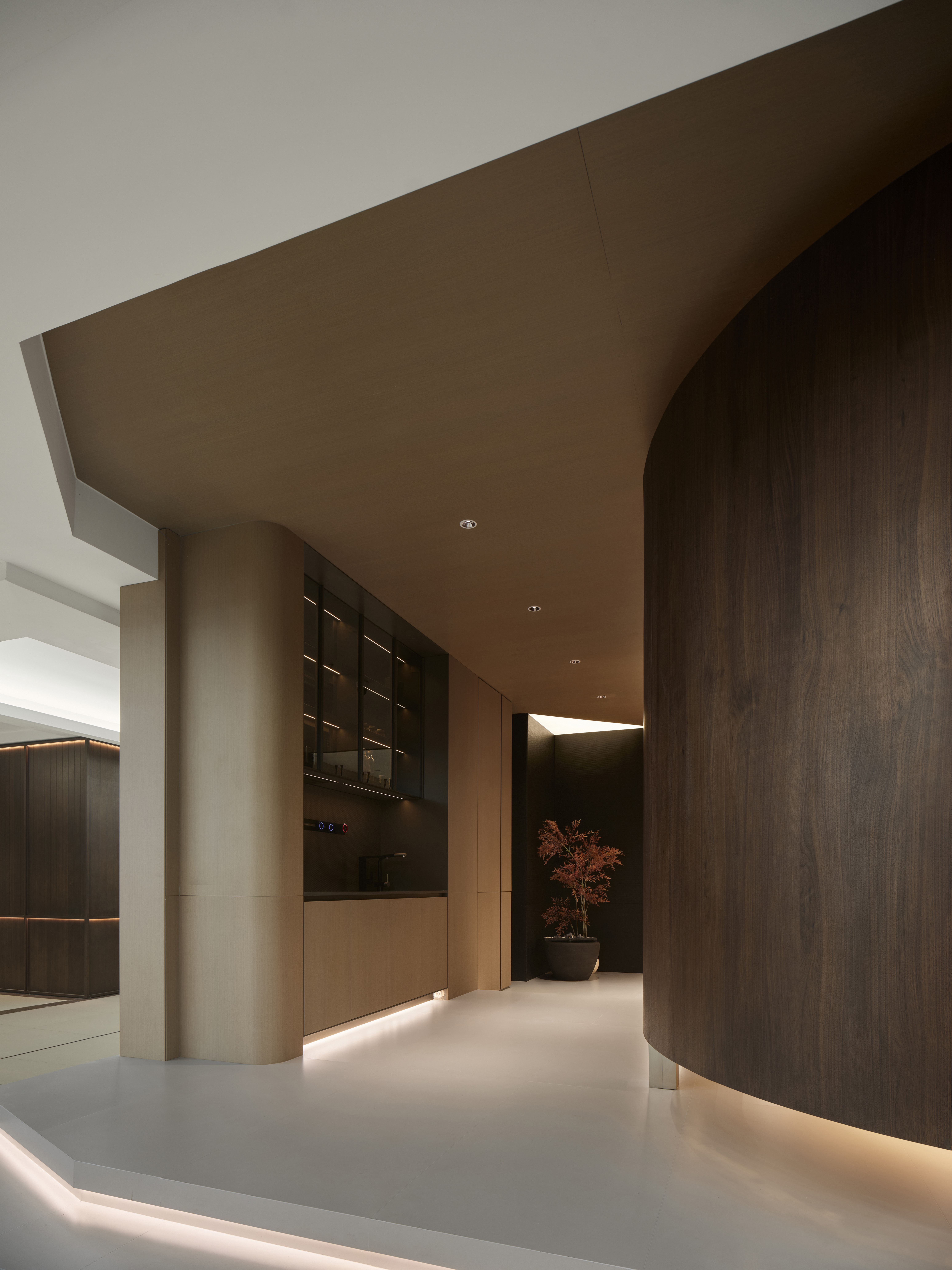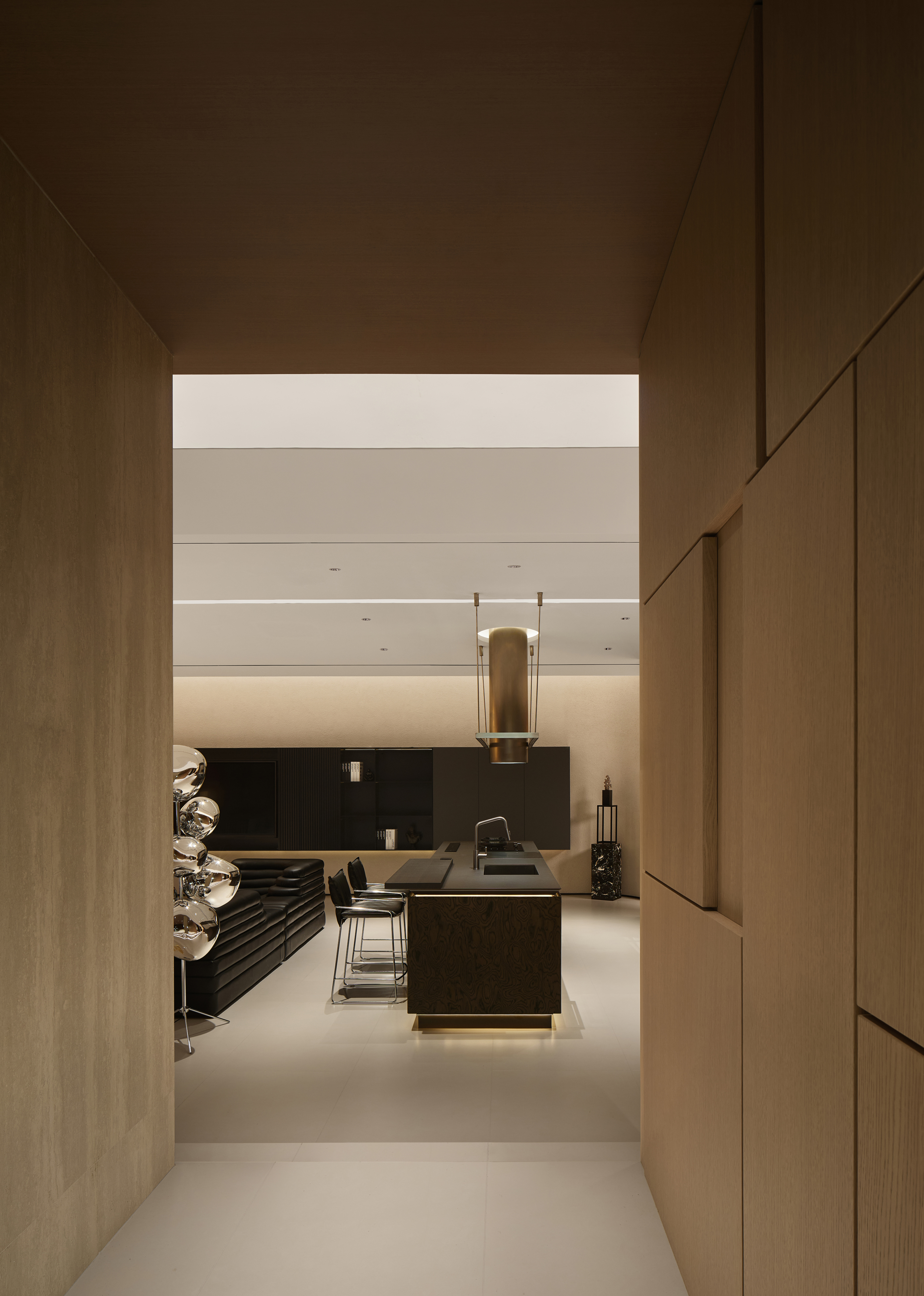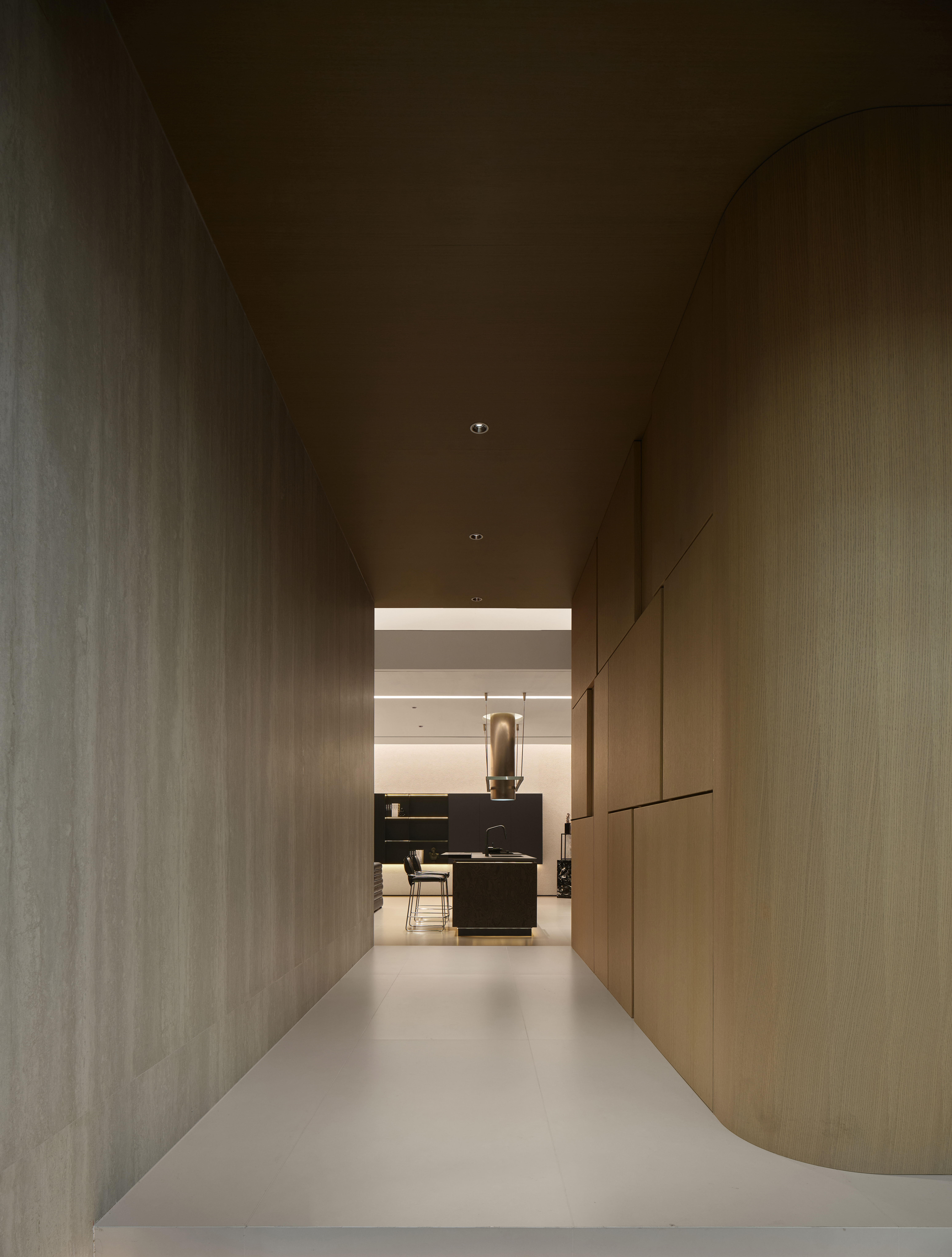 空间意境:通过 “场景共生” 打破厨电展厅的分区割裂,将华帝烟机、灶具等核心产品自然嵌入厨房、休闲区乃至家居延伸场景,实现 “展示即生活” 的全场景适配,呼应其 “厨房生活方式解决方案” 的定位;同时以 “曲线美学” 柔化科技材质的冷硬感,搭配超薄烟机的极简线条,打造契合品牌年轻化调性的 “暖科技” 轻奢氛围;更借 “光影叙事” 适配动线逻辑,用分层灯光聚焦产品细节、营造场景氛围,强化华帝式沉浸体验;