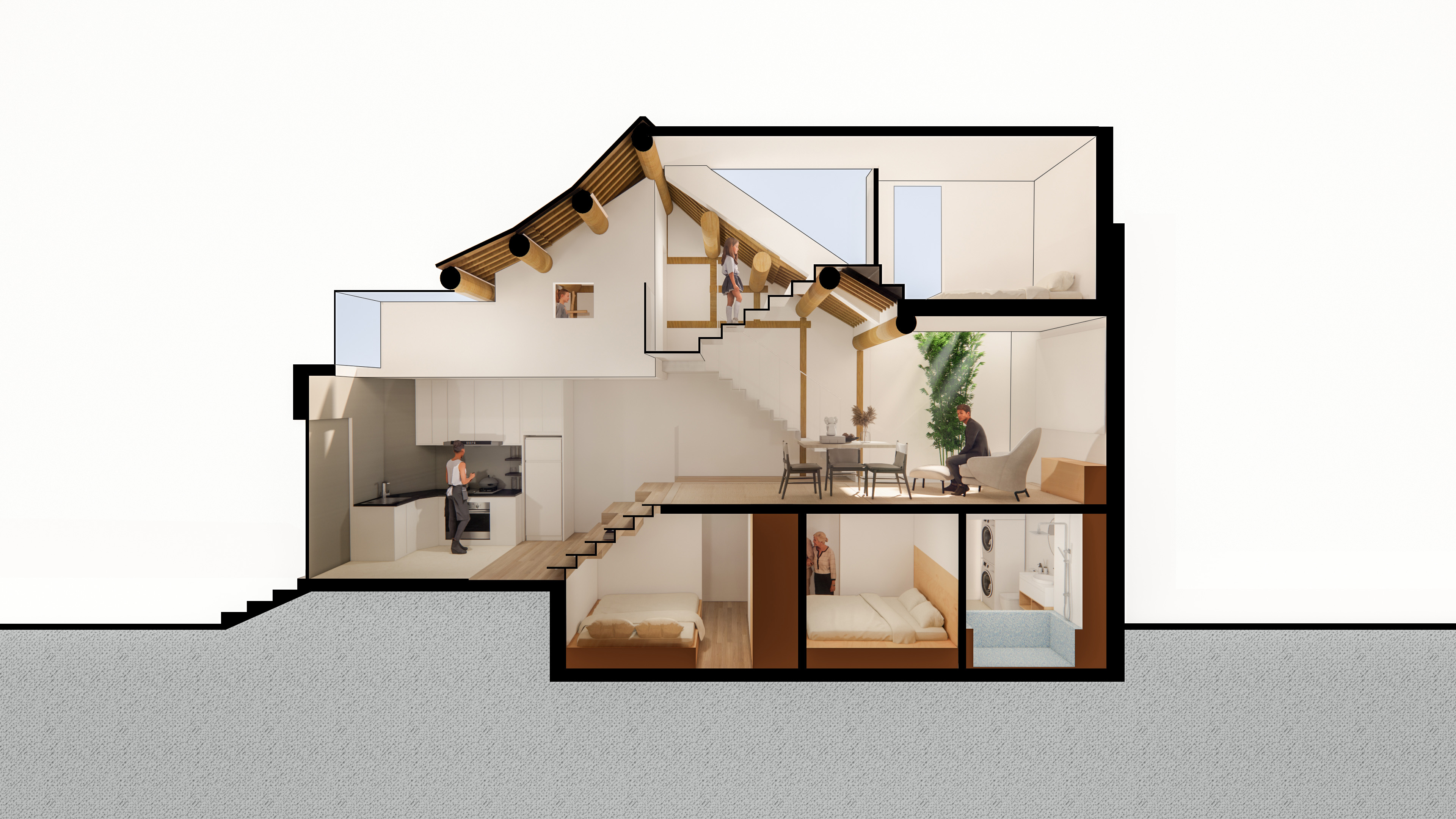 此类居住状况引发了诸多问题:人均居住面积严重不足、功能空间缺失、代际隐私难以保障、历史建筑现代化改造困难等。本项目正是对这一现状的极致回应。 针对这些挑战,本项目提出了一个激进且富有同理心的解决方案,通过垂直分层的极致探索,在保留历史建筑外观的同时,彻底重构内部空间体验,为高密度历史街区中的居住更新提供了新的可能性。 -