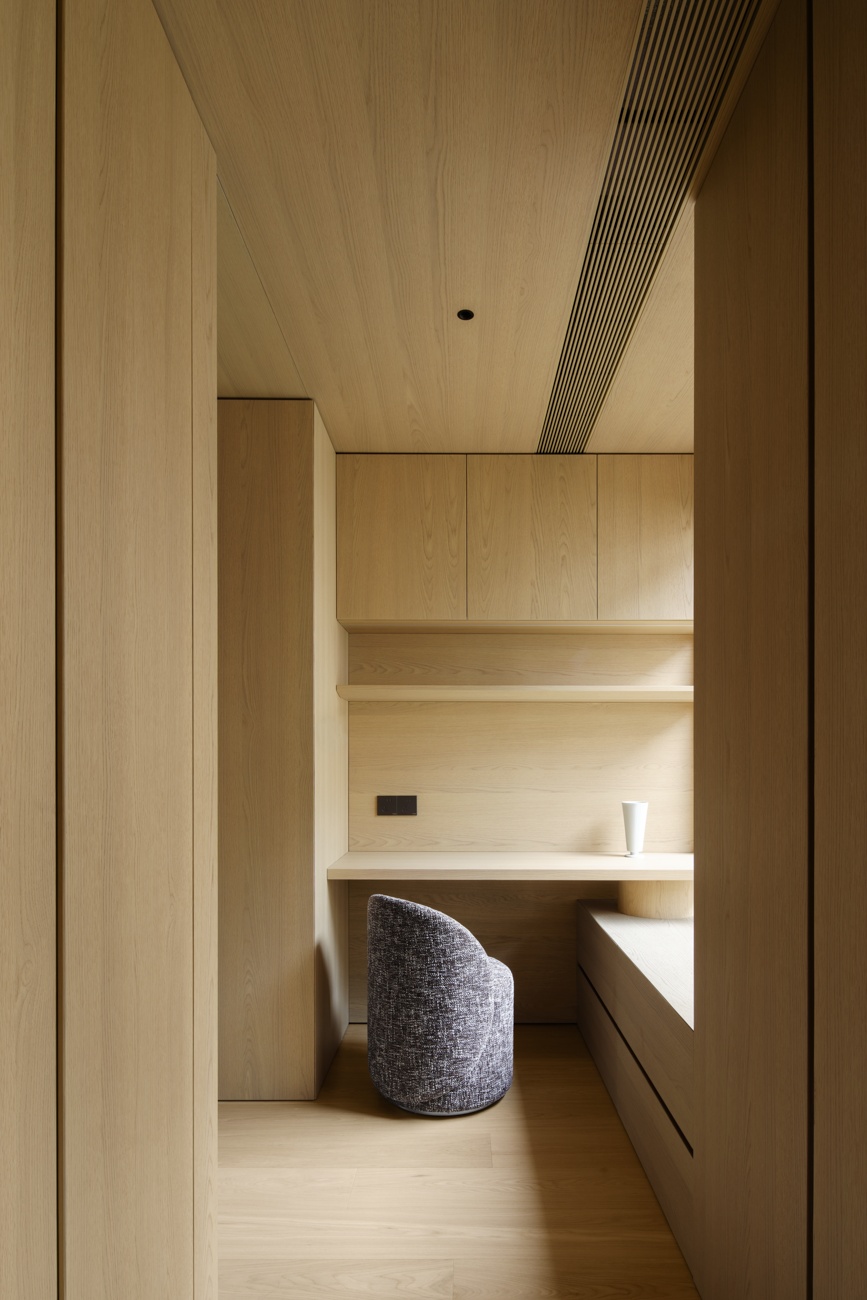 此案以克制的设计语言,在市中心织就一张静谧的网,它不抗拒喧嚣,却让每一次归家都成为一次向自我的探寻过程,最终,空间超越了容器属性,成为滋养生活的梦想洞穴。