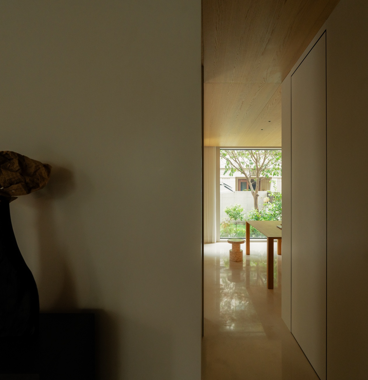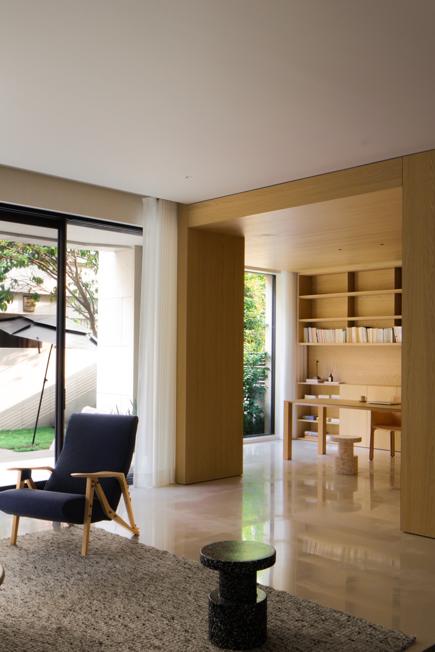 项目定位:在城市中创造一处可以“像动物一样蜷缩起来”的家宅空间,是此案的精神内核。项目虽落址于温州市中心的繁华地带,但仍然希望通过设计的构思让其具有“隐于都市”的藏匿感与庇护性,为居住者提供一处向内沉潜的精神之所。