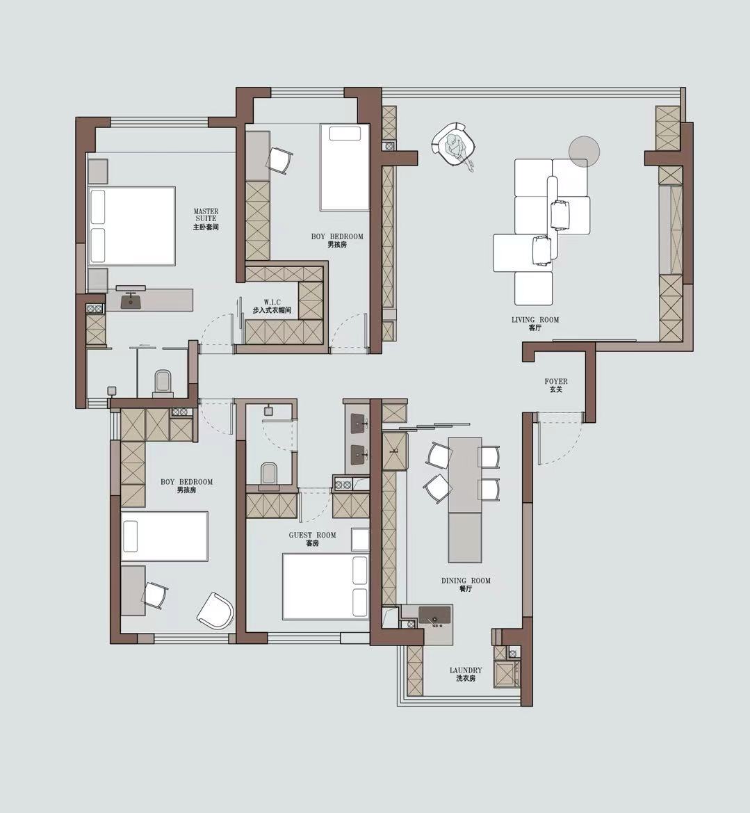 #3.释放主卫部分空间,过渡给主卧收纳,用台盆外置的处理方式打造三分离主卫; -